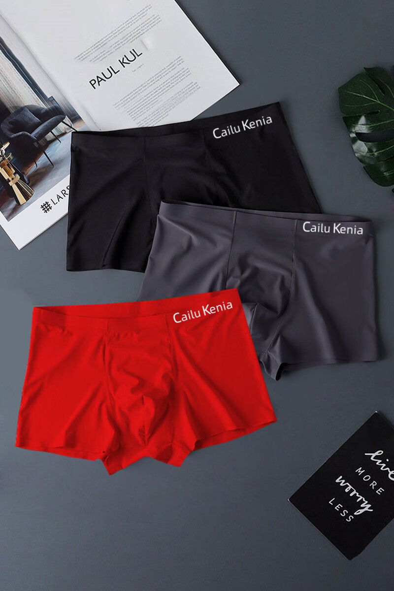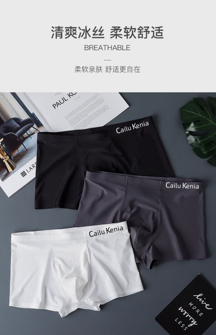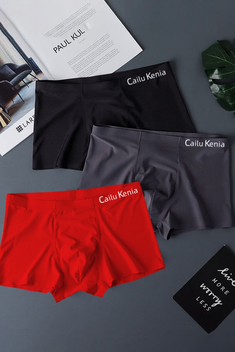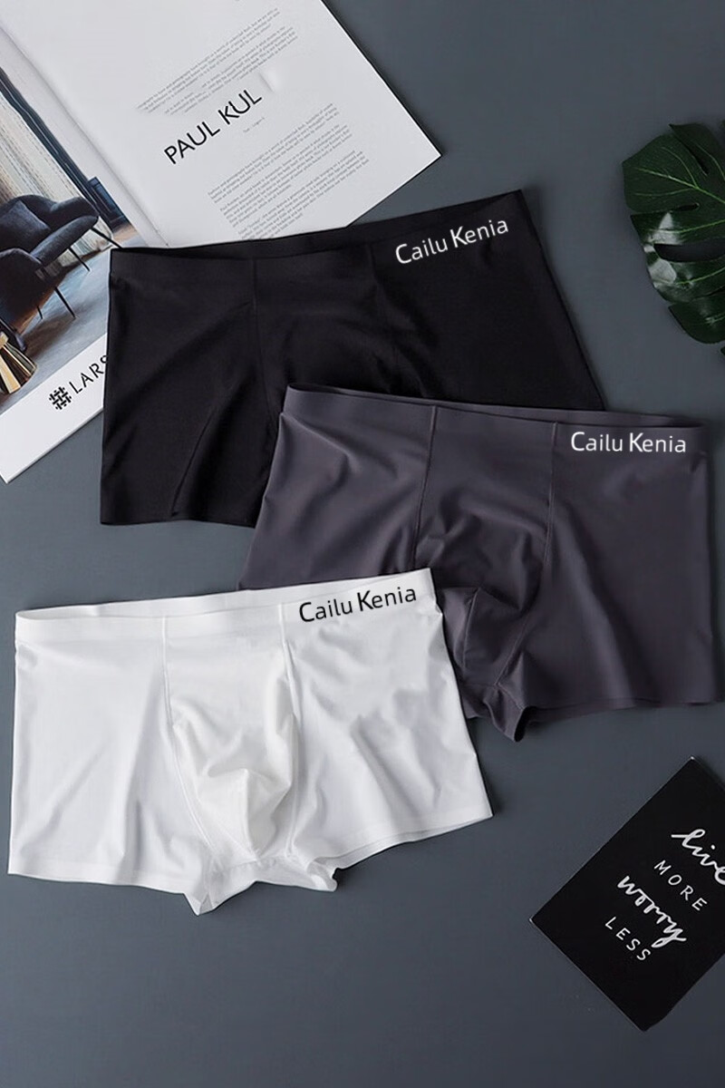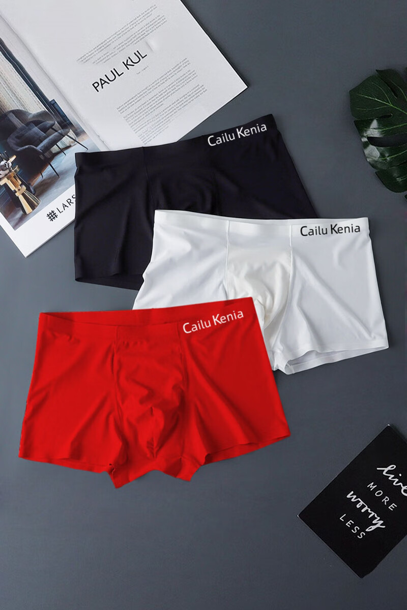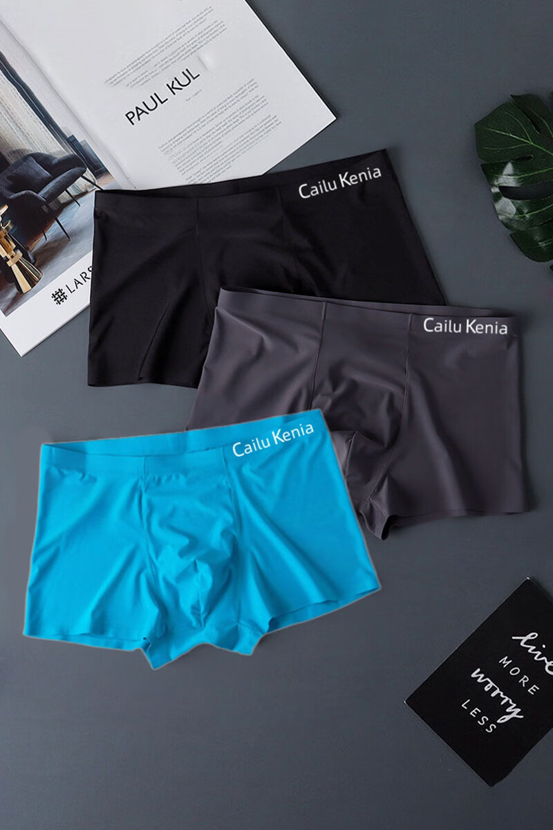 CKCailuKenia正品ck男士内裤冰丝无痕四角裤夏季薄款裆男生平角短裤 颜色自选 留言-ck透气冰丝 3条 4XL -适合165-185斤