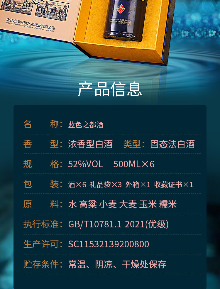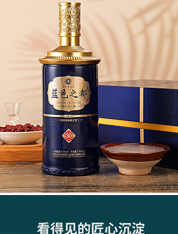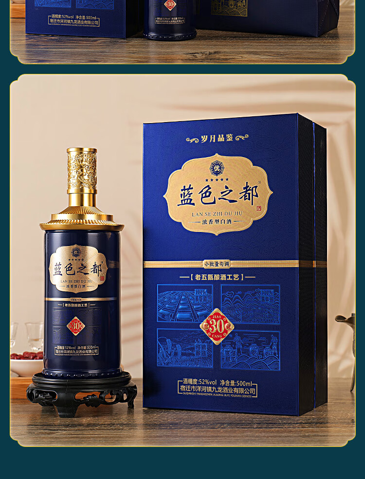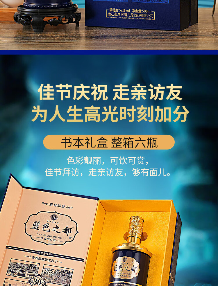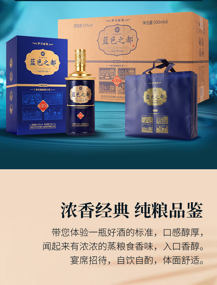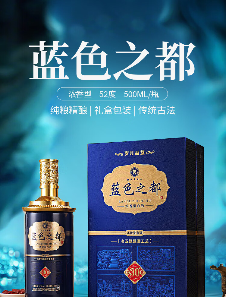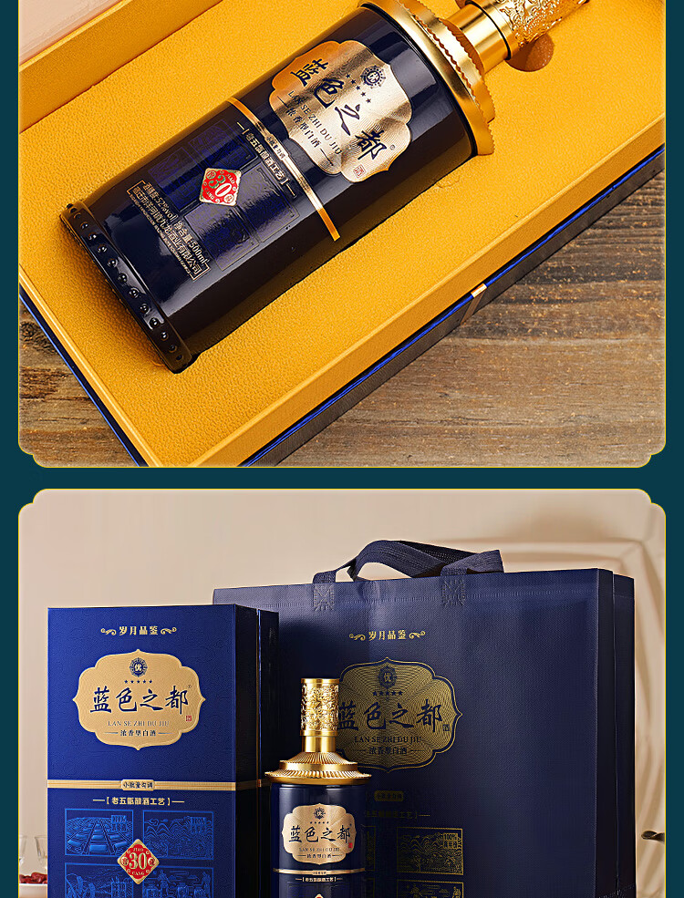蓝色之都【精选】窖藏30书本盒浓香型52度500ml固态发酵白酒整箱6瓶 52度 500mL 6瓶 整箱6瓶含3个礼品袋