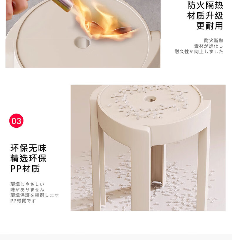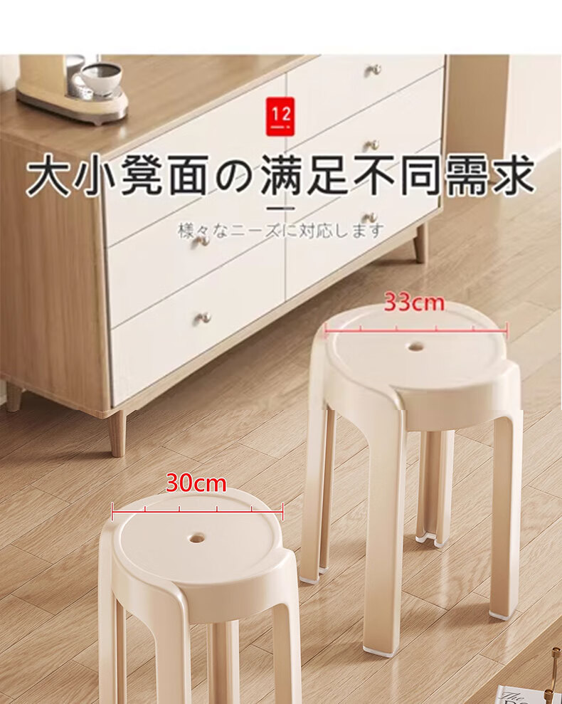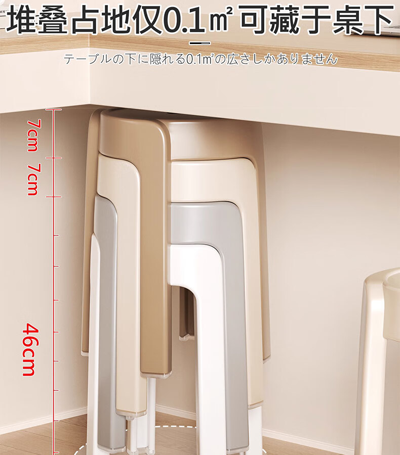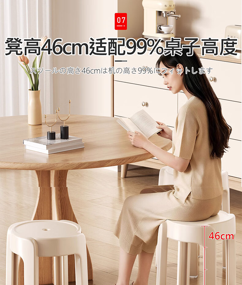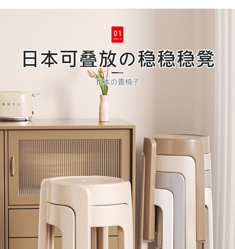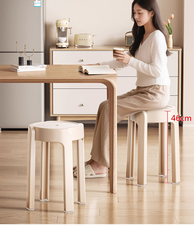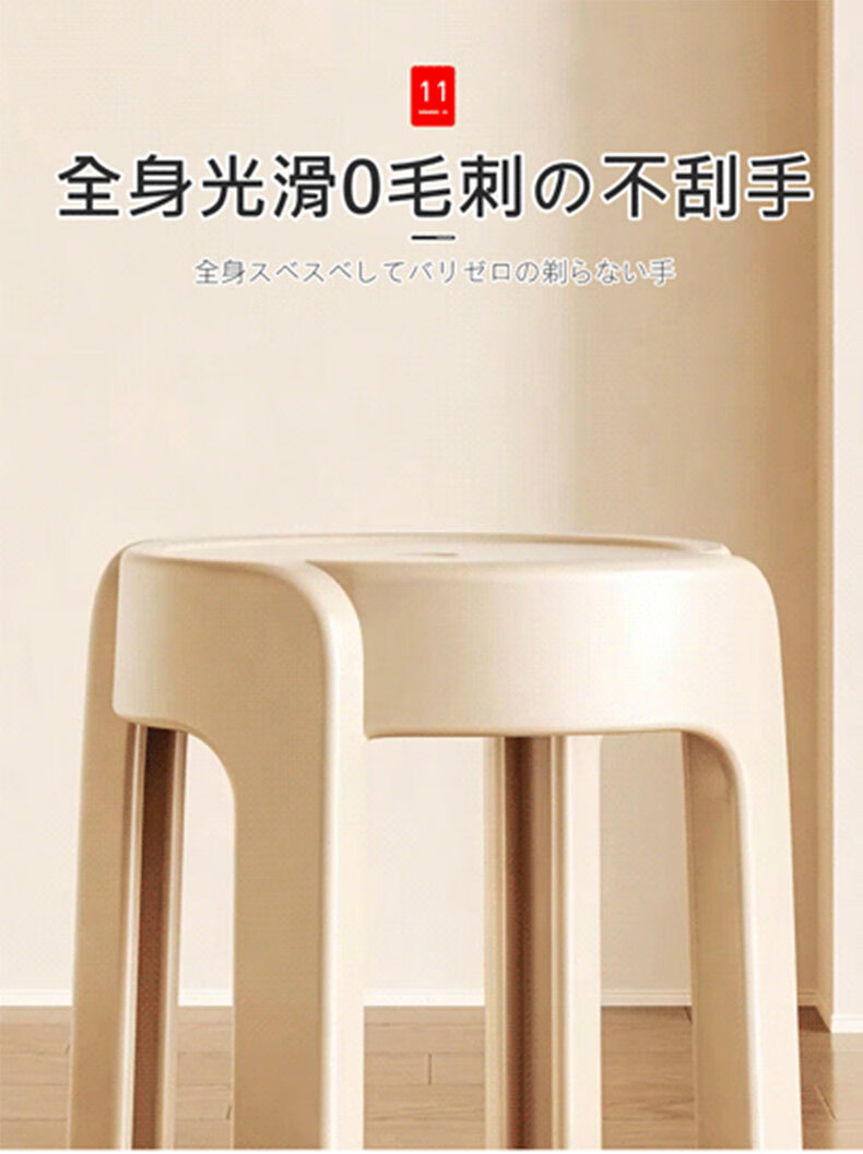 吱凡日本塑料凳子可叠放家用加厚结实耐用餐厅餐桌圆凳椅子轻奢高级感 【出口品质】渡月-6把【单把1.85kg丨承重1600斤】33CM