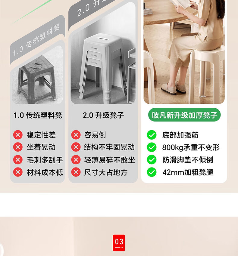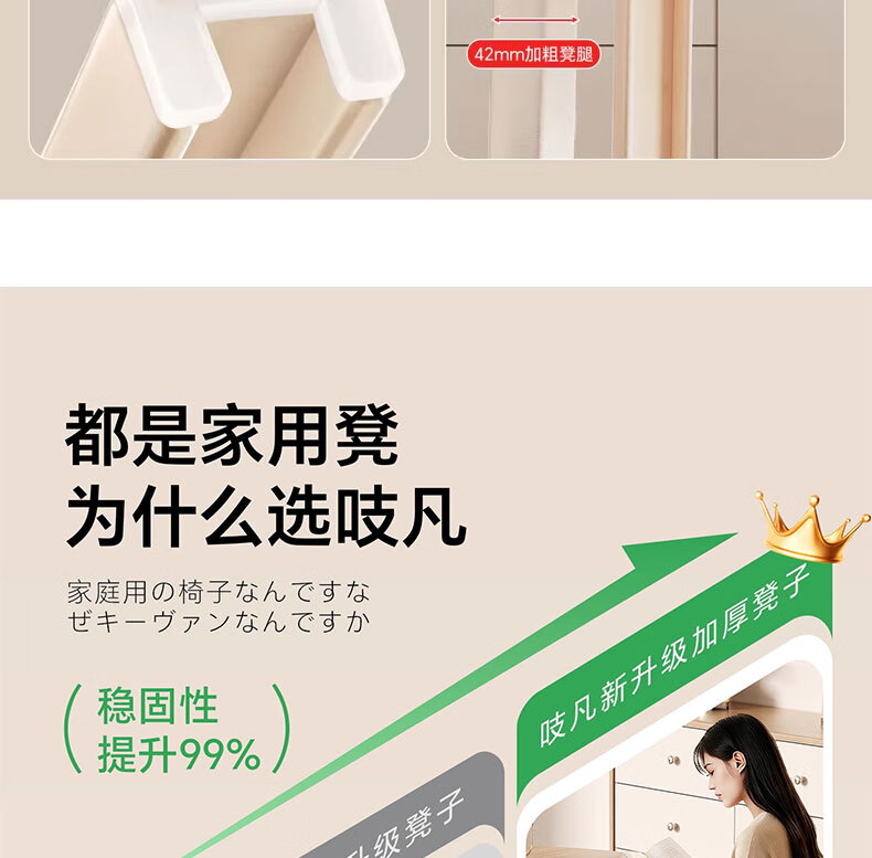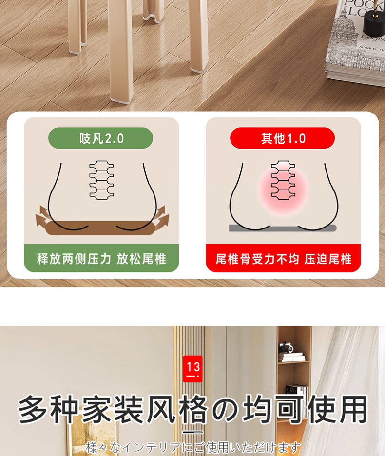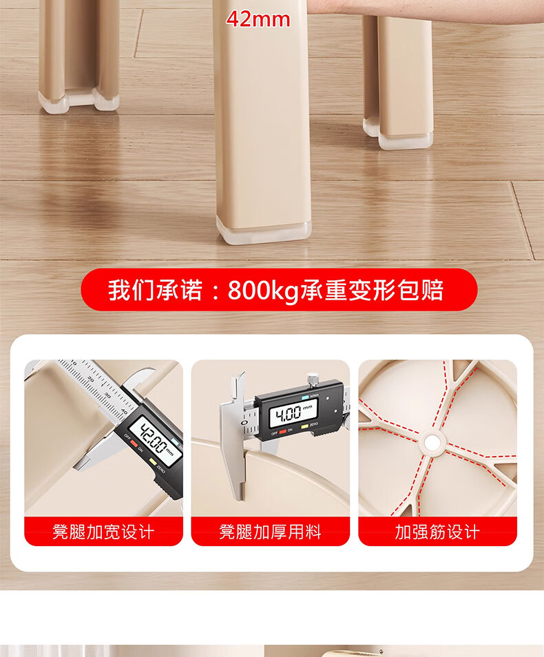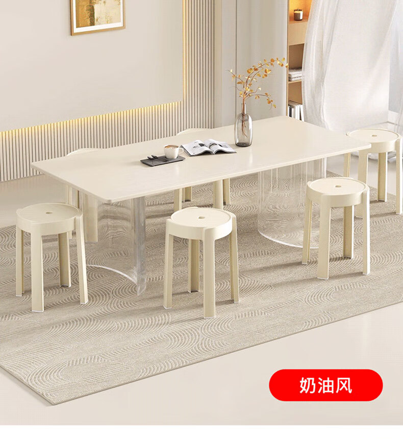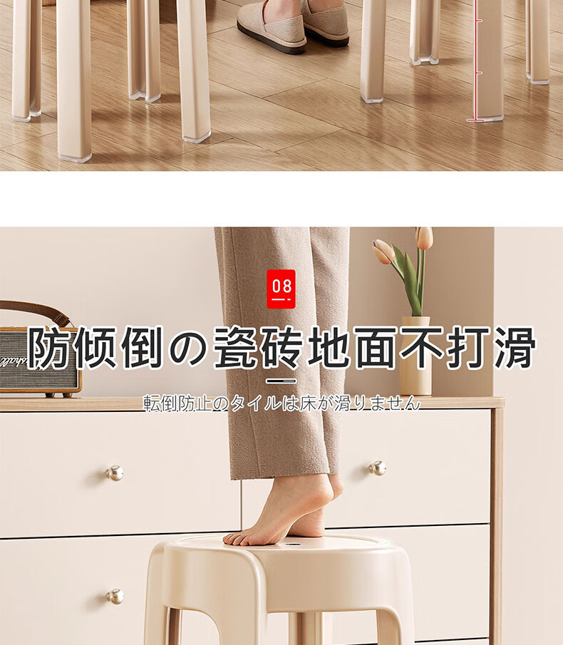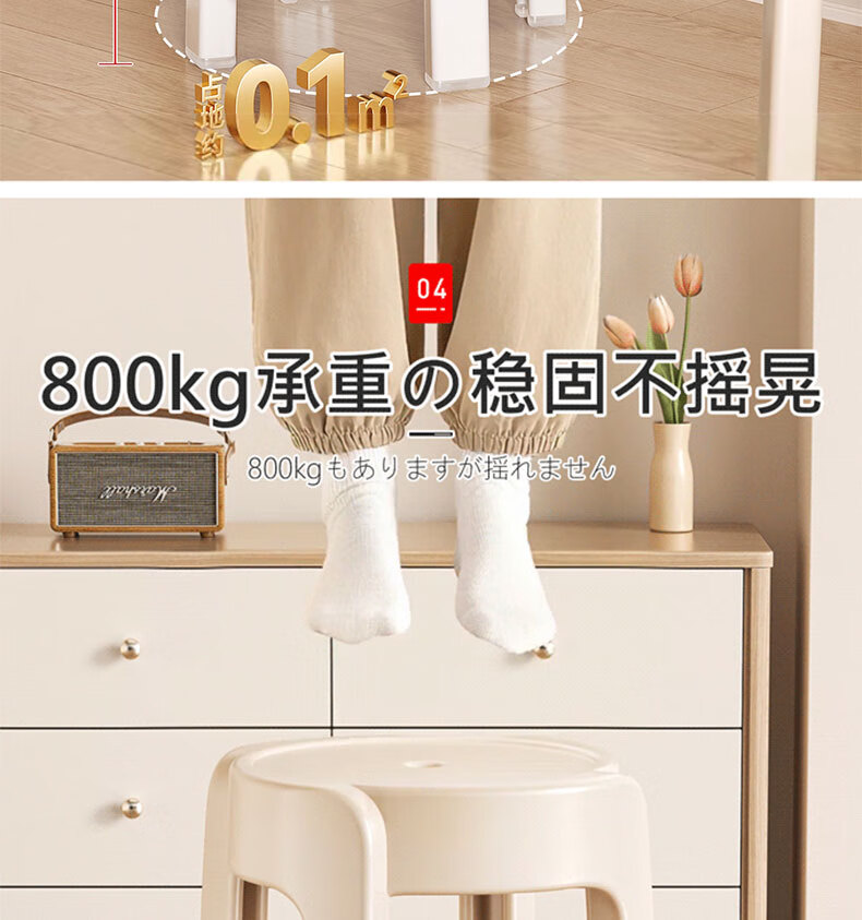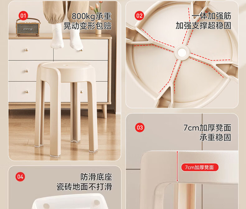 吱凡日本塑料凳子可叠放家用加厚结实耐用餐厅餐桌圆凳椅子轻奢高级感 【出口品质】渡月-6把【单把1.85kg丨承重1600斤】33CM