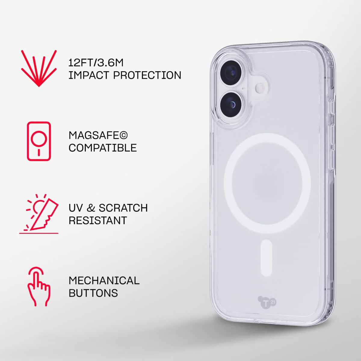 TECH21 iPhone 17手机壳 MagSafe防摔 3.6m抗冲击 透明保护套 透明 iPhone 17