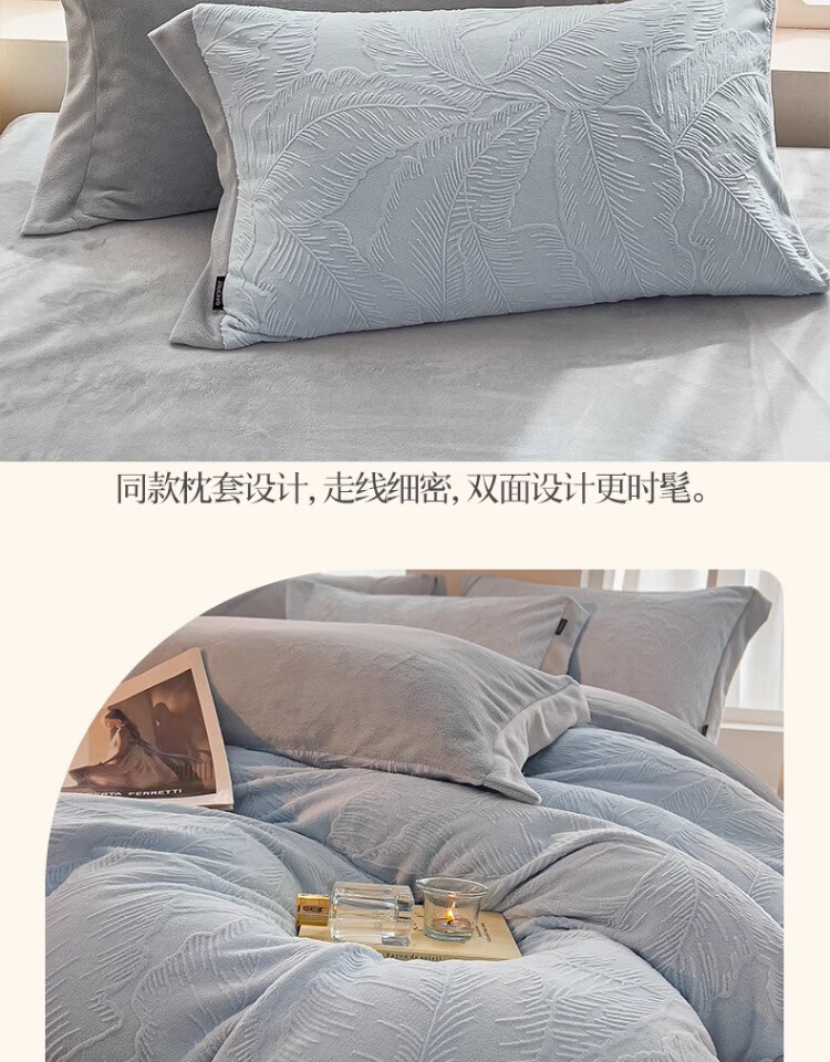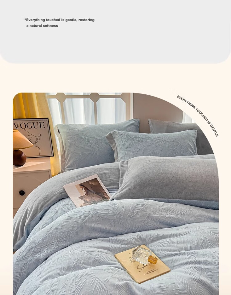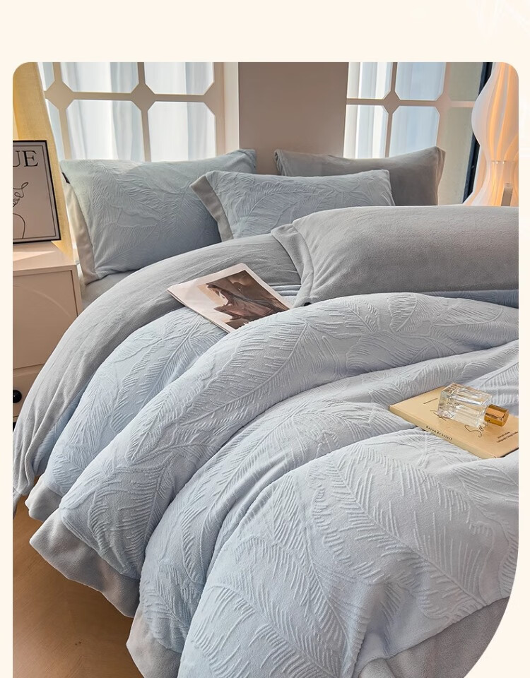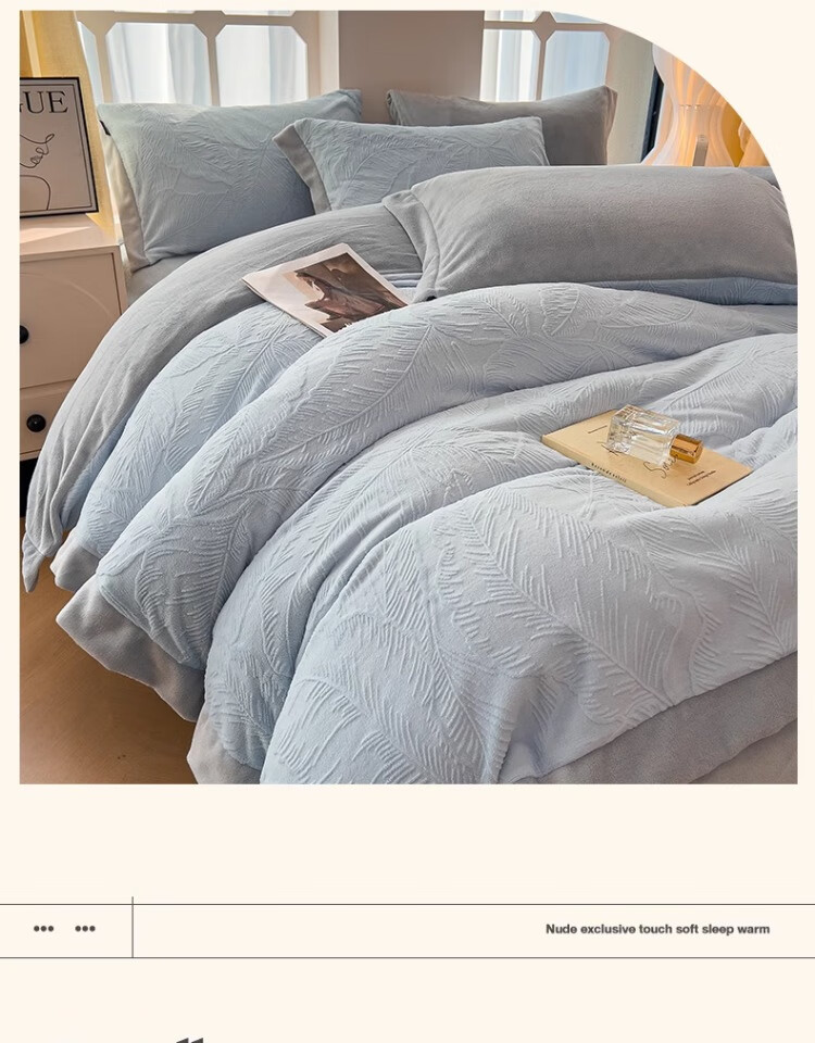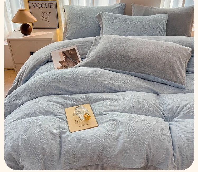 无印良品雕花牛奶绒2025新款床上用品四件套珊瑚绒秋冬季被套床单三件套 琉璃蓝【高克重雕花绒面料】 1.5m 床笠款 四件套/被套200*230cm