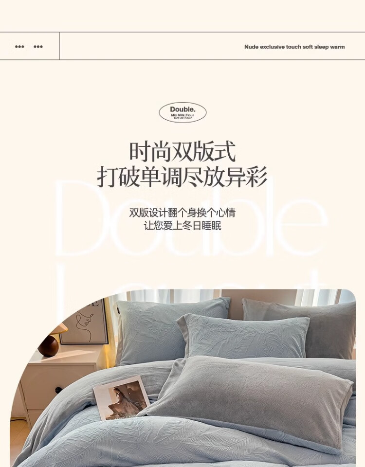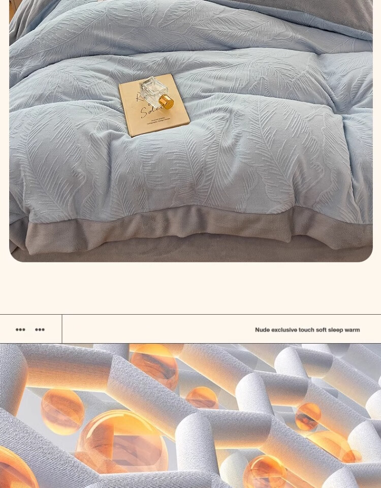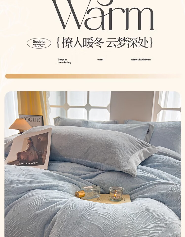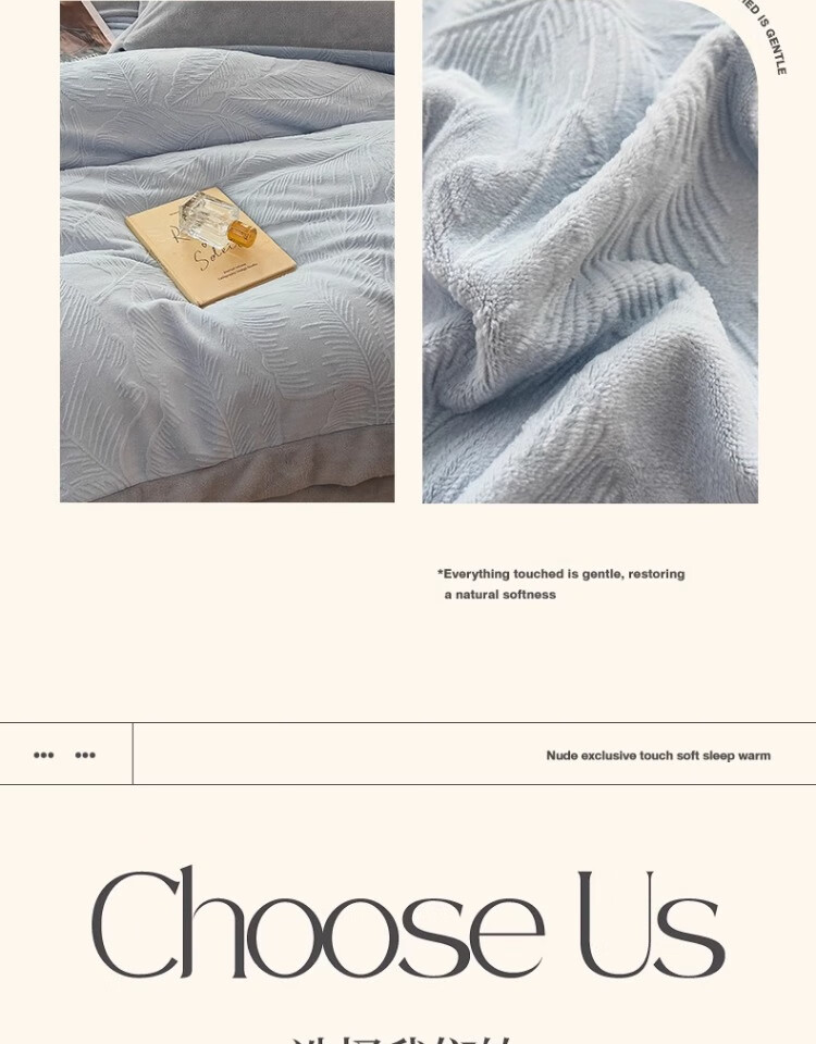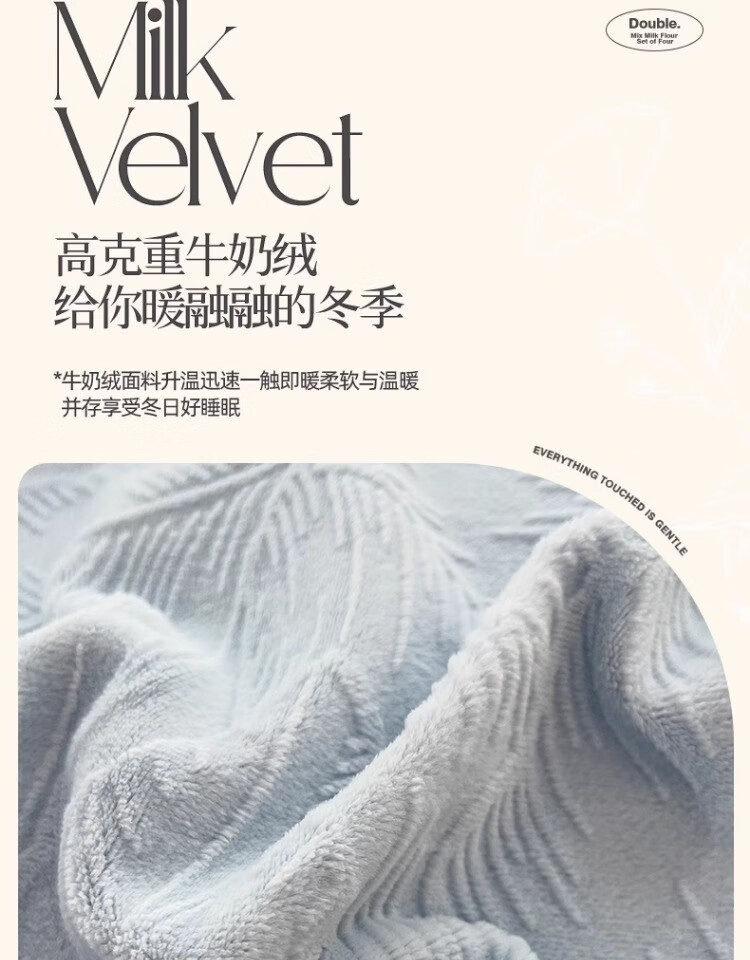 无印良品雕花牛奶绒2025新款床上用品四件套珊瑚绒秋冬季被套床单三件套 琉璃蓝【高克重雕花绒面料】 1.5m 床笠款 四件套/被套200*230cm