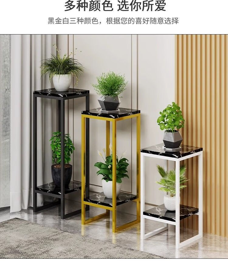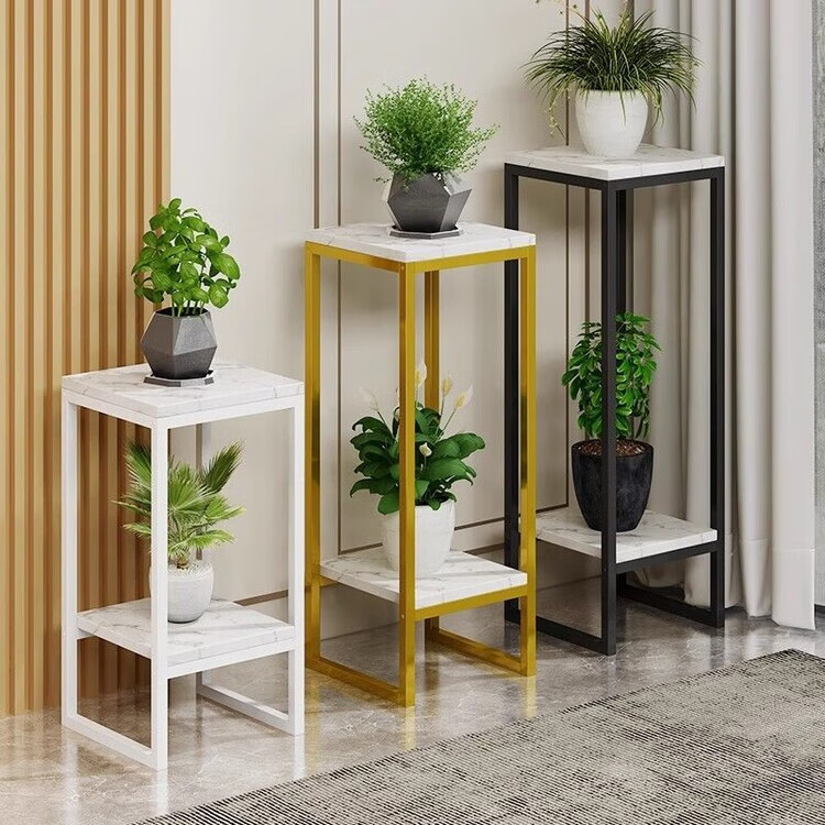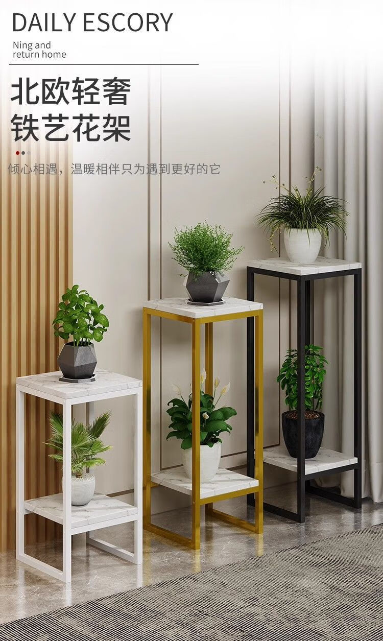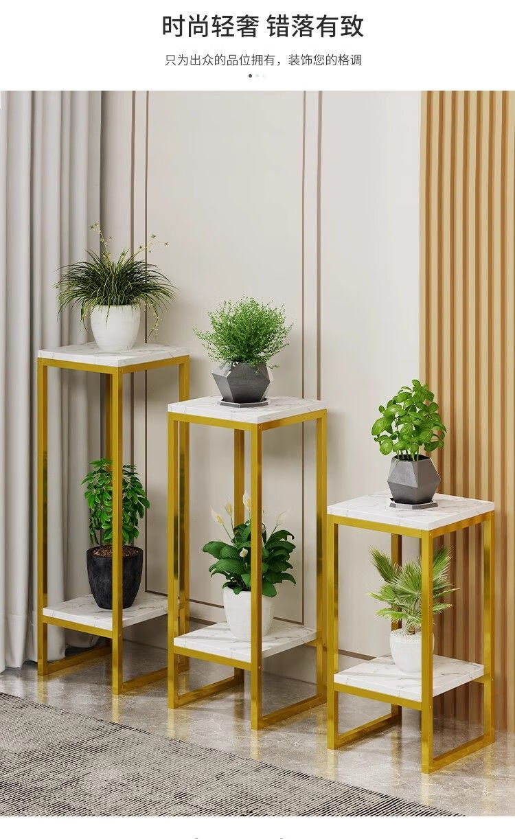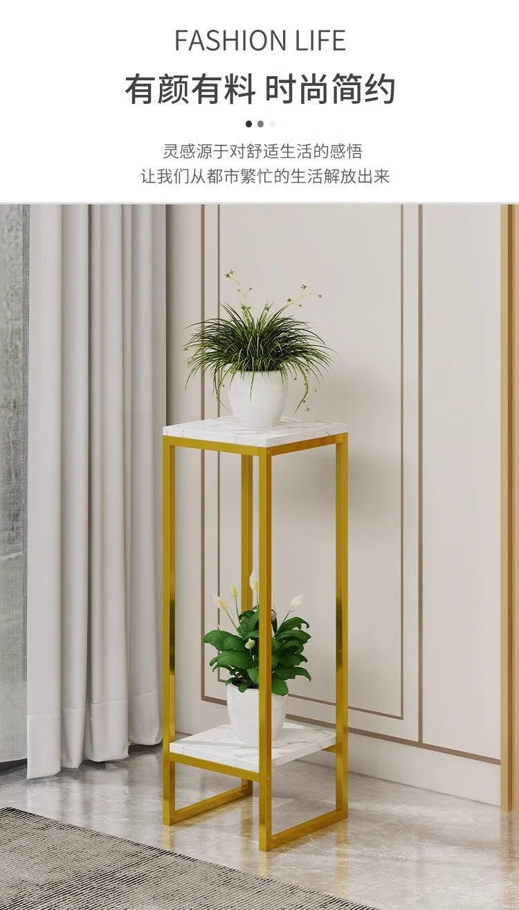 欣慕雅轻奢花架子客厅多层落地式简约现代阳台室内绿萝置物架高端花盆架 金架/白木板【售后无忧】 50高 24 宽 24长【加粗加厚】