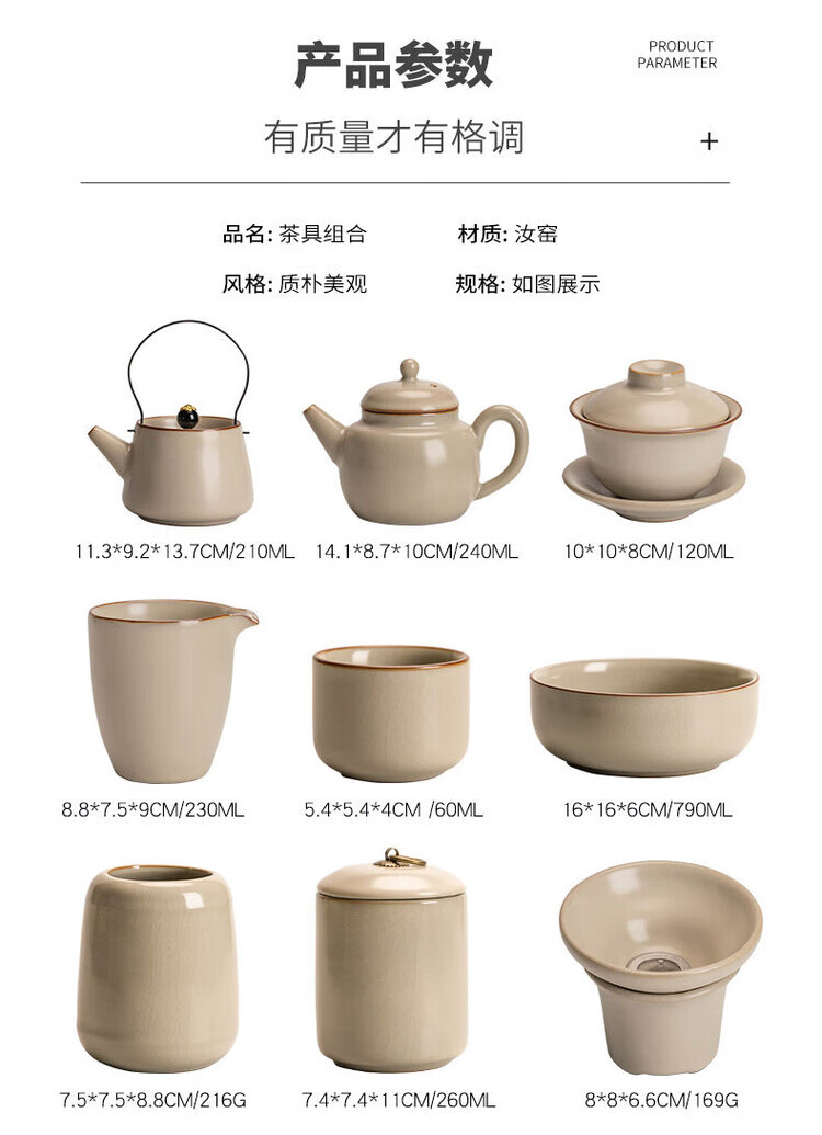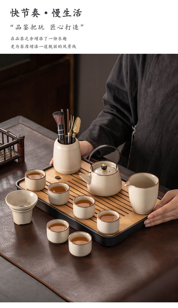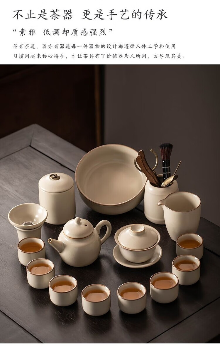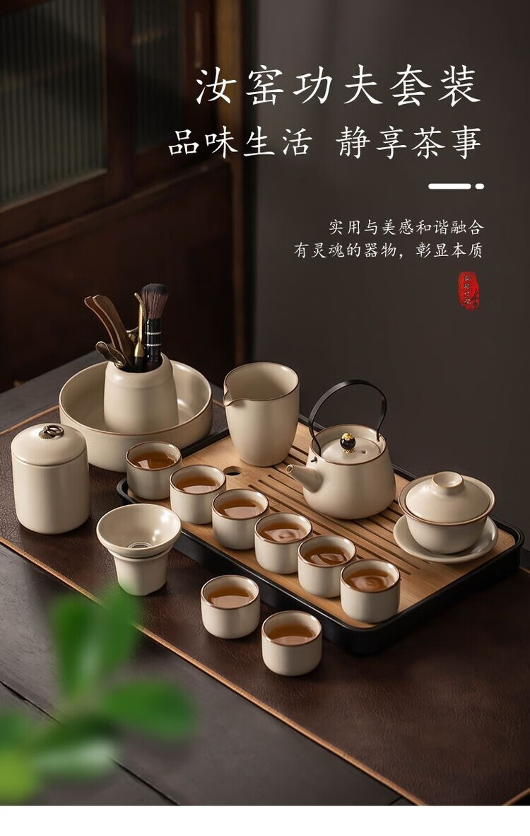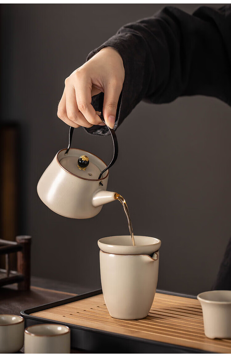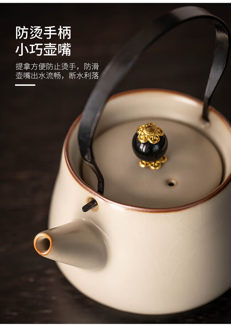 泰禧阁汝窑功夫茶具套装家用客厅陶瓷茶壶盖碗茶杯全套办公室高档泡茶器 提梁壶6杯