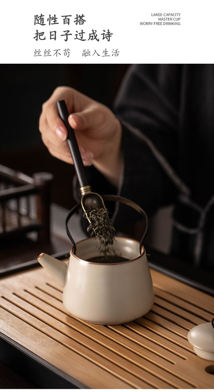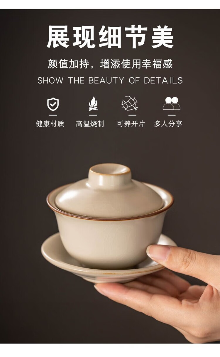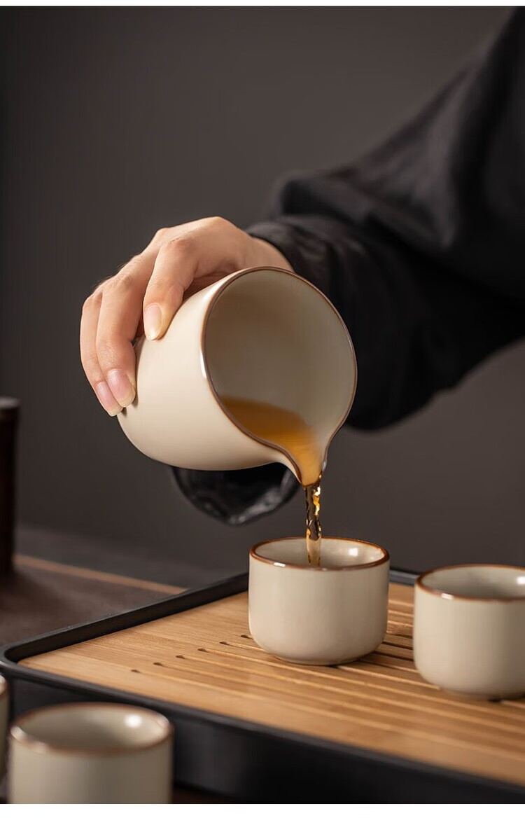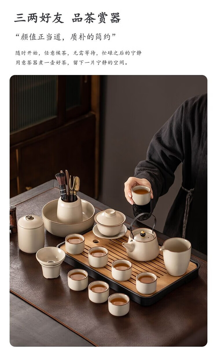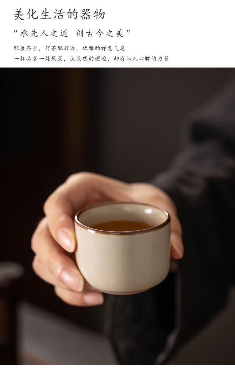 泰禧阁汝窑功夫茶具套装家用客厅陶瓷茶壶盖碗茶杯全套办公室高档泡茶器 提梁壶6杯
