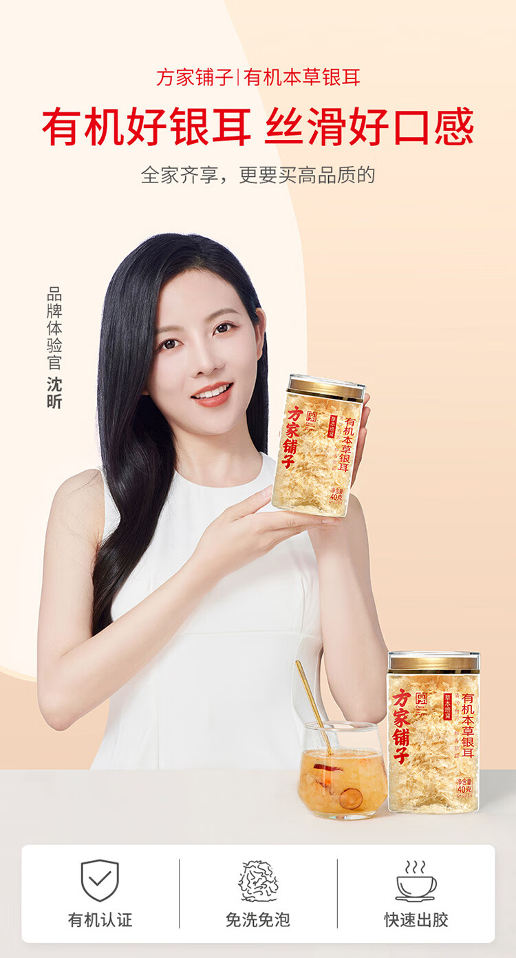 方家铺子中华老字号 有机本草银耳 免泡发银耳本草培植银耳 40g*1罐