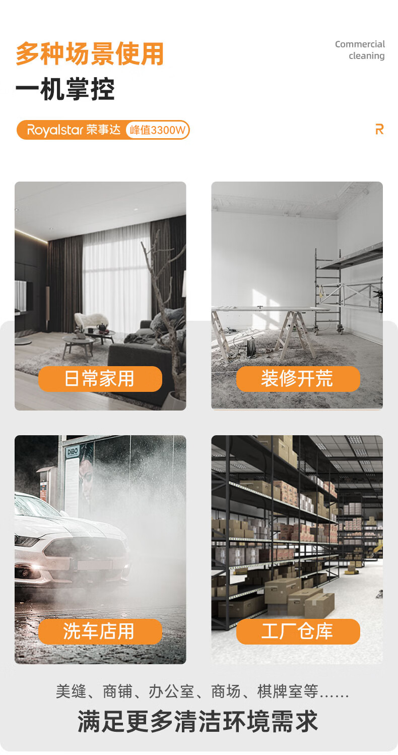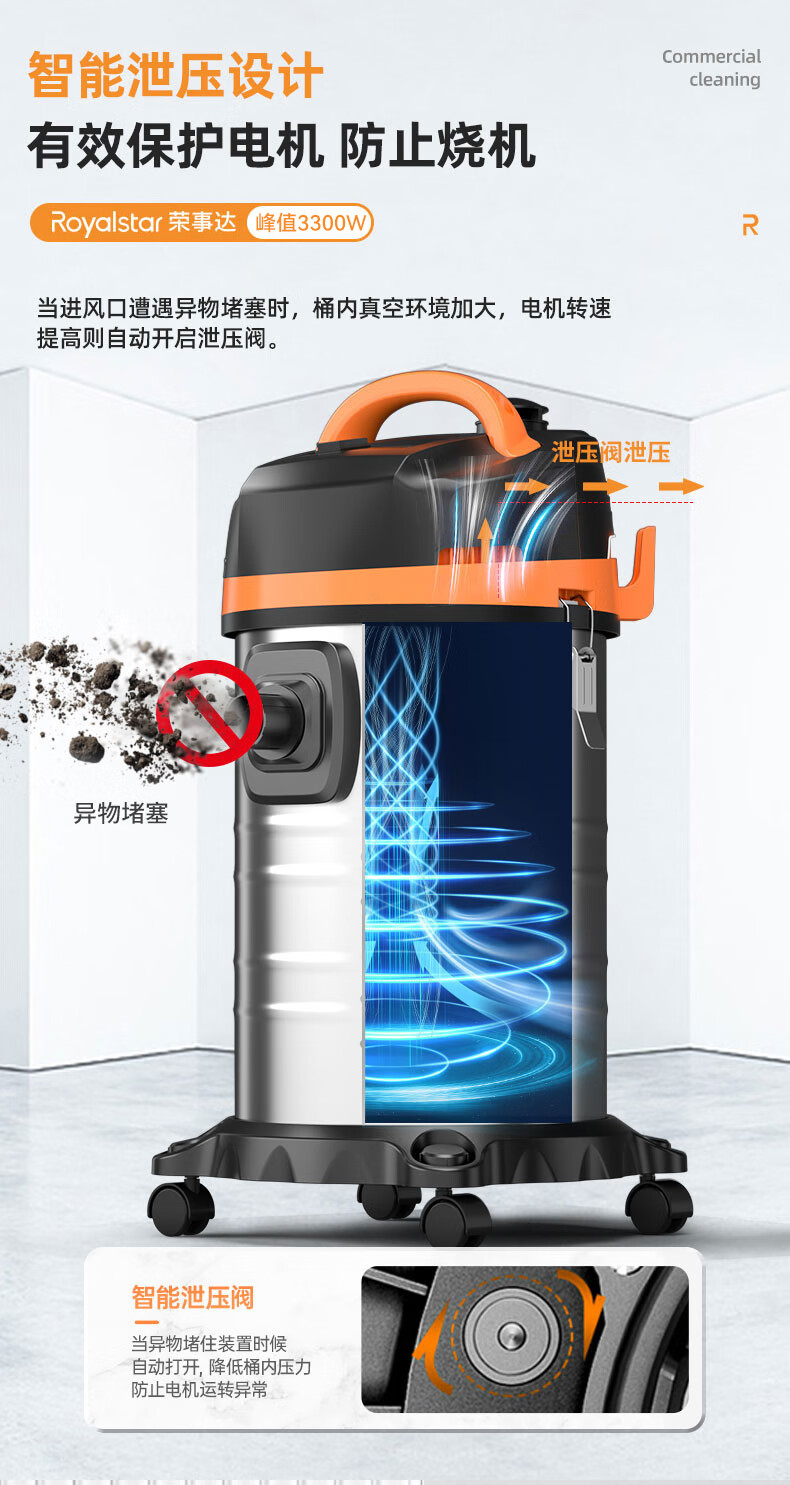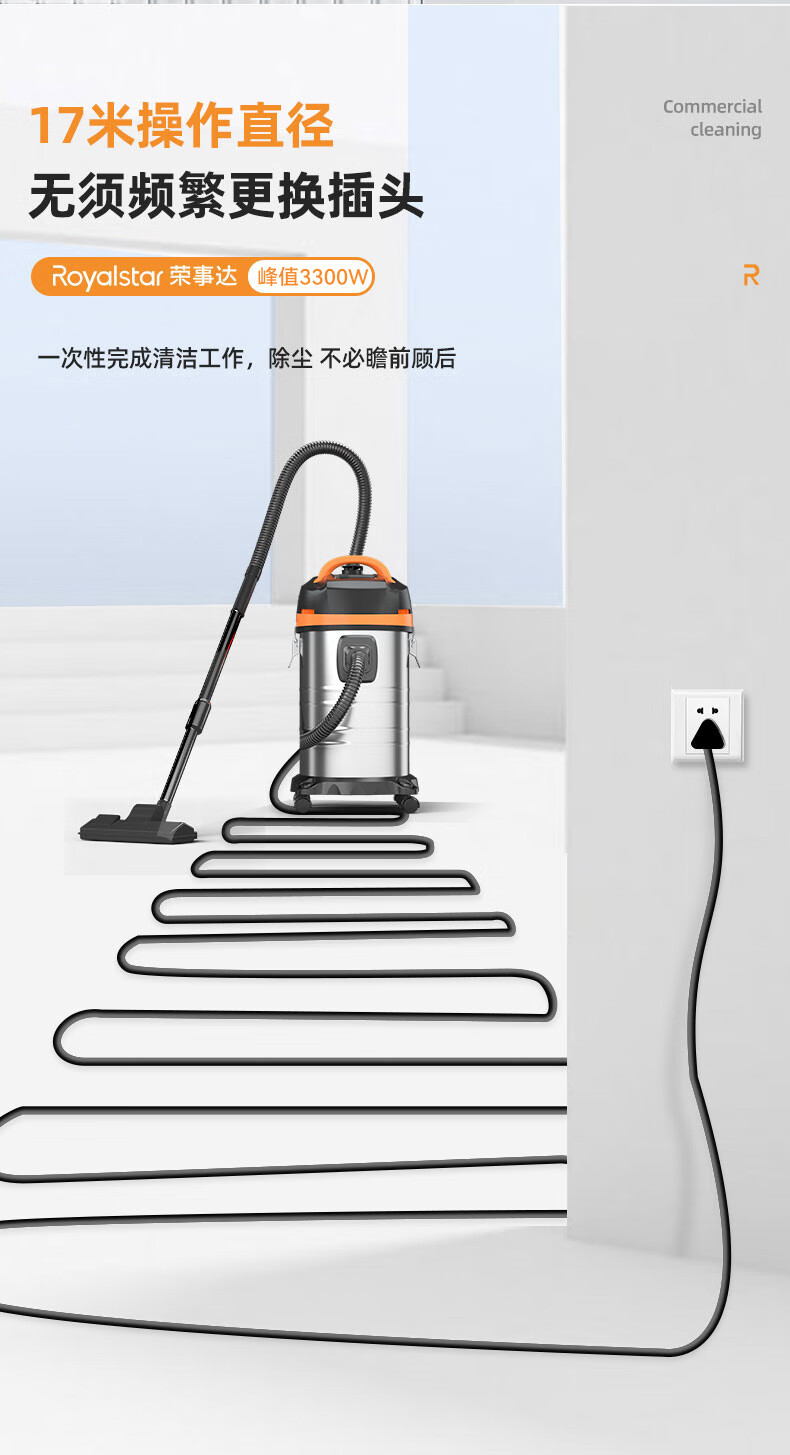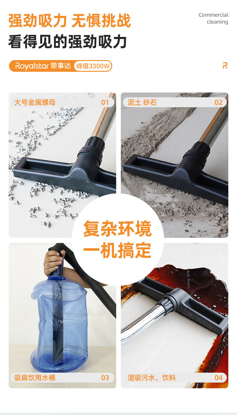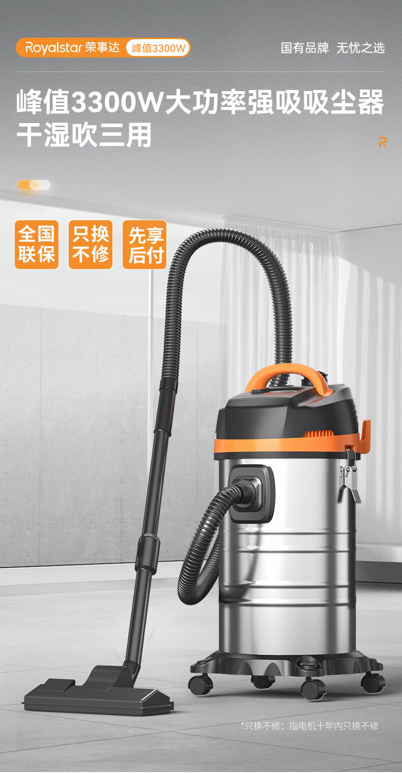 荣事达(Royalstar)吸尘器工业3300W峰值大功率家用大吸力45L开荒装修保洁商用酒店洗车店RS-XT300B-2