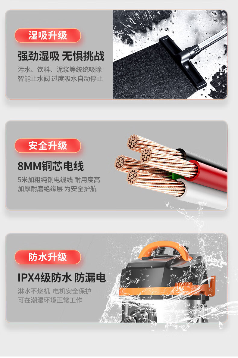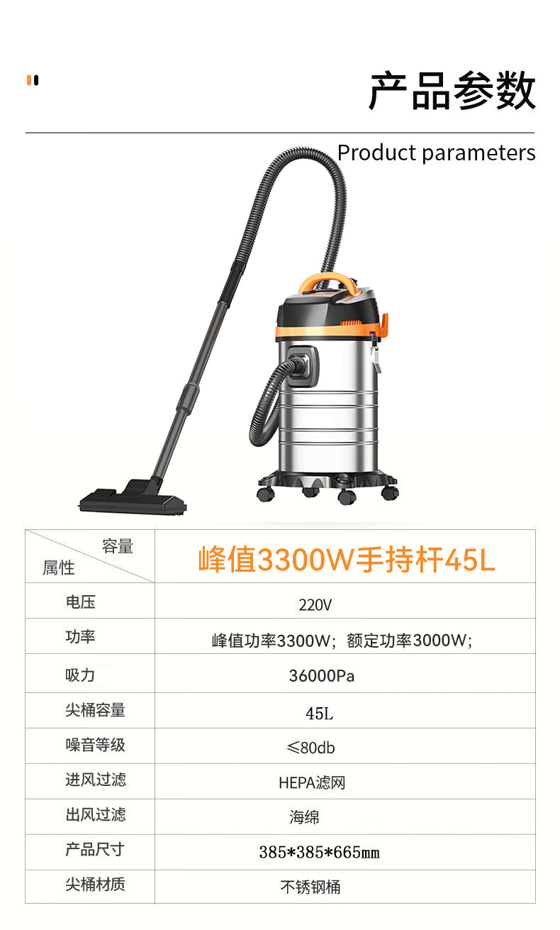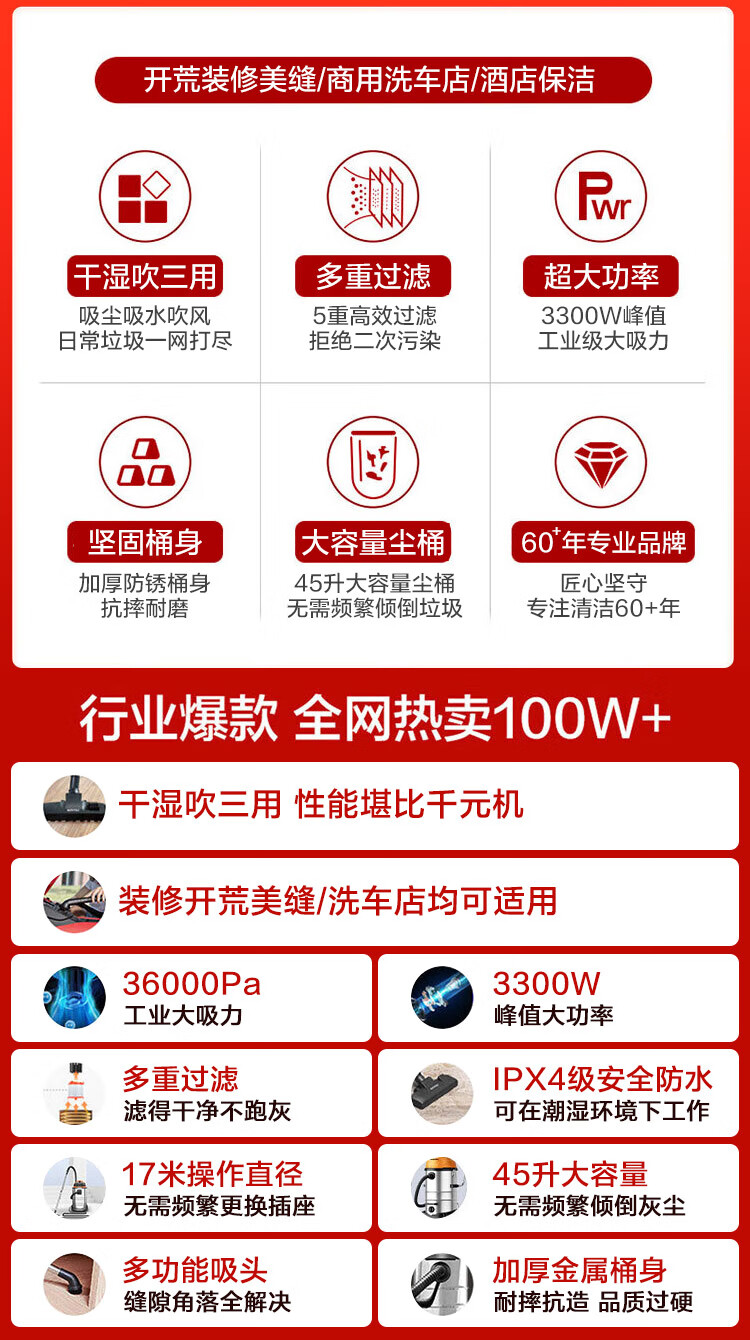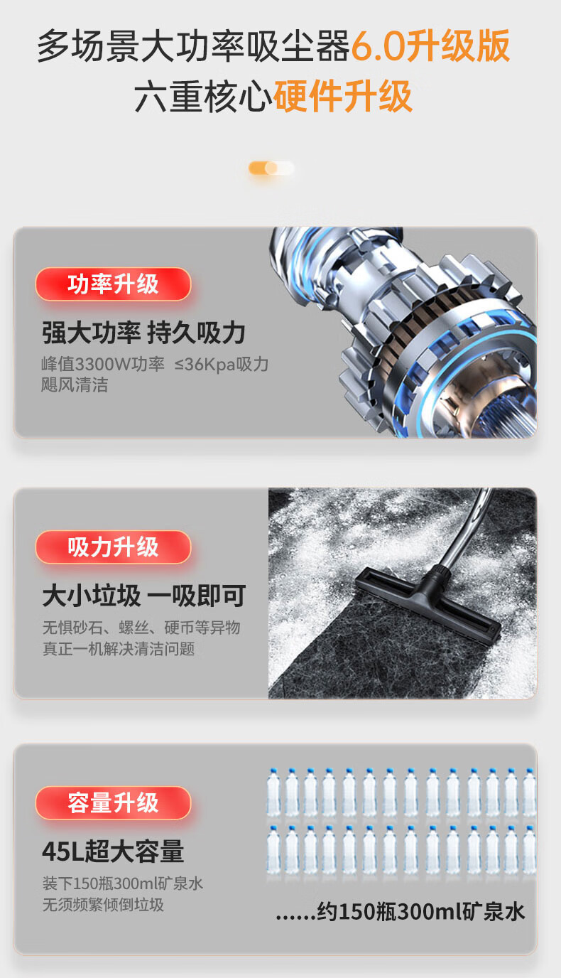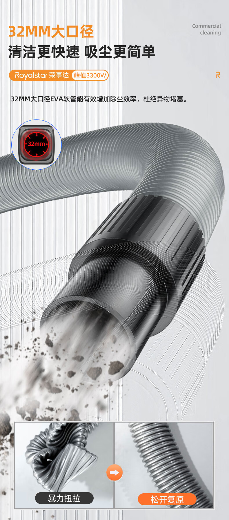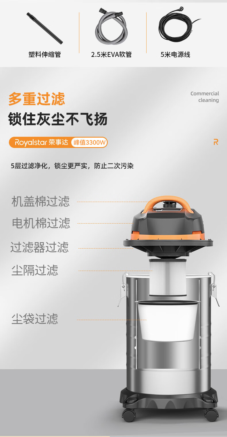荣事达(Royalstar)吸尘器工业3300W峰值大功率家用大吸力45L开荒装修保洁商用酒店洗车店RS-XT300B-2