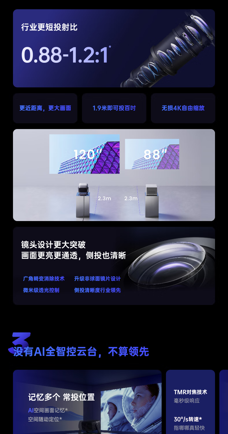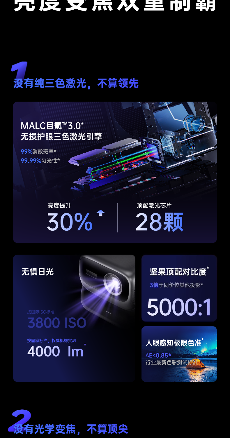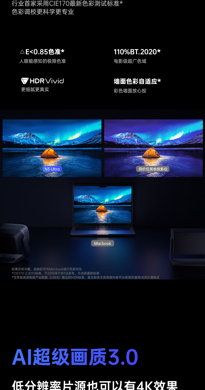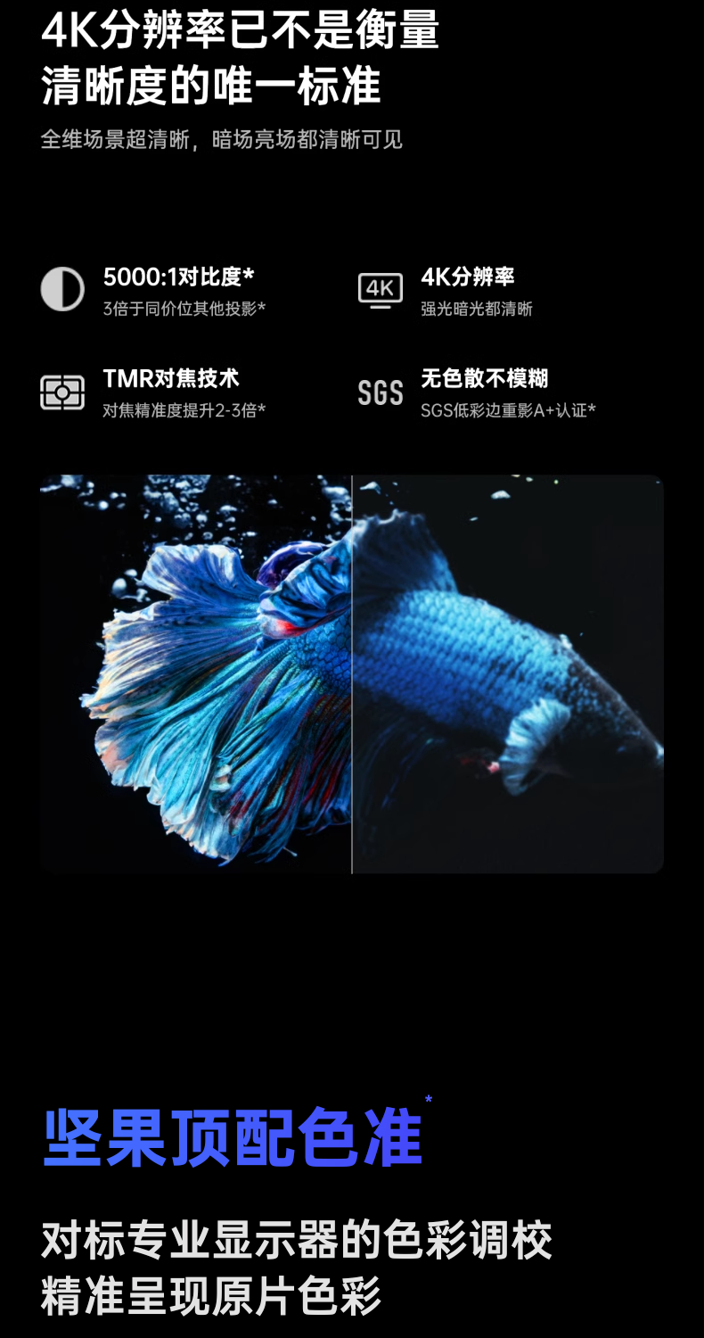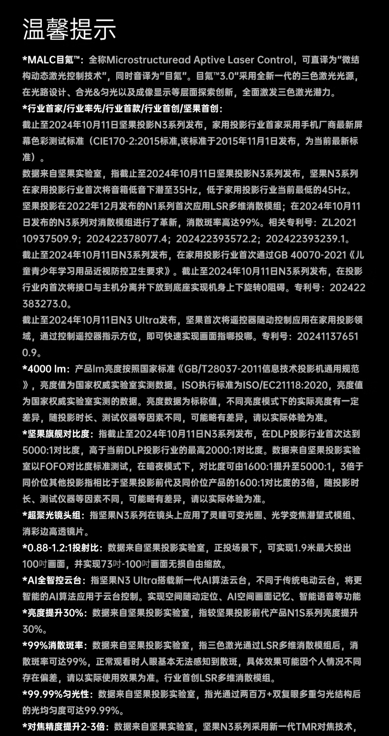 坚果投影(JMGO)N3 Ultra 纯三色激光变焦投影4000lm+AI全智控电动云台 4K超高清投影仪家庭影院国家补贴20%