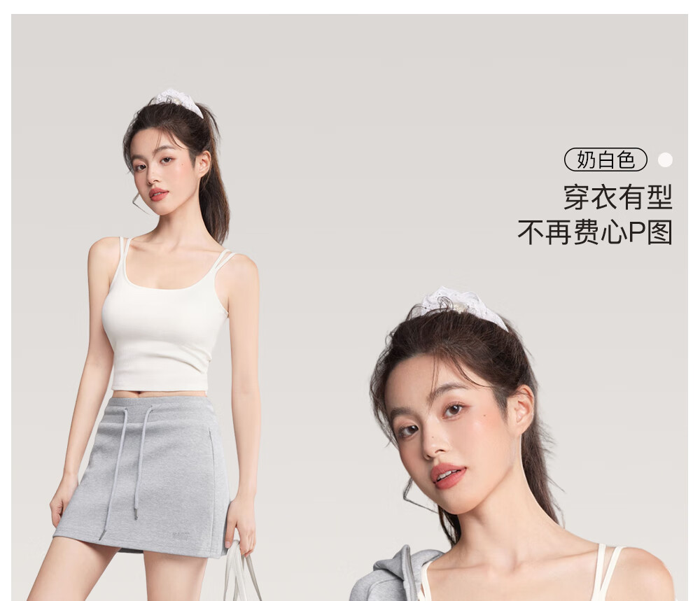 SecretWorld吊带背心女免穿文胸一体式薄款美背春夏外穿内搭上衣无袖新款辣妹 奶白+奶白【V字美背】 M 【90-110斤/卡码拍大】