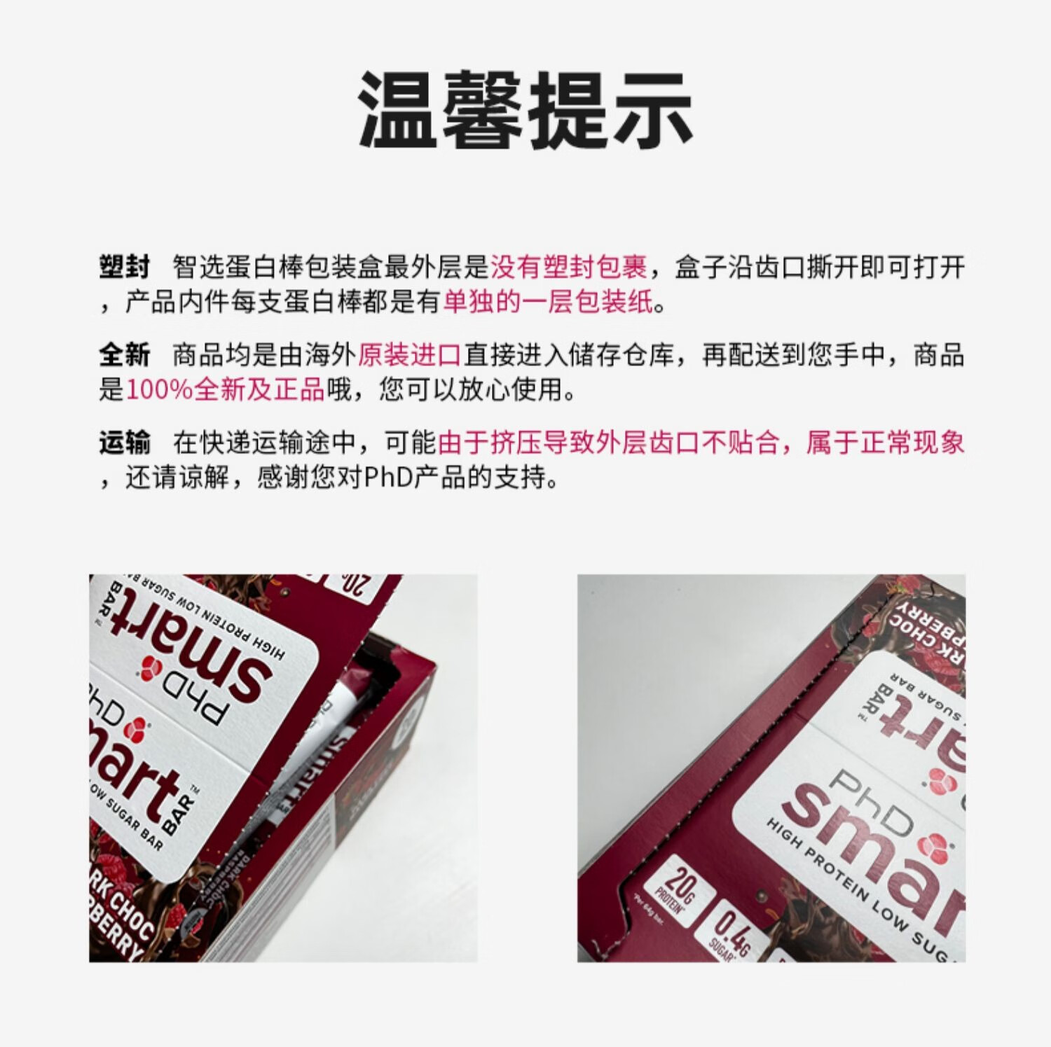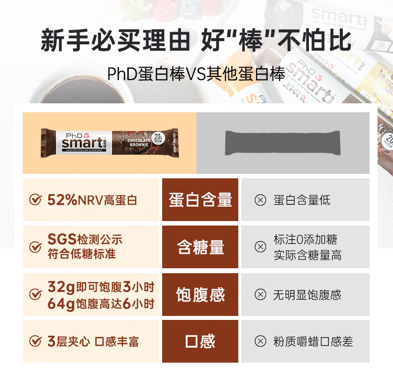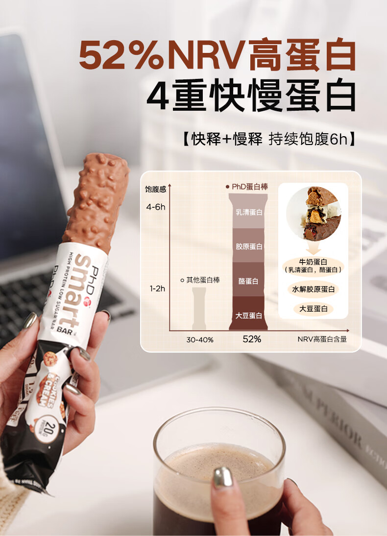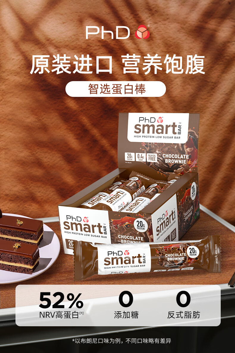 PhD智选smart乳清蛋白棒64g*12支/盒奶油曲奇口味能量代餐高健身食品