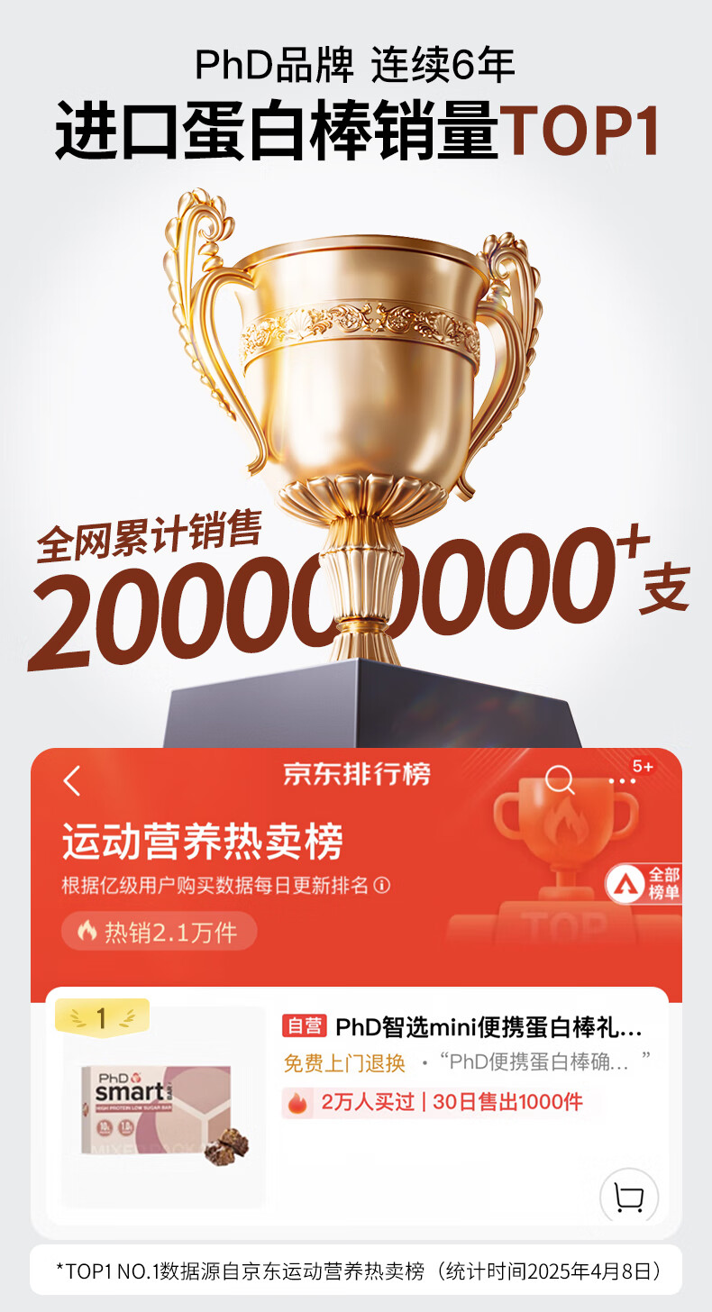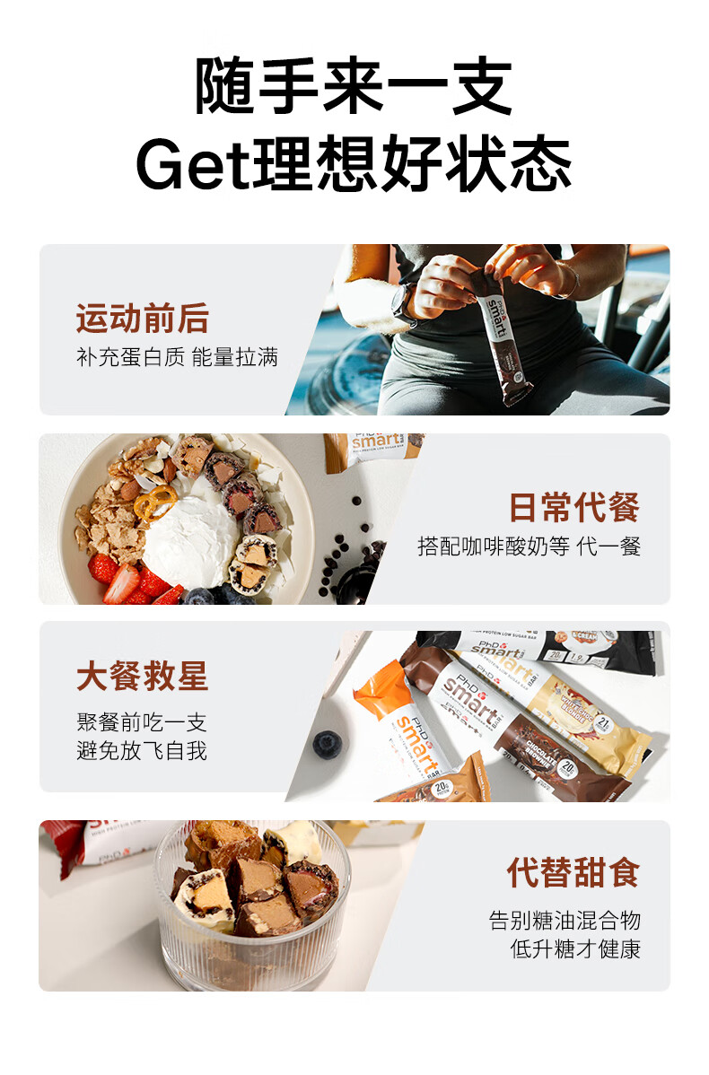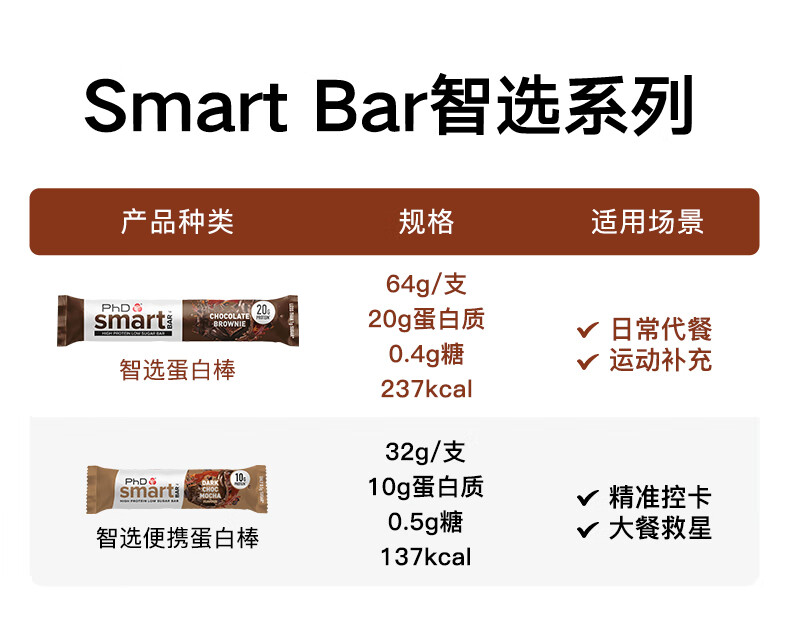 PhD智选smart乳清蛋白棒64g*12支/盒奶油曲奇口味能量代餐高健身食品