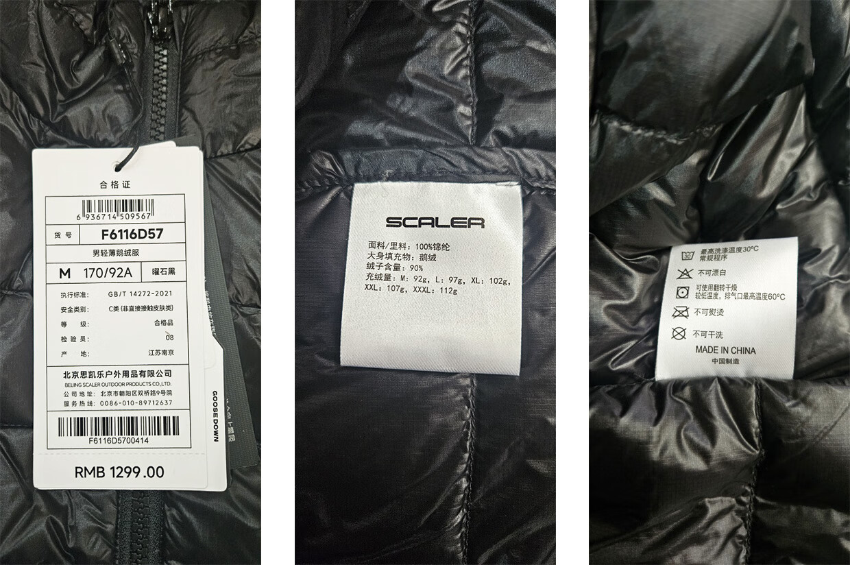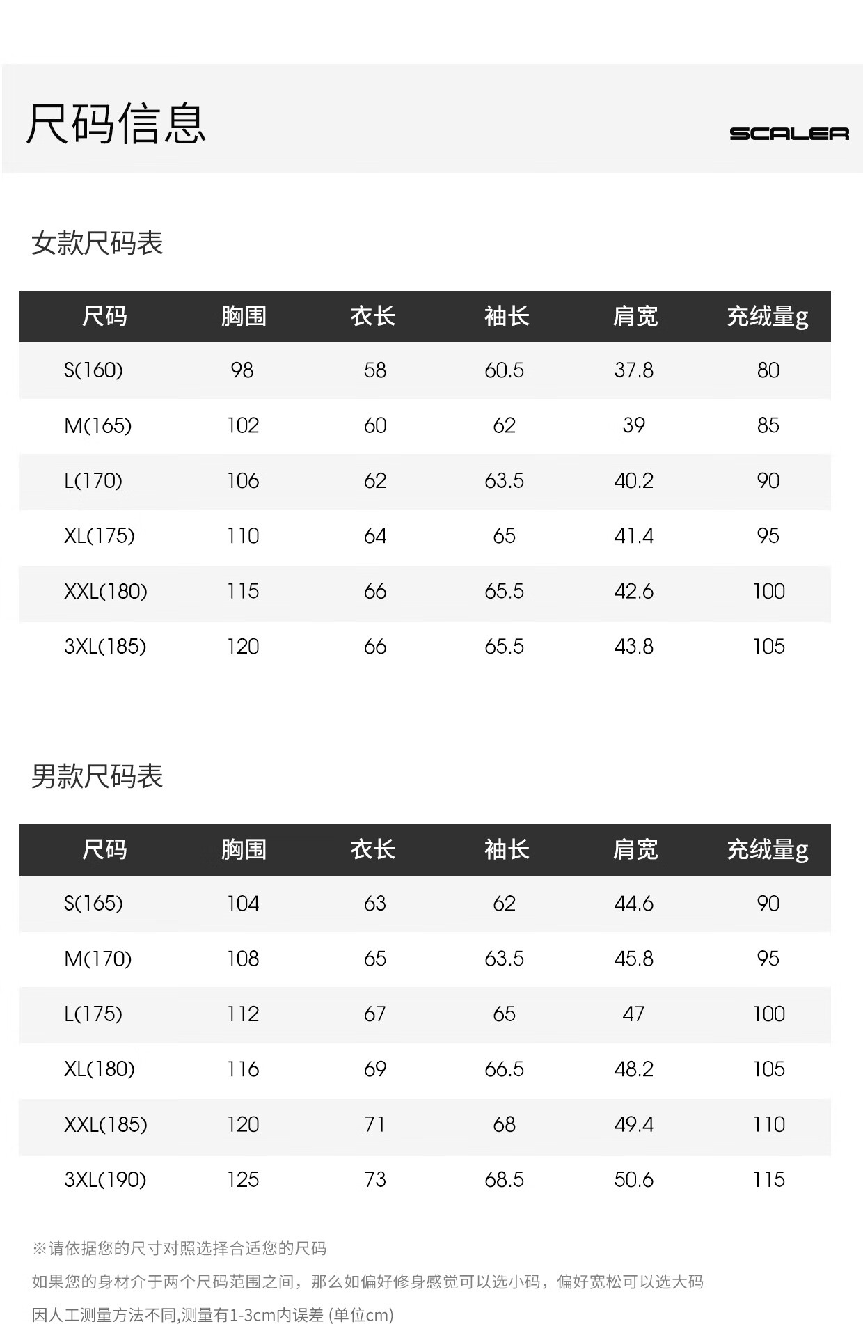 思凯乐(SCALER)户外羽绒服男女700蓬大鹅绒轻薄内胆秋冬短款保暖外套F6116D57