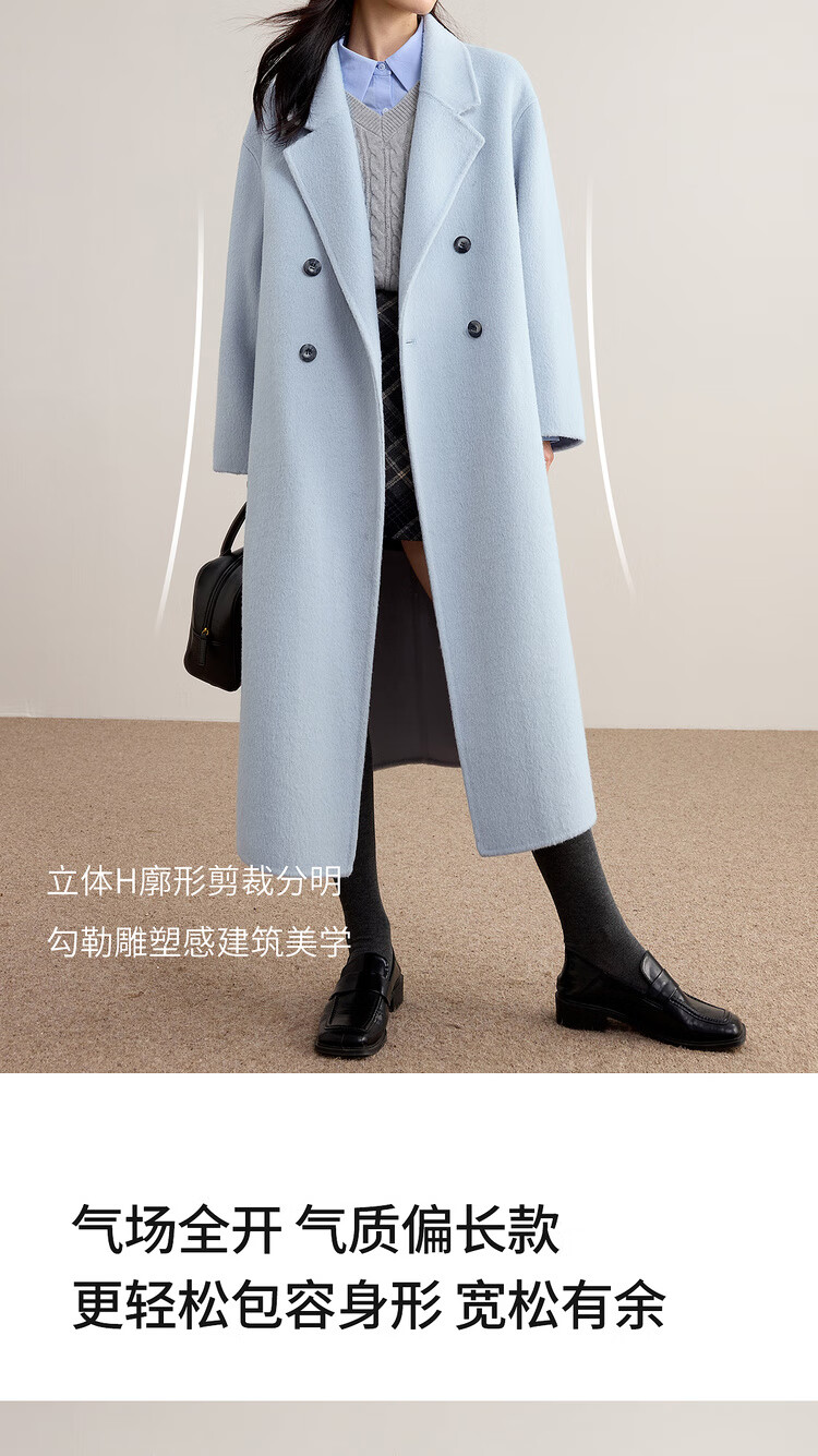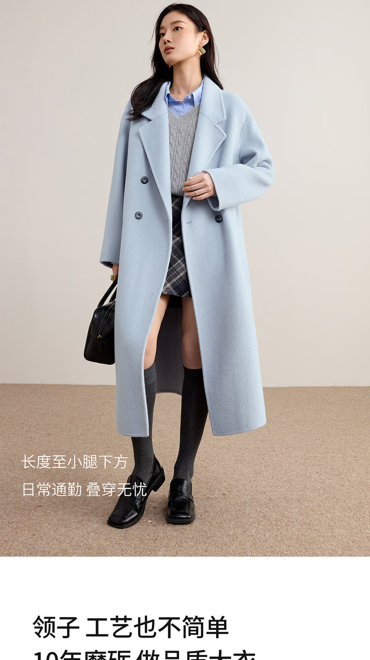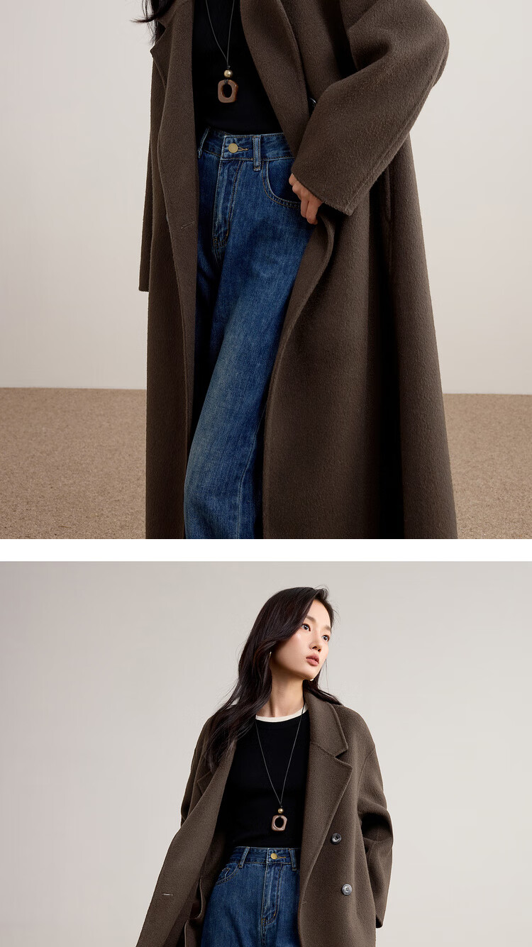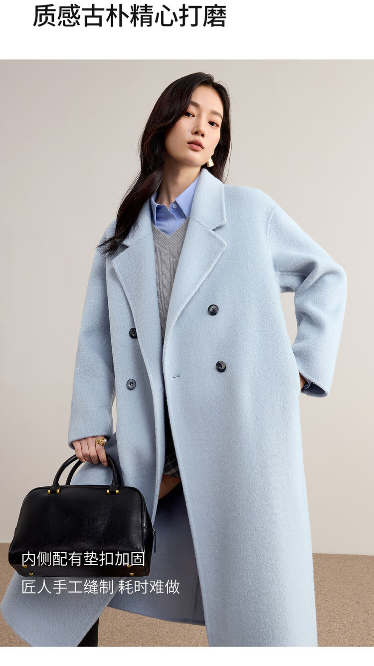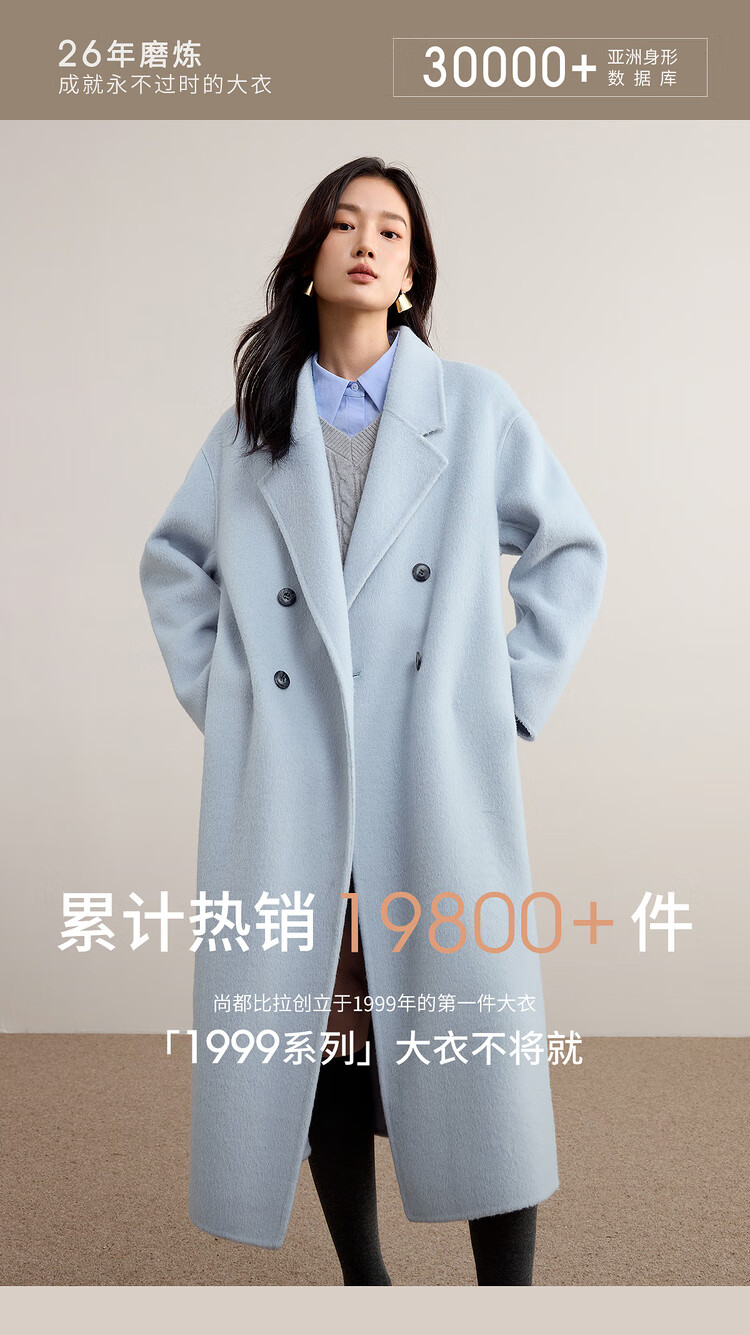 尚都比拉100%纯羊毛冬季保暖毛呢大衣女装西装领长款外套通勤大衣