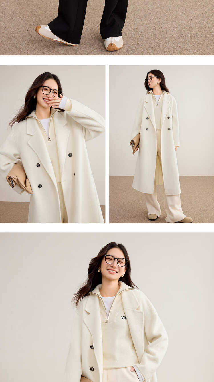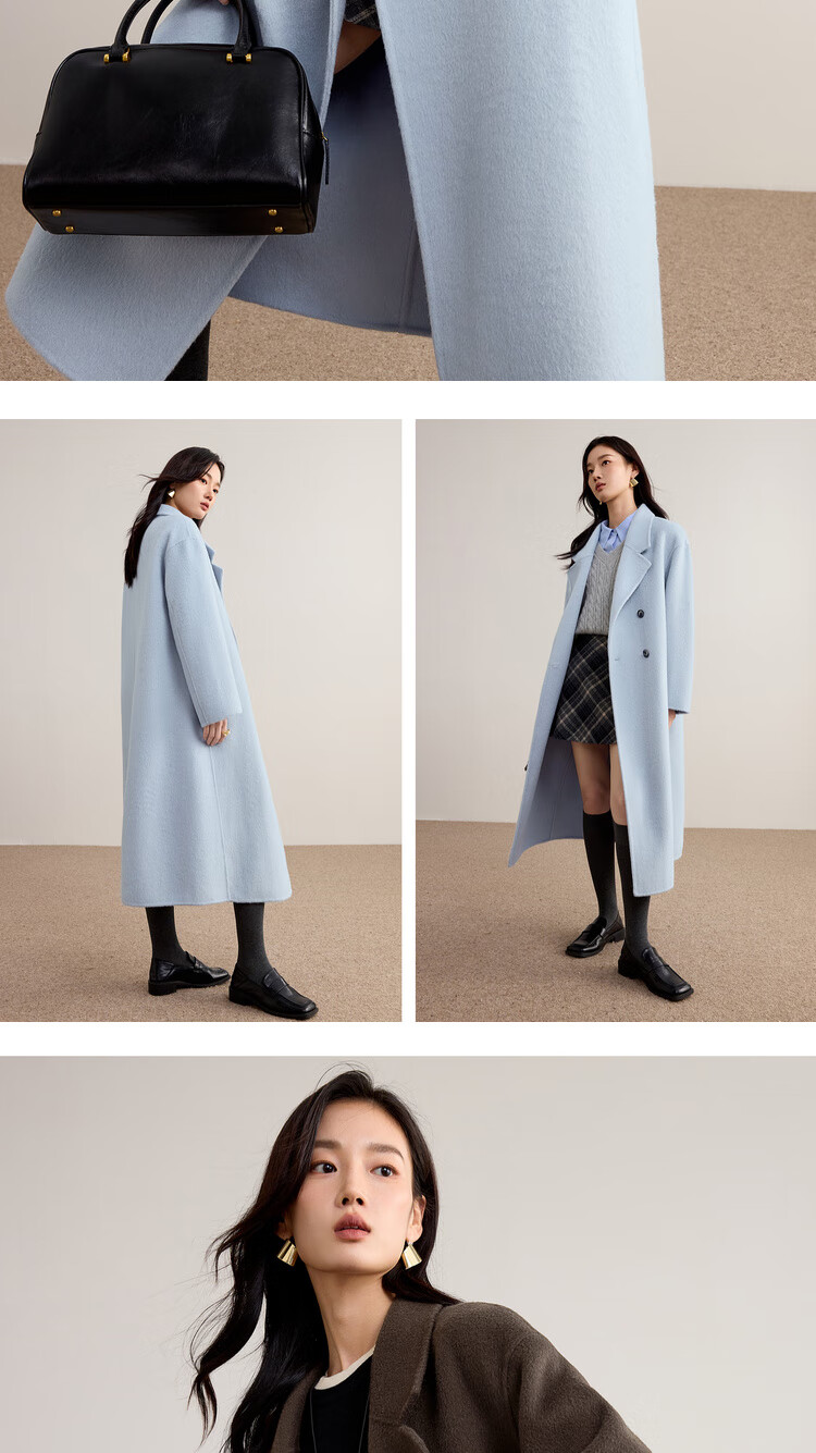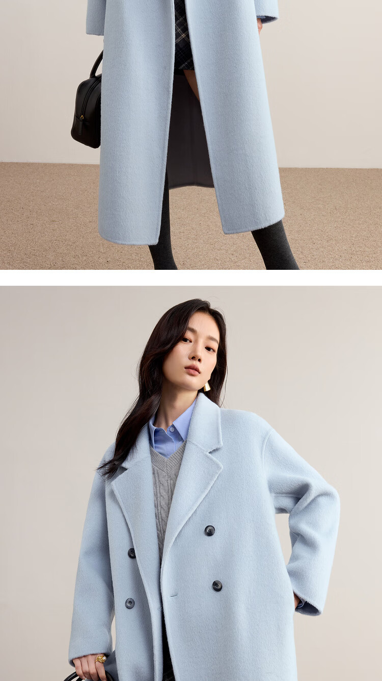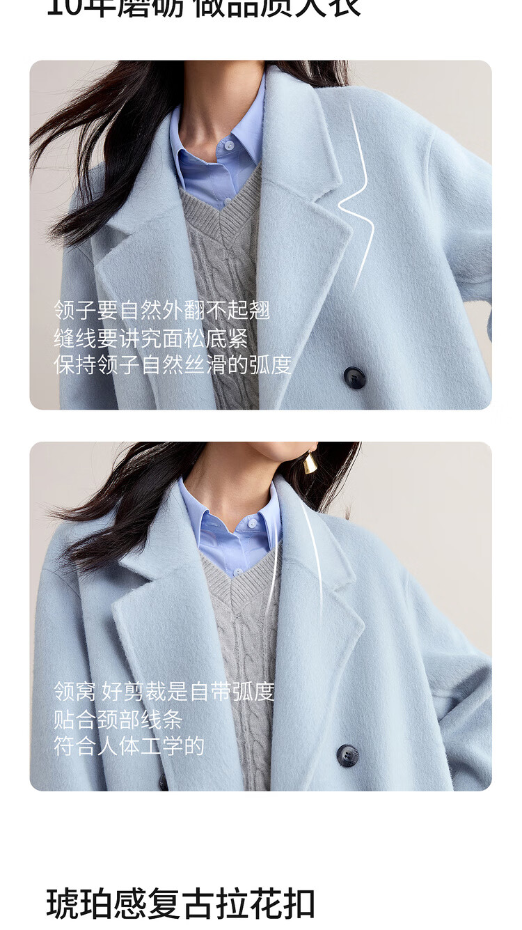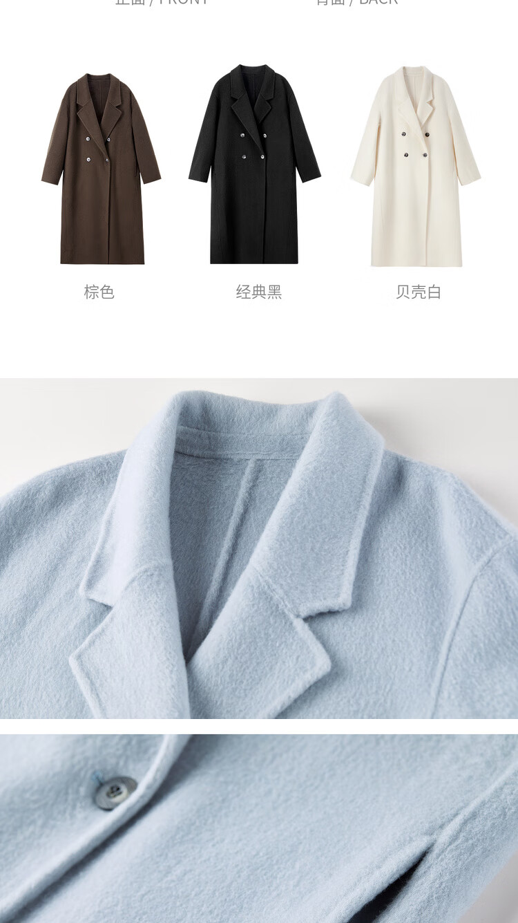 尚都比拉100%纯羊毛冬季保暖毛呢大衣女装西装领长款外套通勤大衣