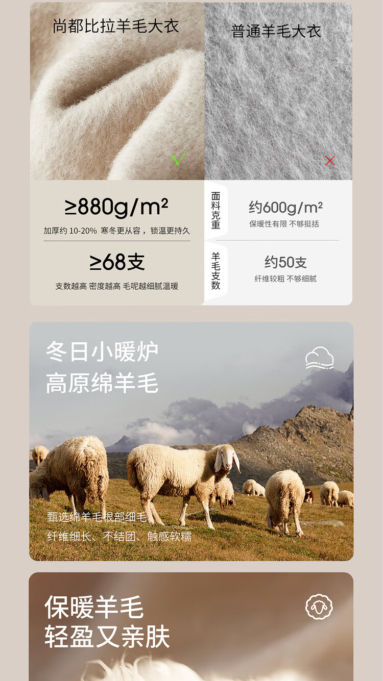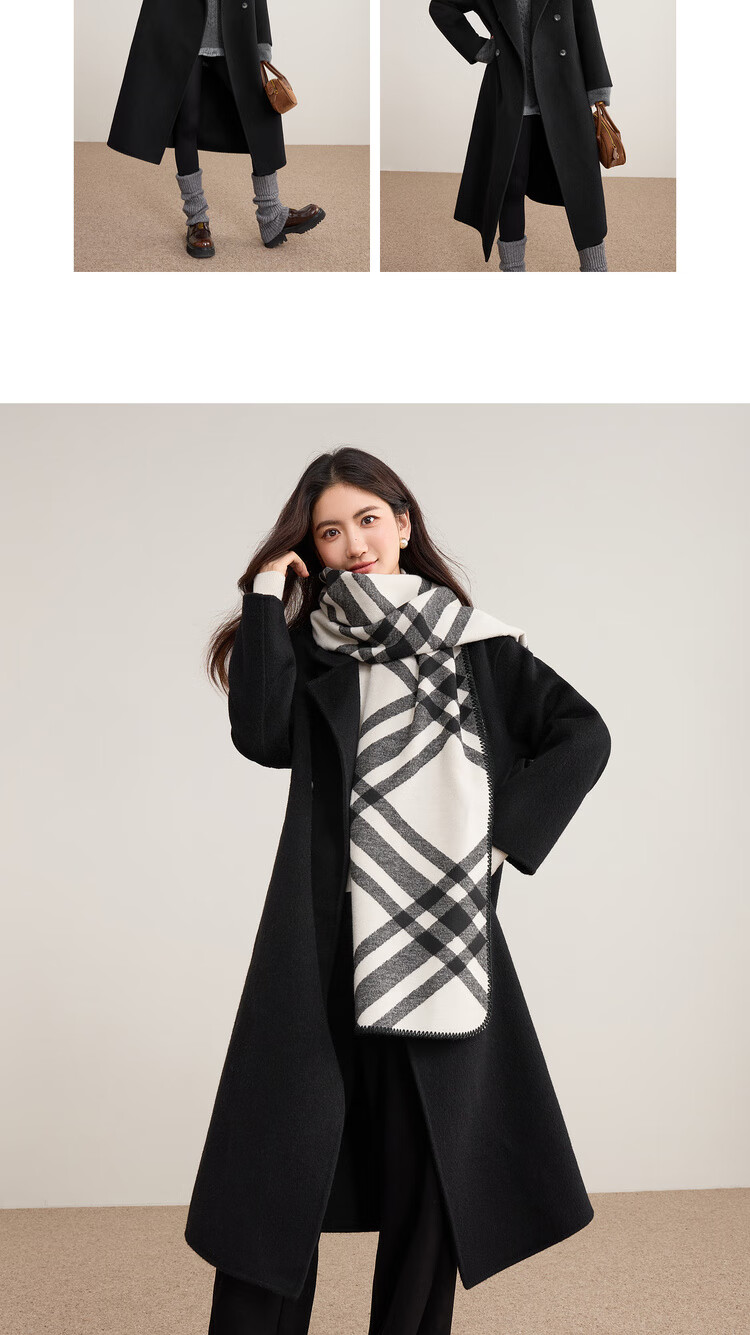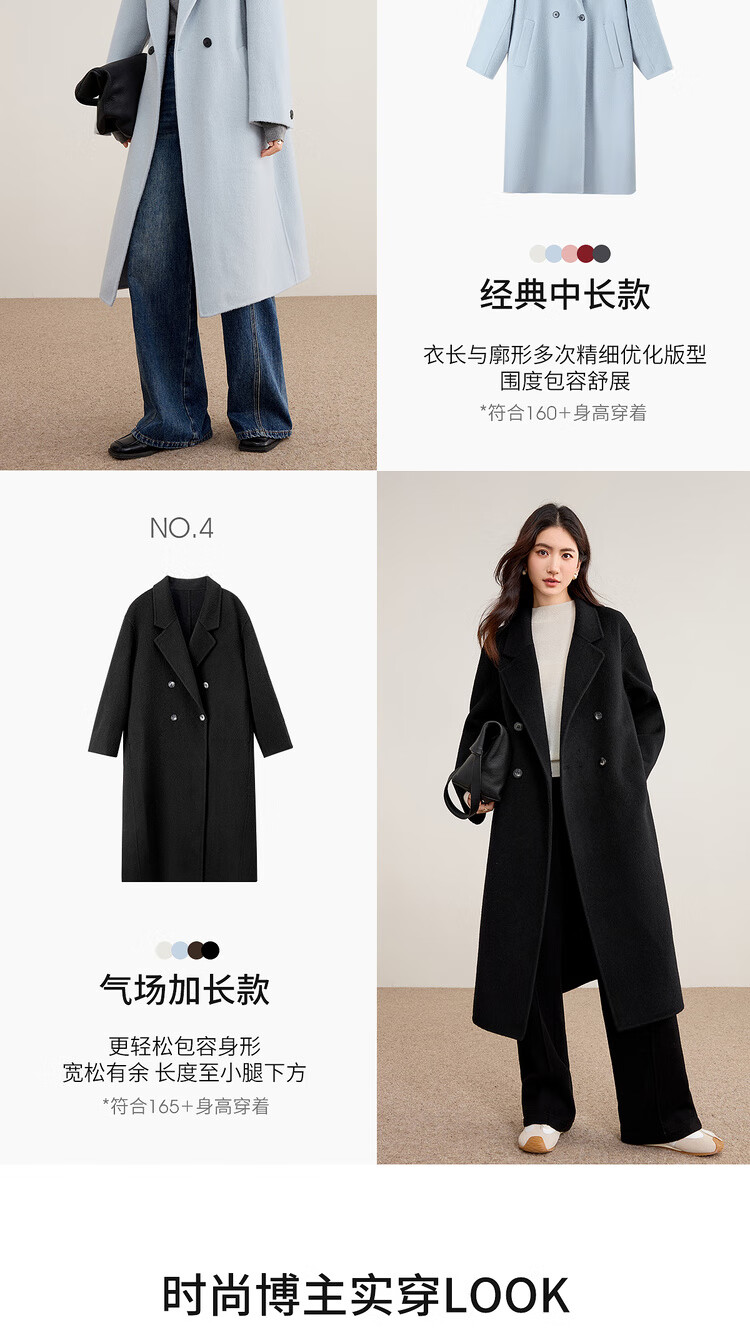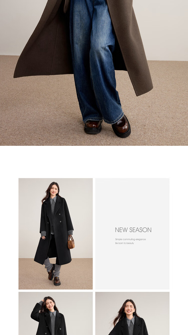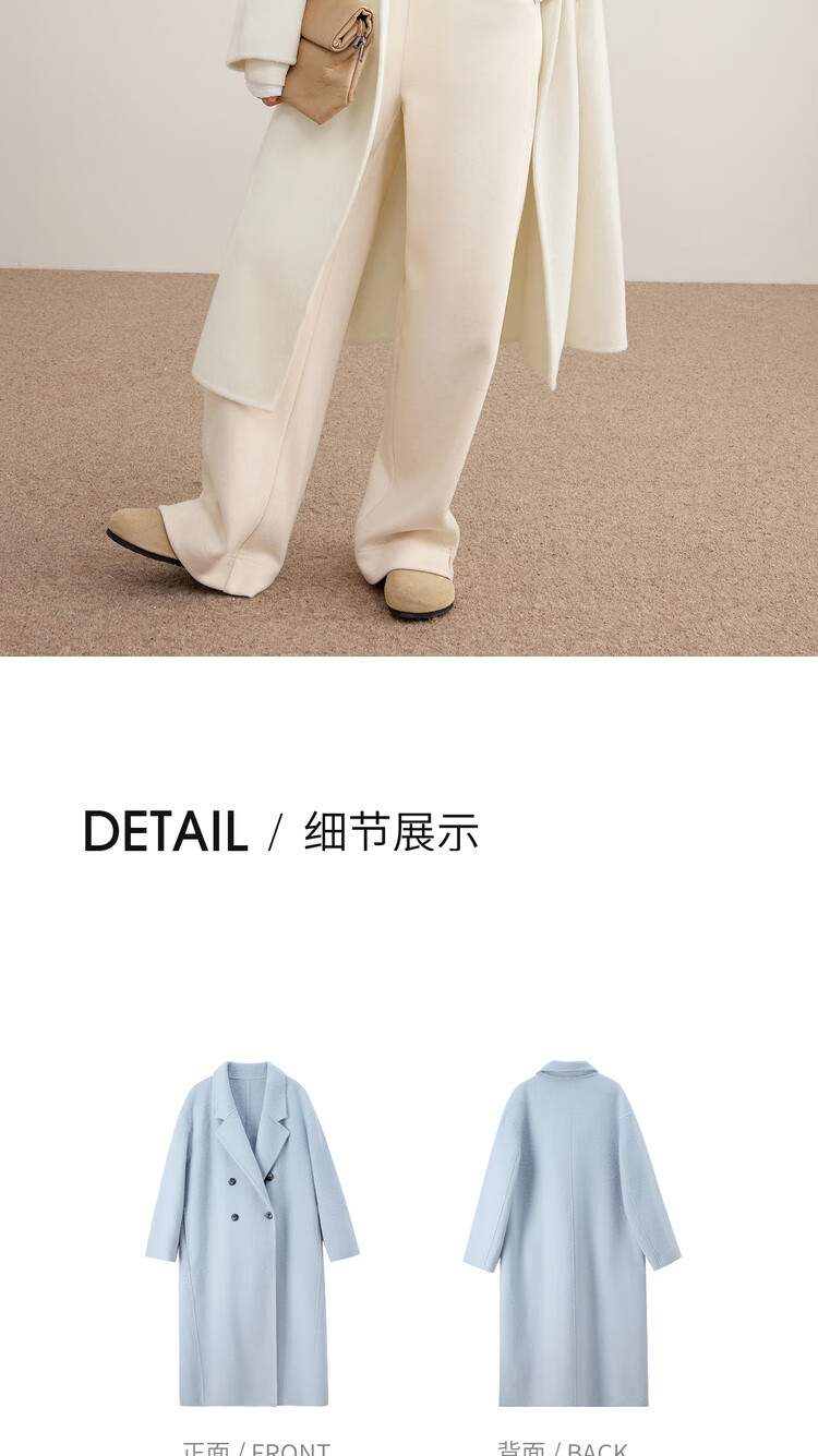尚都比拉100%纯羊毛冬季保暖毛呢大衣女装西装领长款外套通勤大衣