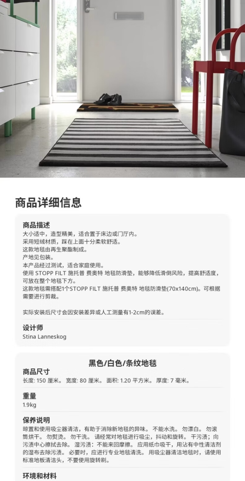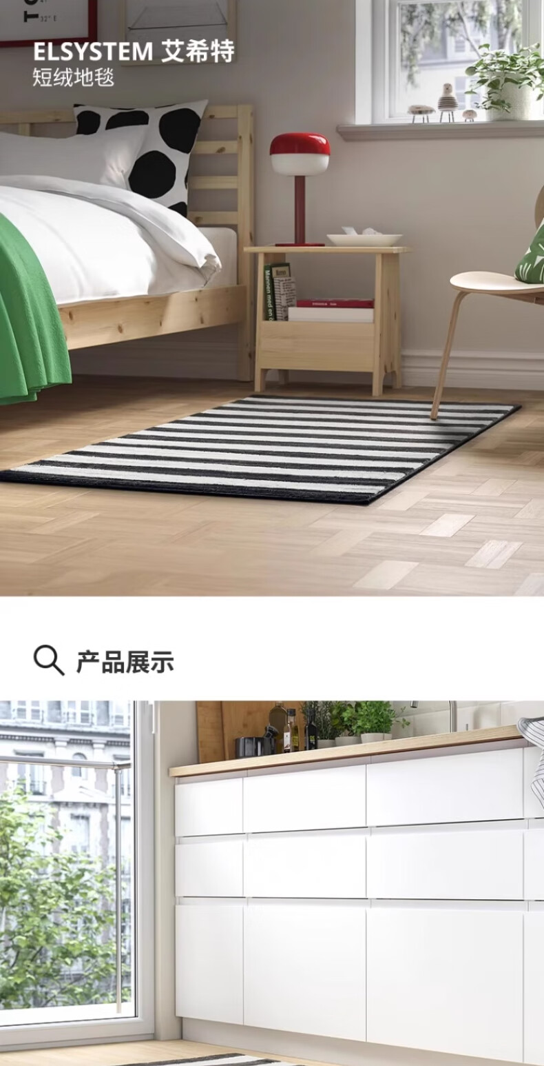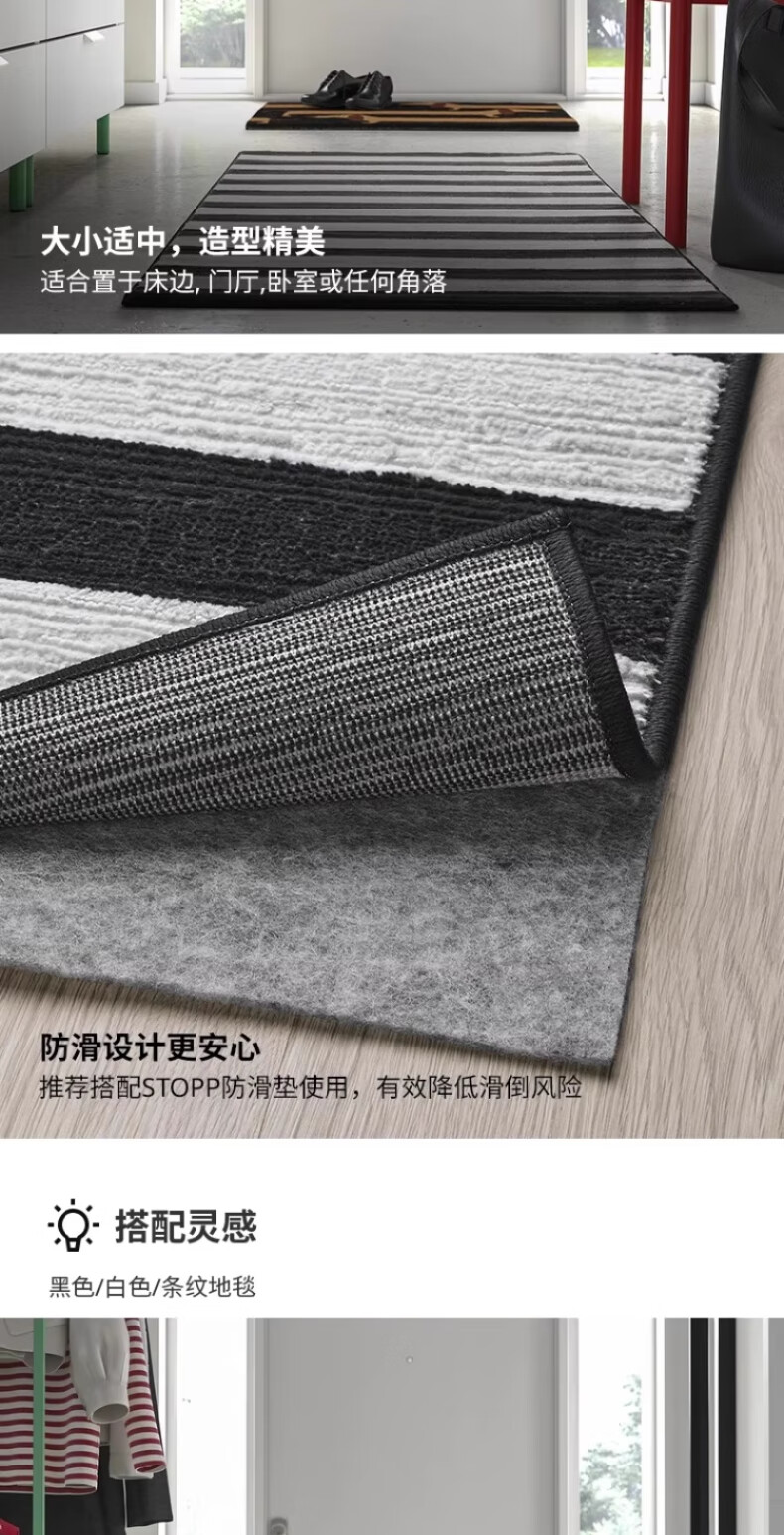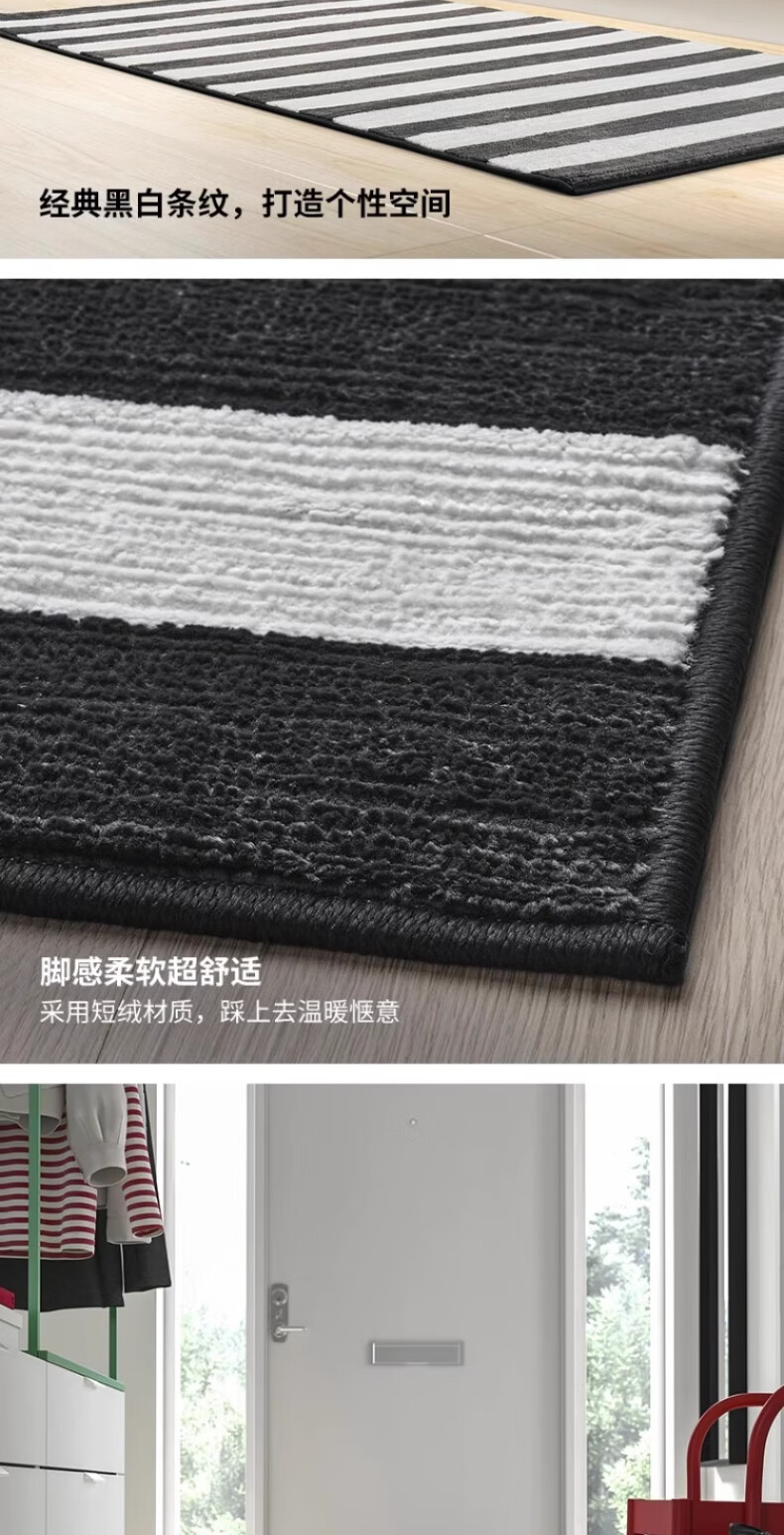 宜家(IKEA)ELSYSTEM艾希特短绒地毯门垫防滑垫门口脚垫家用 黑色/白色/条纹地毯