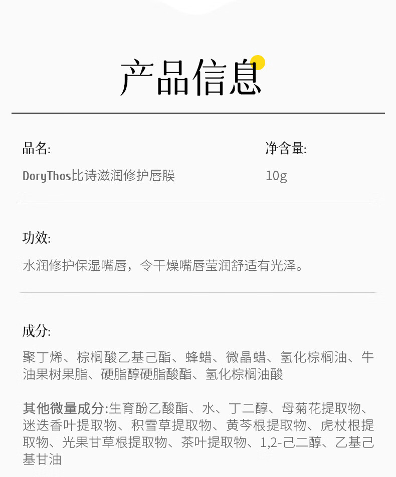 比诗未来水润修护唇膜 青少年凡士林唇膏滋润补水保湿防干裂不粘腻10g
