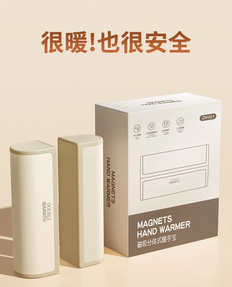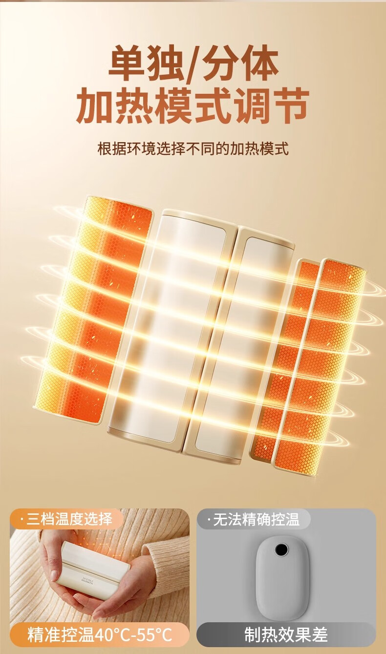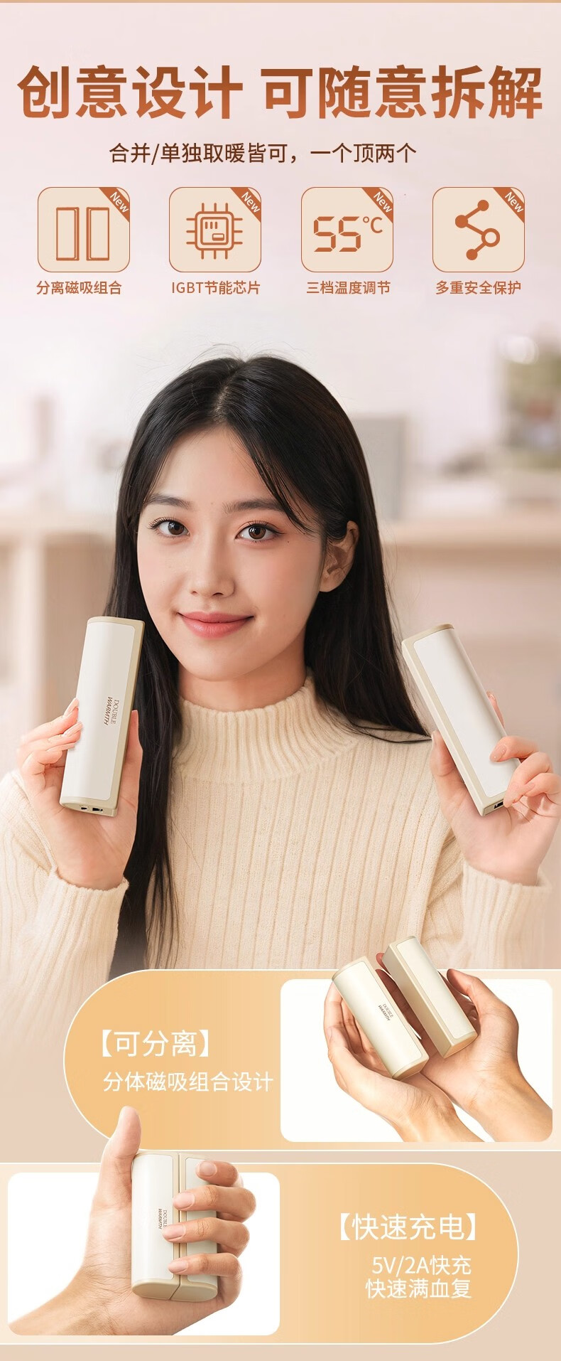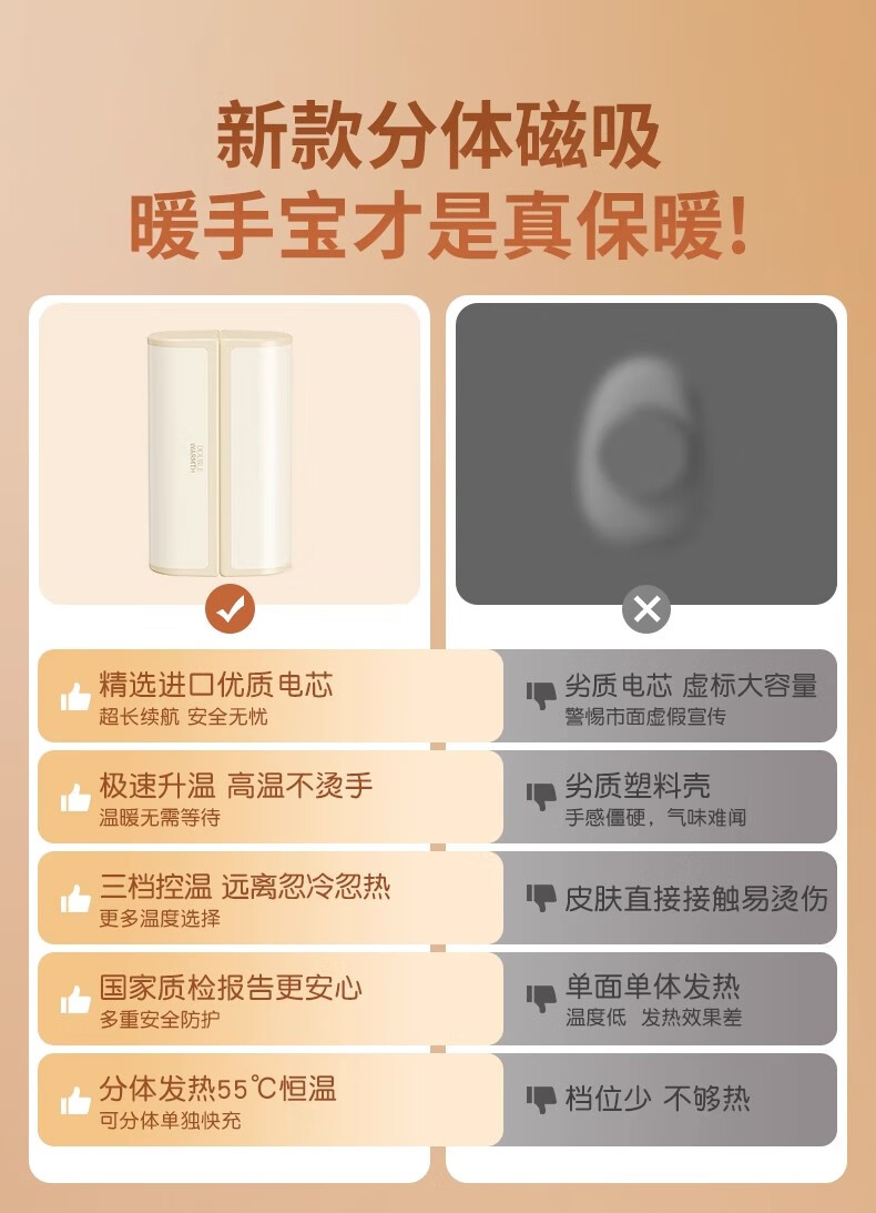 AILUKI日本高端双磁吸二合一暖手宝USB充电超长续航防爆自发热暖手神器 卡其色(2025款)-三档调节-安全防爆-磁吸分离
