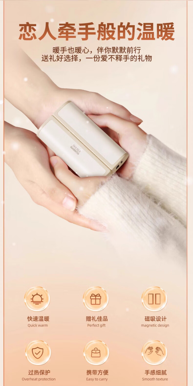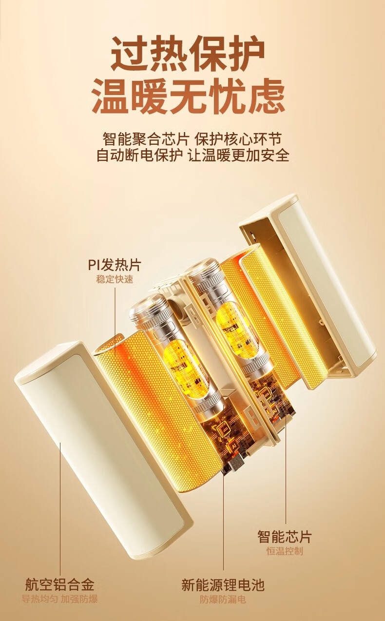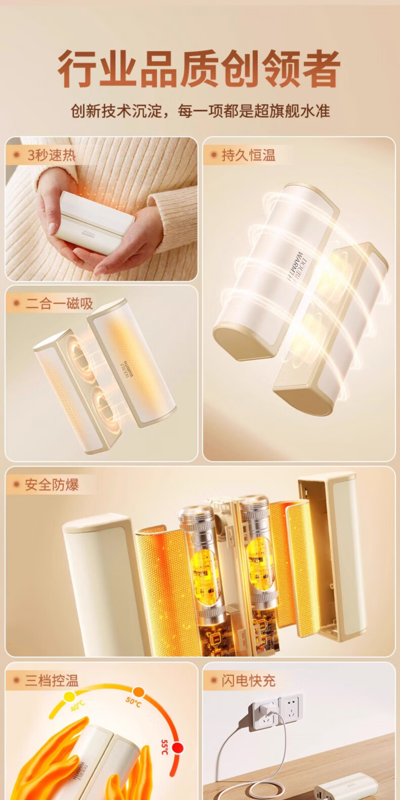 AILUKI日本高端双磁吸二合一暖手宝USB充电超长续航防爆自发热暖手神器 卡其色(2025款)-三档调节-安全防爆-磁吸分离