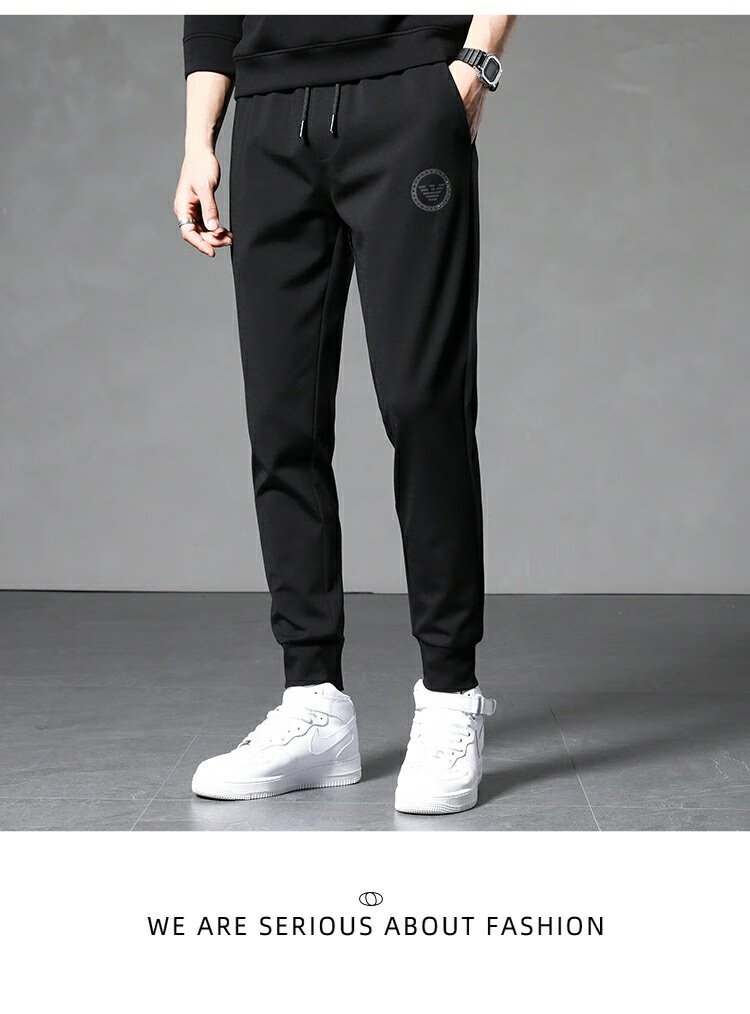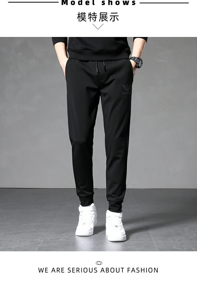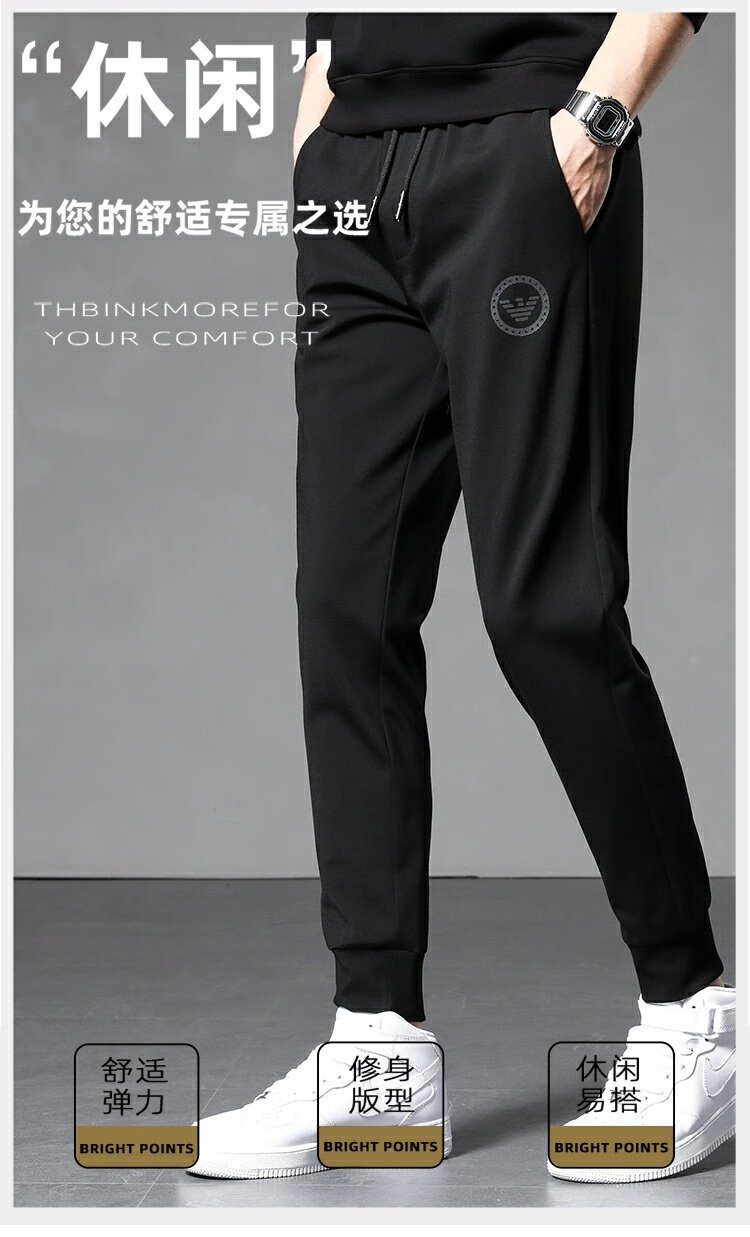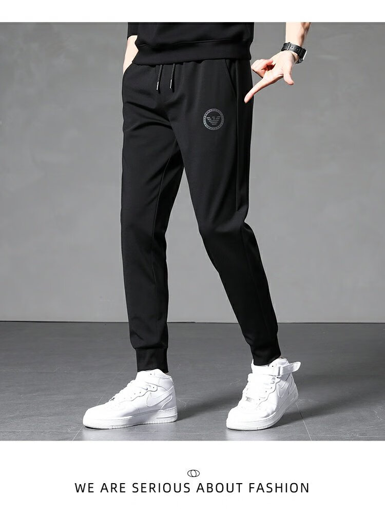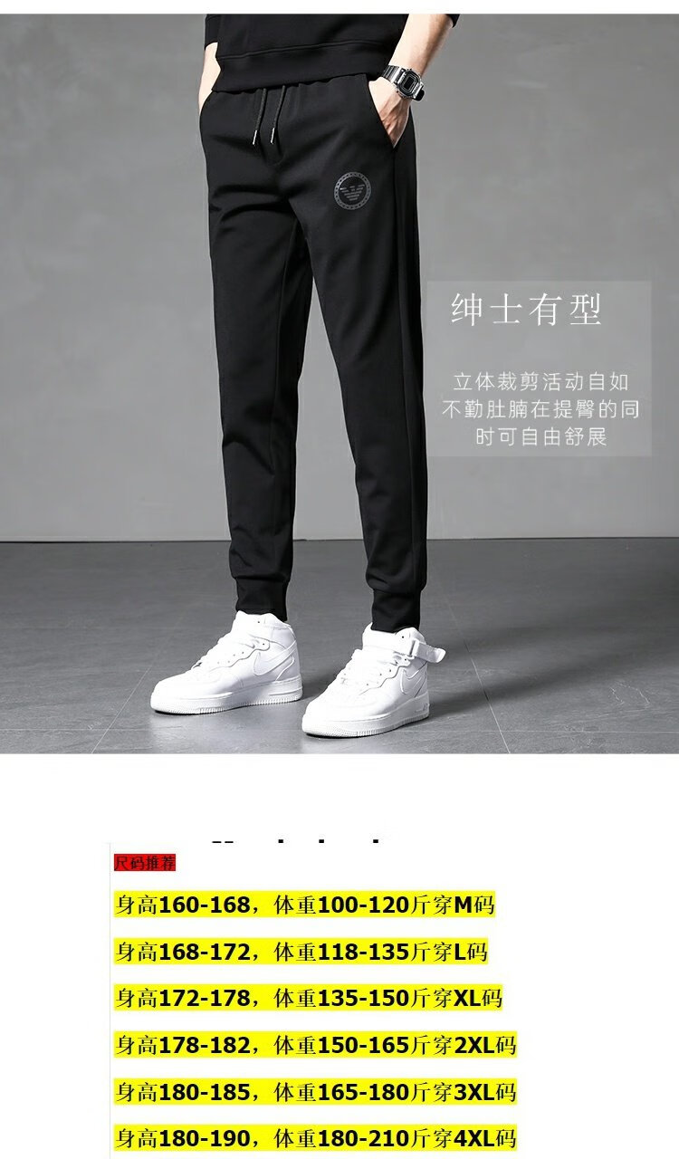 AX阿玛尼新款春夏薄款运动休闲长裤男中青年修身纯色束脚卫裤潮流 8923黑色 M 165