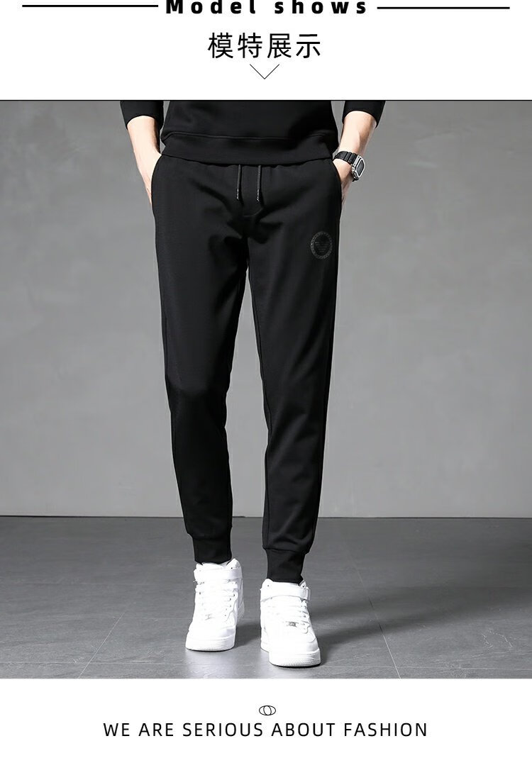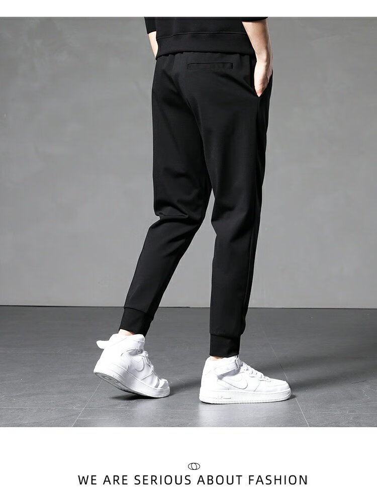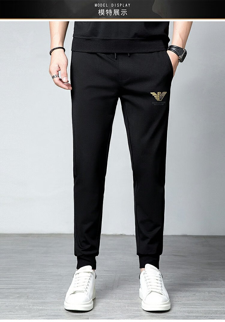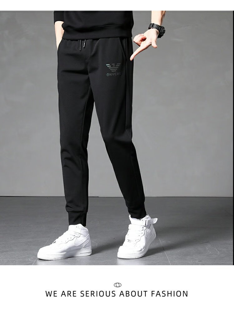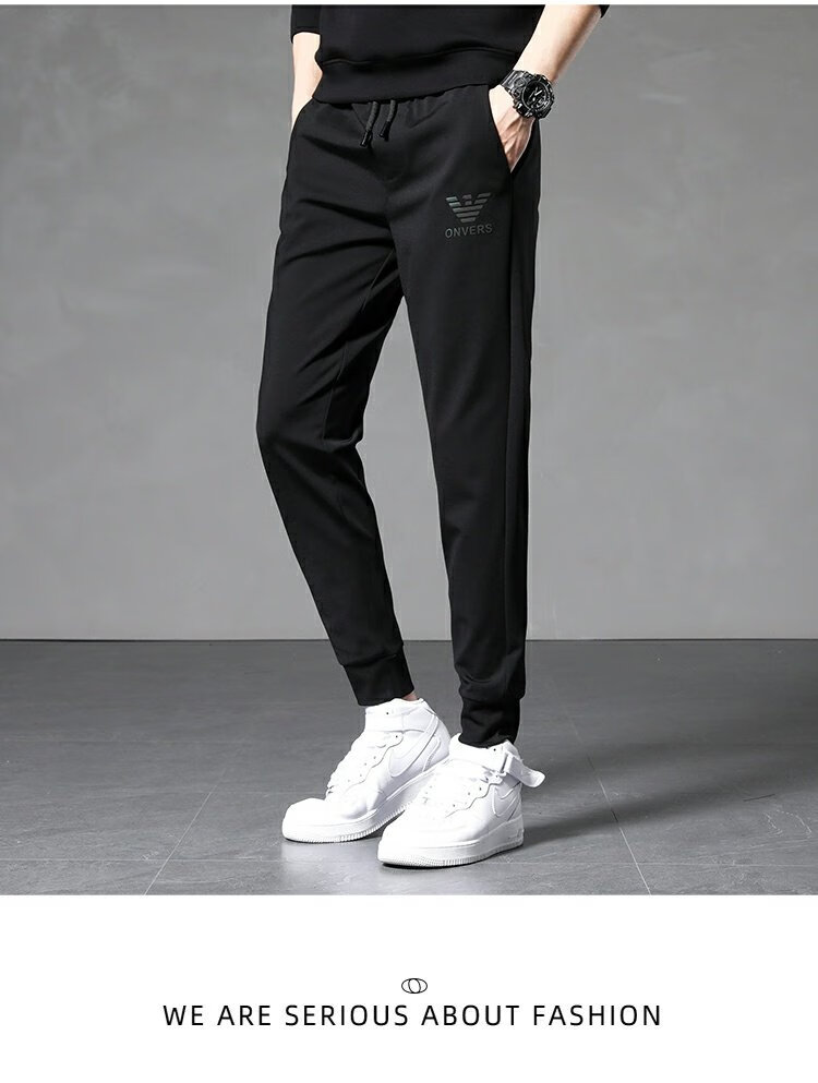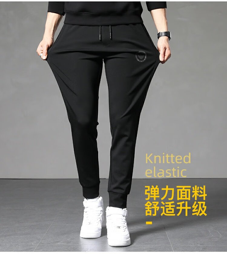 AX阿玛尼新款春夏薄款运动休闲长裤男中青年修身纯色束脚卫裤潮流 8923黑色 M 165