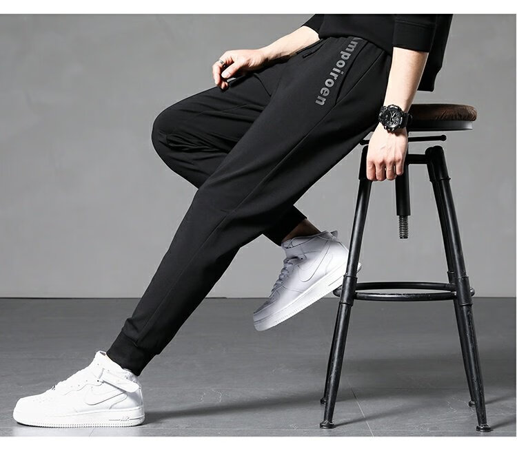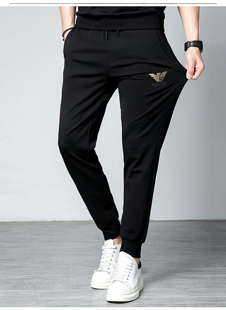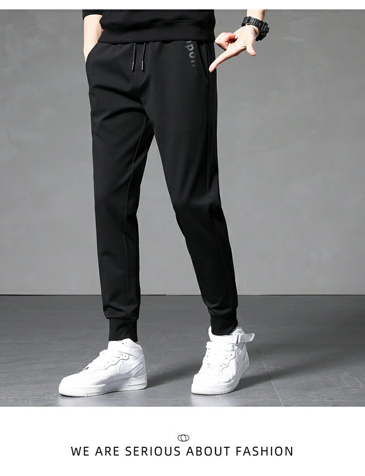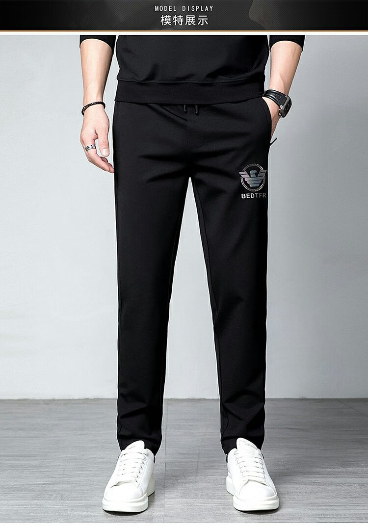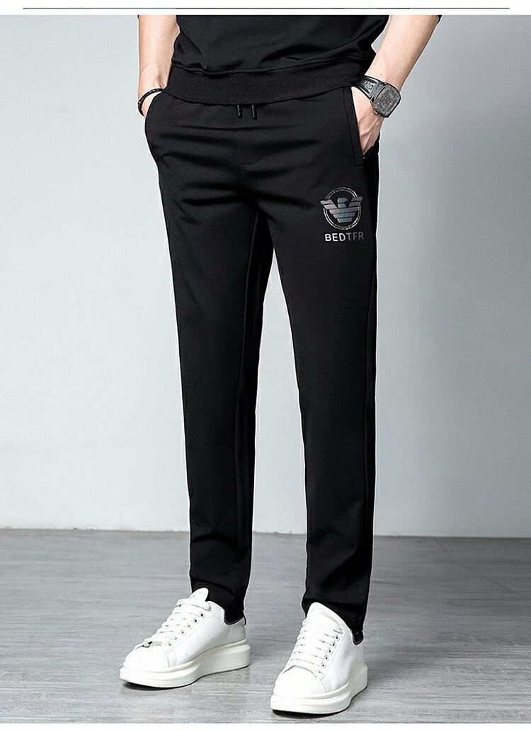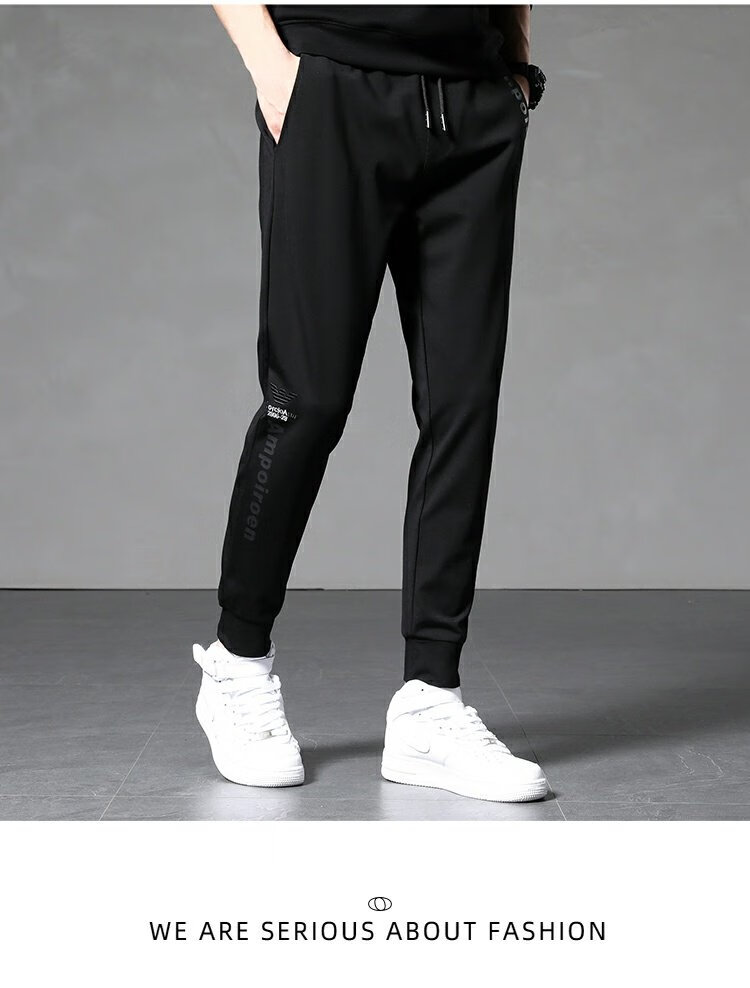 AX阿玛尼新款春夏薄款运动休闲长裤男中青年修身纯色束脚卫裤潮流 8923黑色 M 165