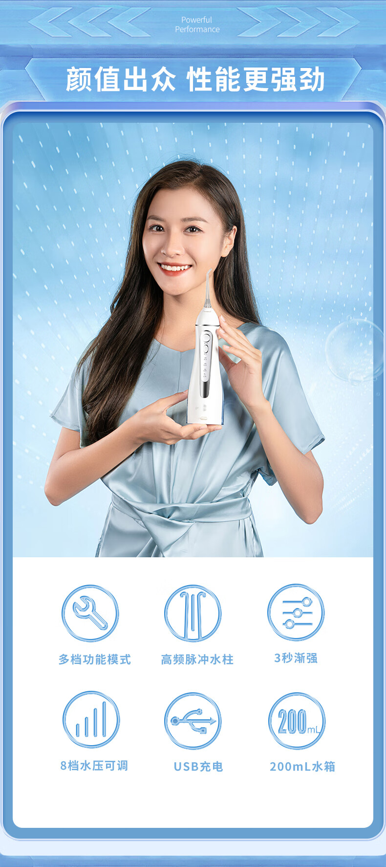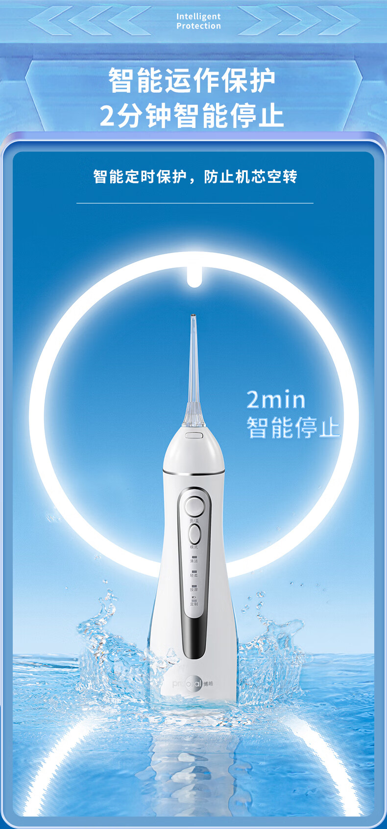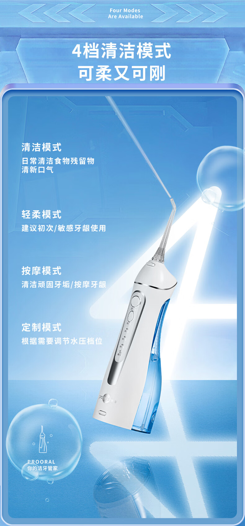 博皓(prooral)冲牙器便携式牙齿冲洗器家用洗牙器洁牙器水牙线正畸专用清洁器牙垢去除工具 送情侣朋友 5025 晶莹透