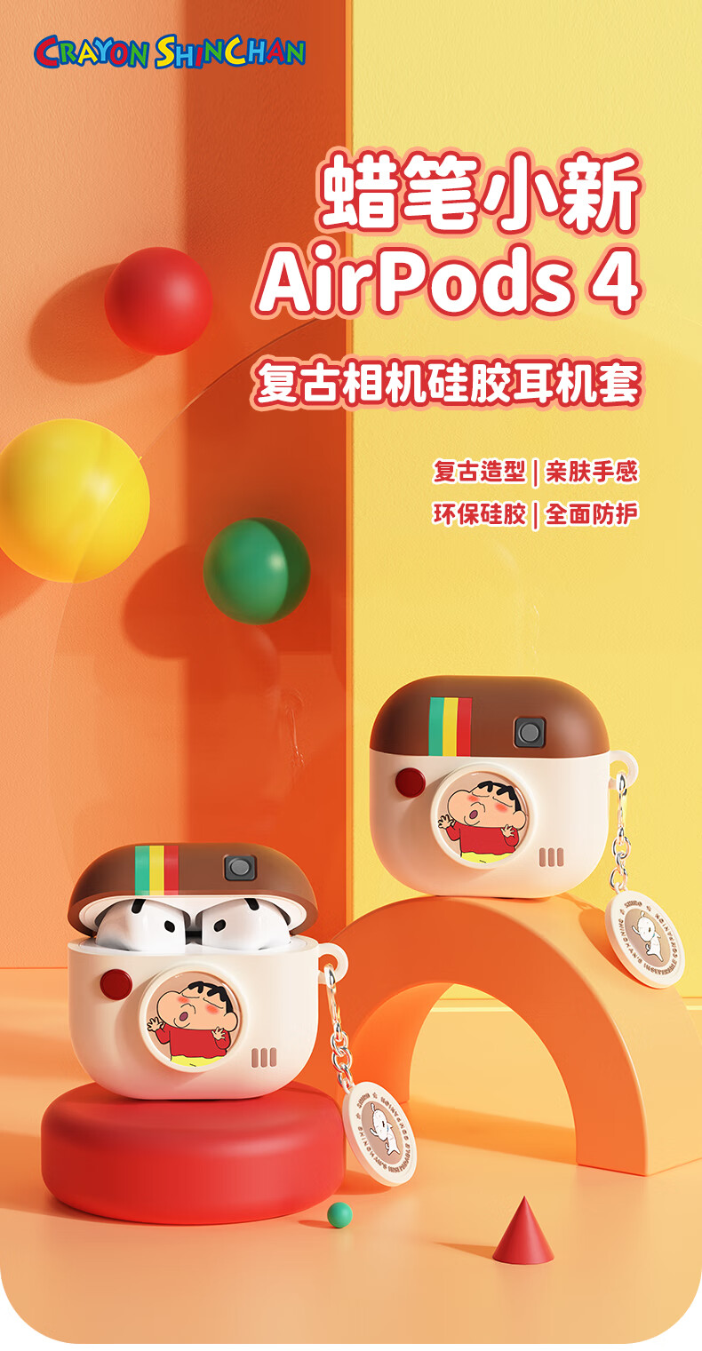 ROCK蜡笔小新适用Airpods4保护套Airpods四代耳机套保护壳Apple耳机壳全包硅胶防摔卡通可爱软壳男女