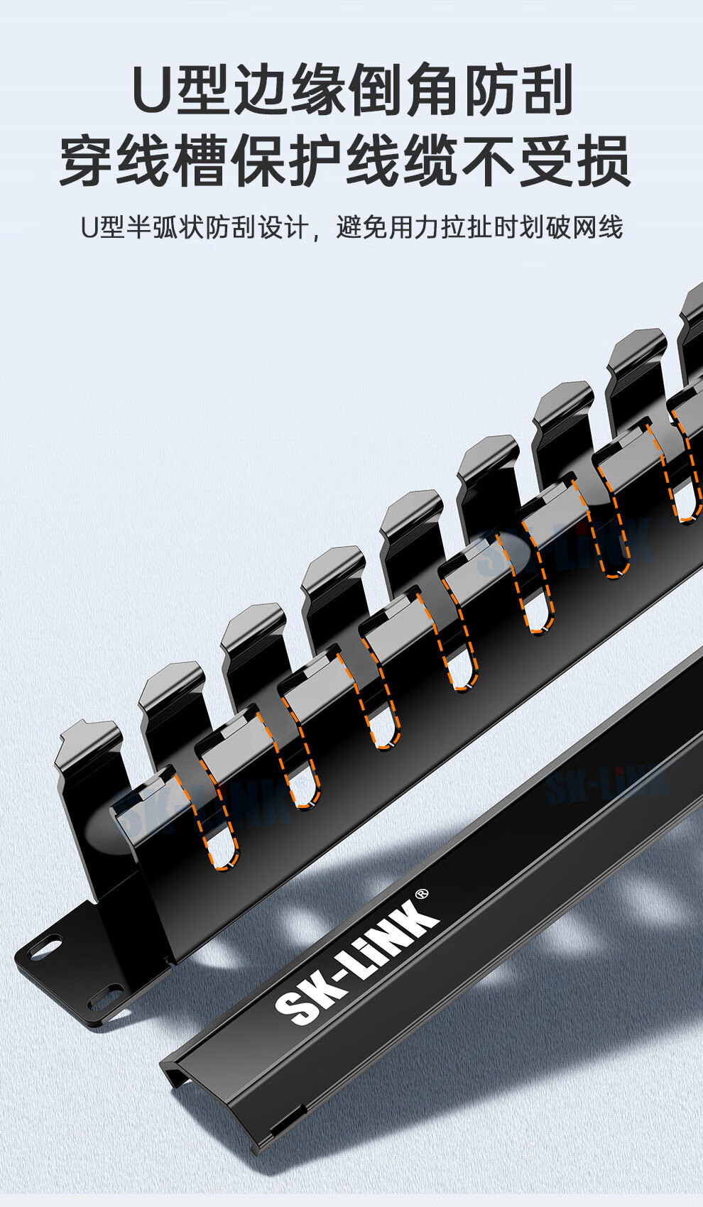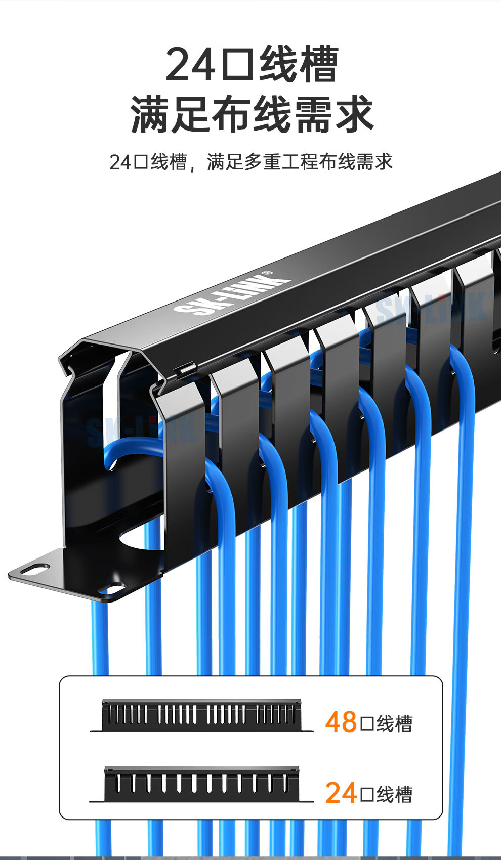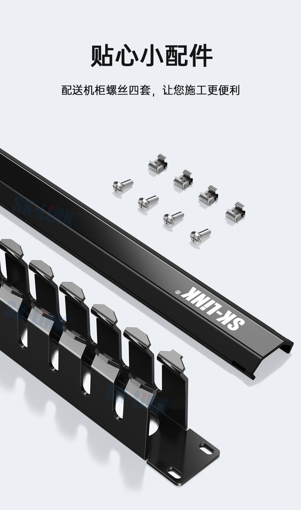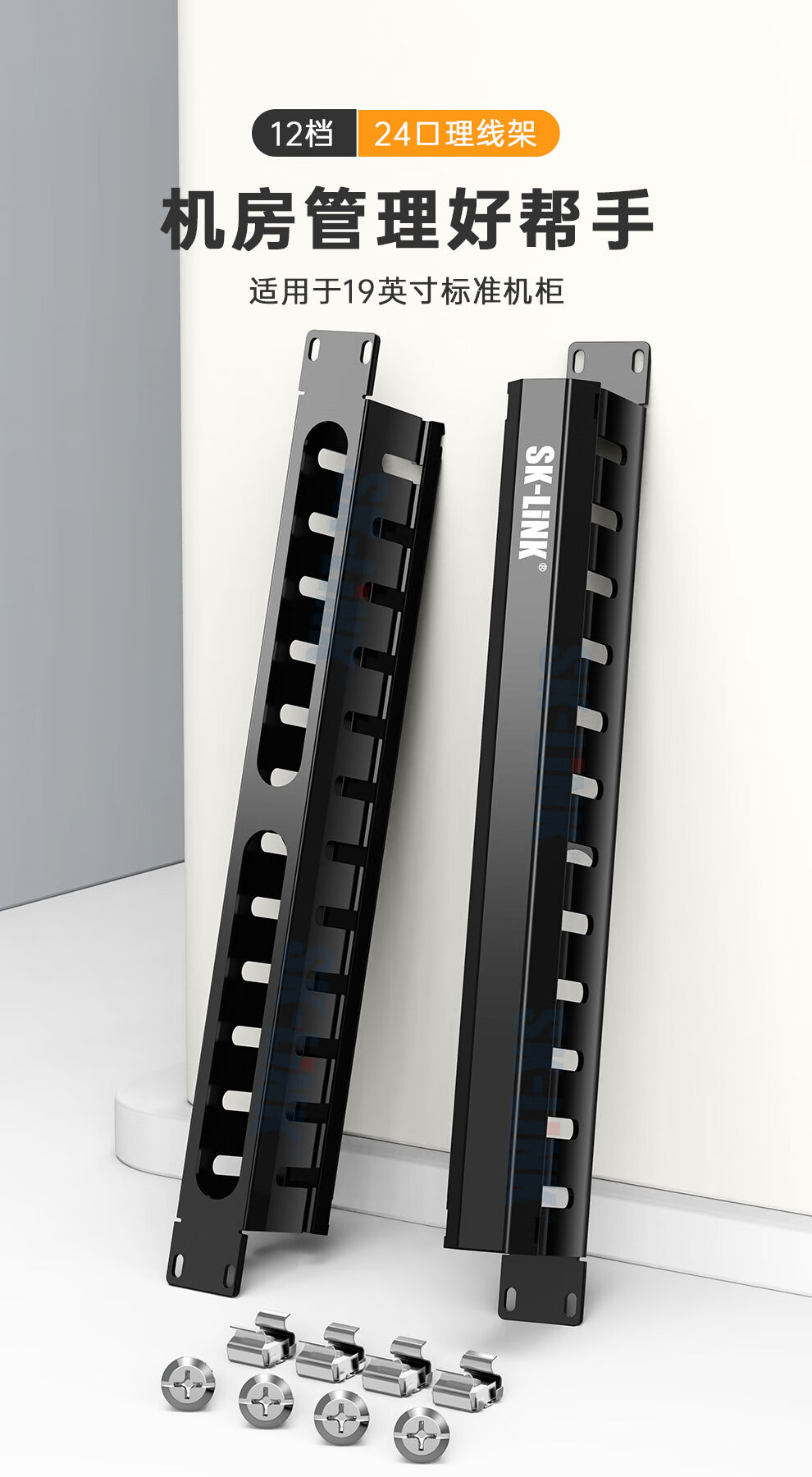 SK-LINK 理线架12档24口 19英寸1U机架式工程加厚金属网络机柜理线器成品网线跳线梳理器SK-L24