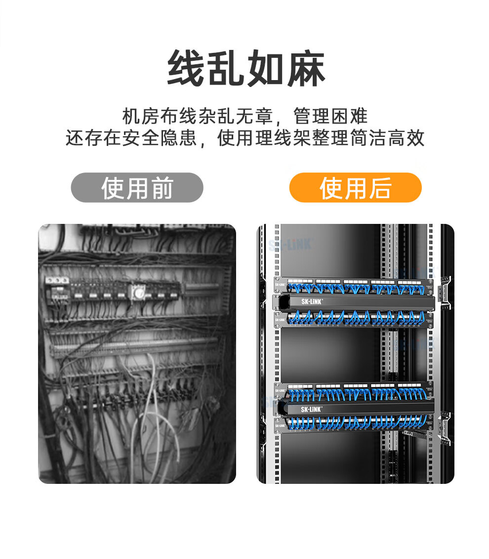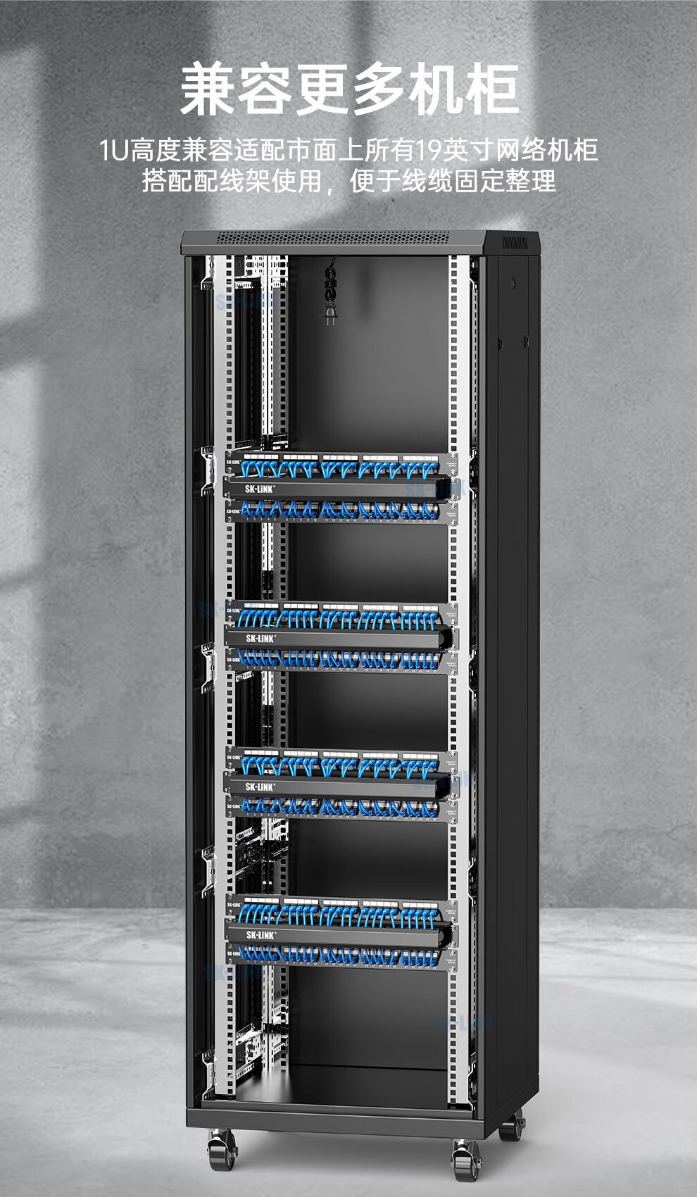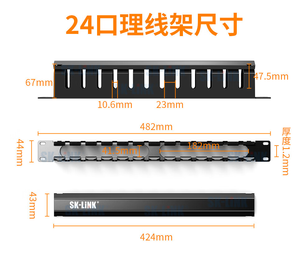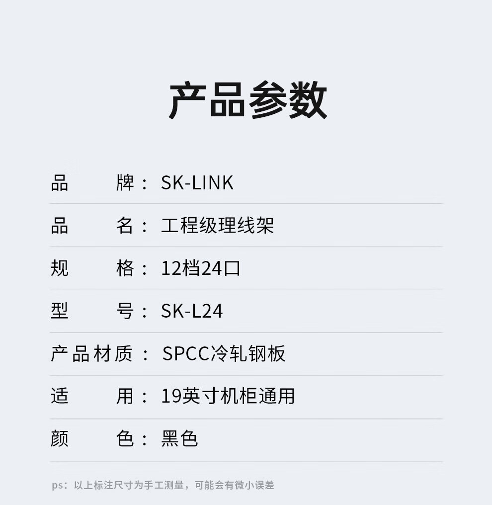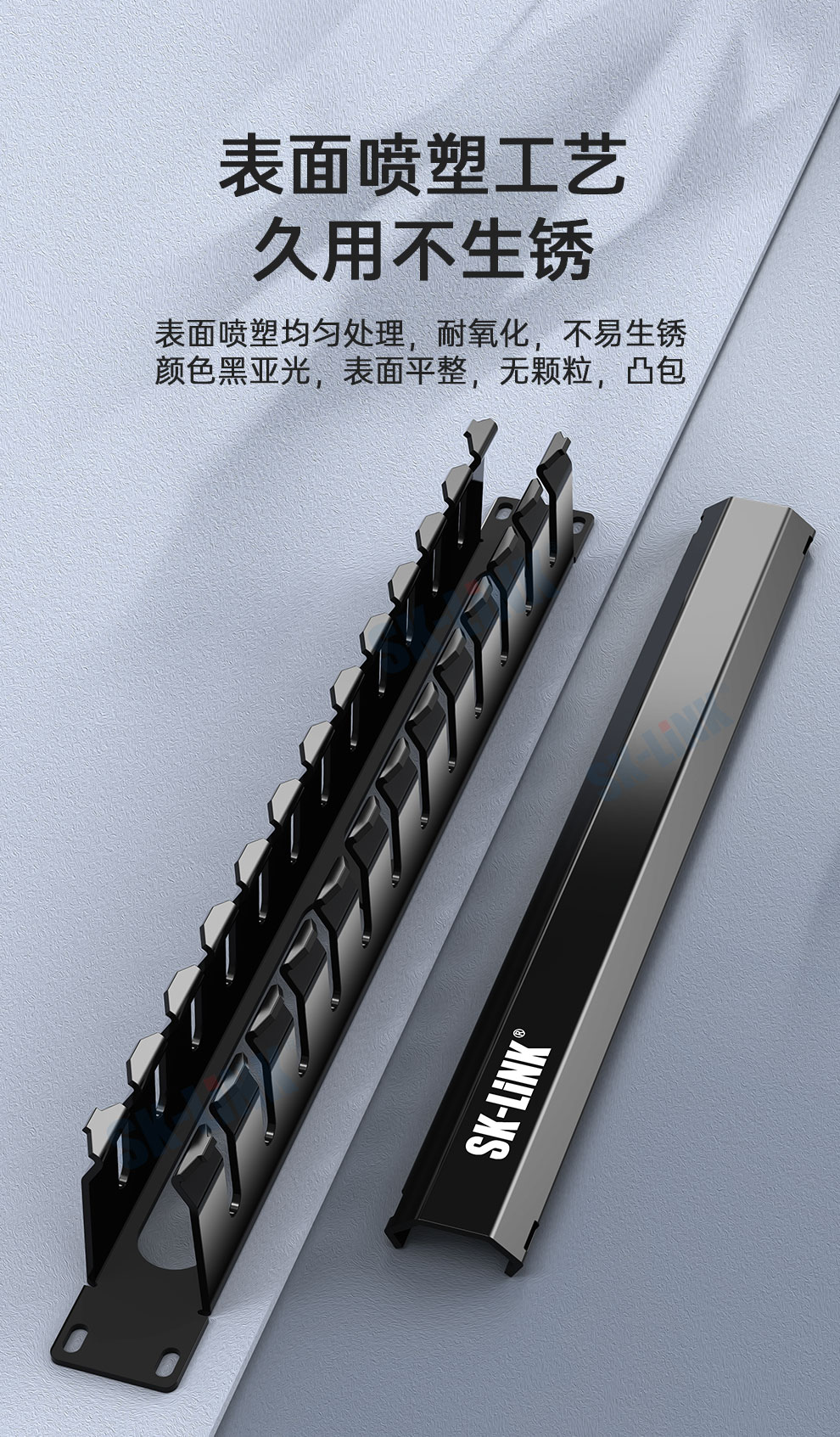 SK-LINK 理线架12档24口 19英寸1U机架式工程加厚金属网络机柜理线器成品网线跳线梳理器SK-L24