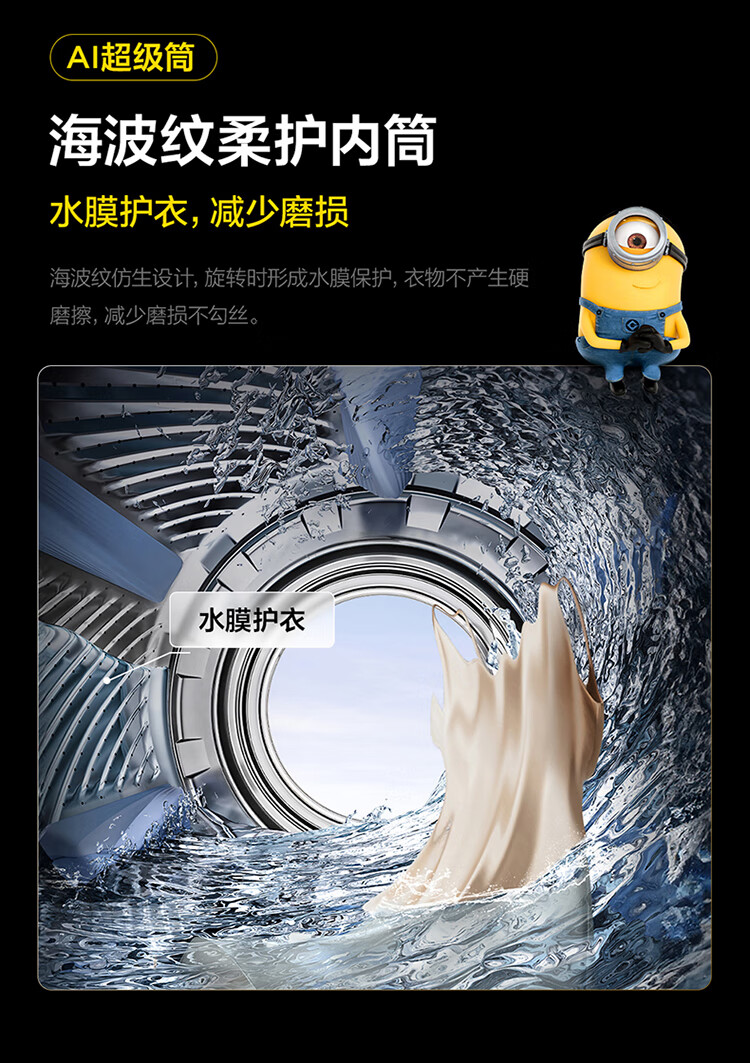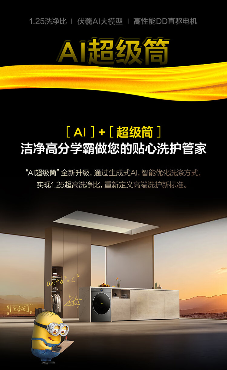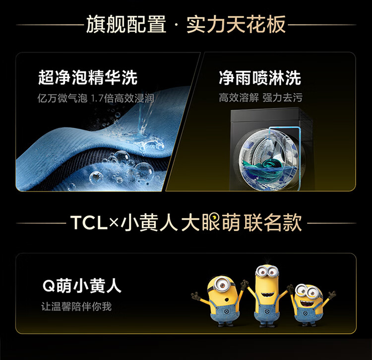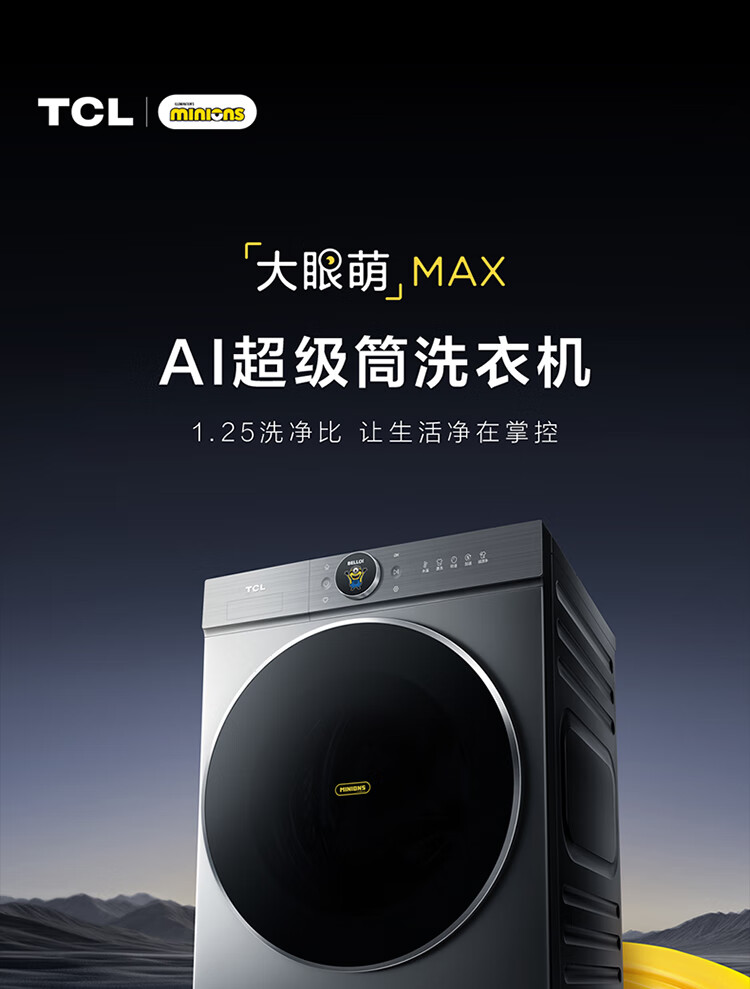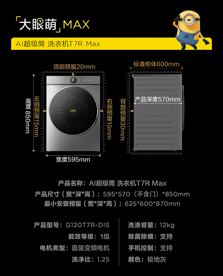 TCL 小黄人·大眼萌AI超级筒T7R MAX 12公斤DD直驱滚筒洗衣机全自动家用国家补贴以旧换新G120T7R-DIS