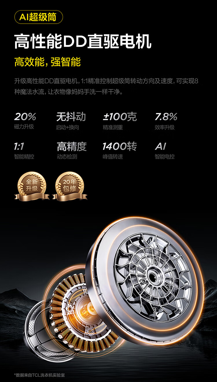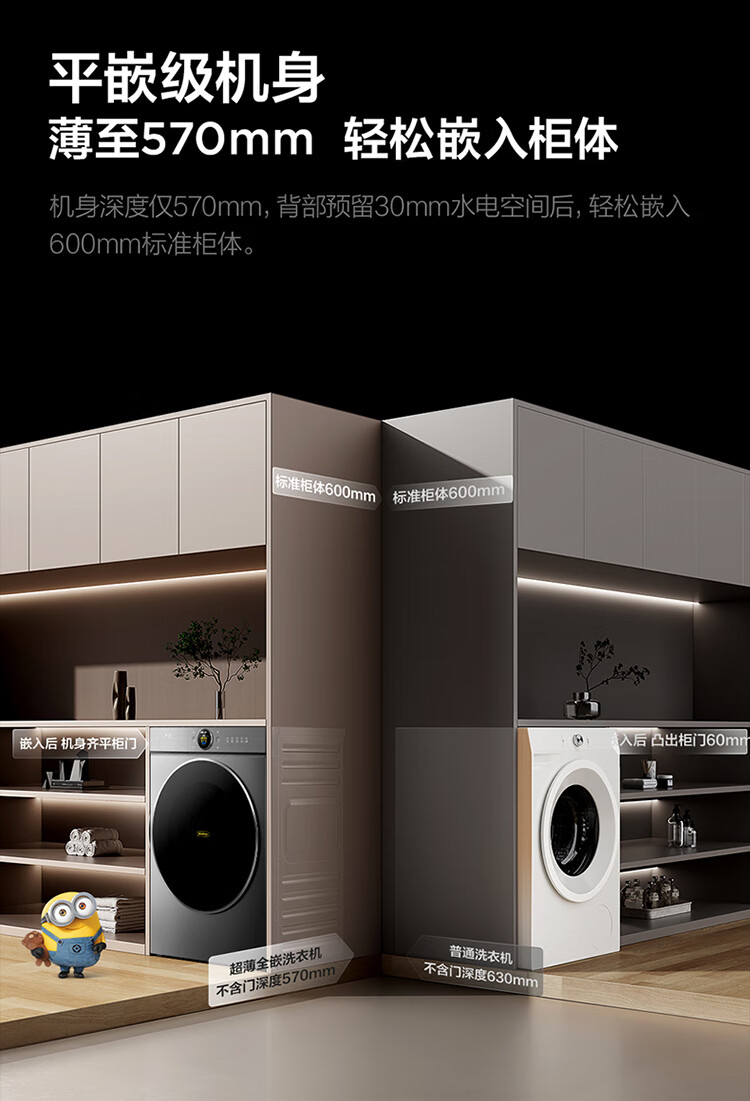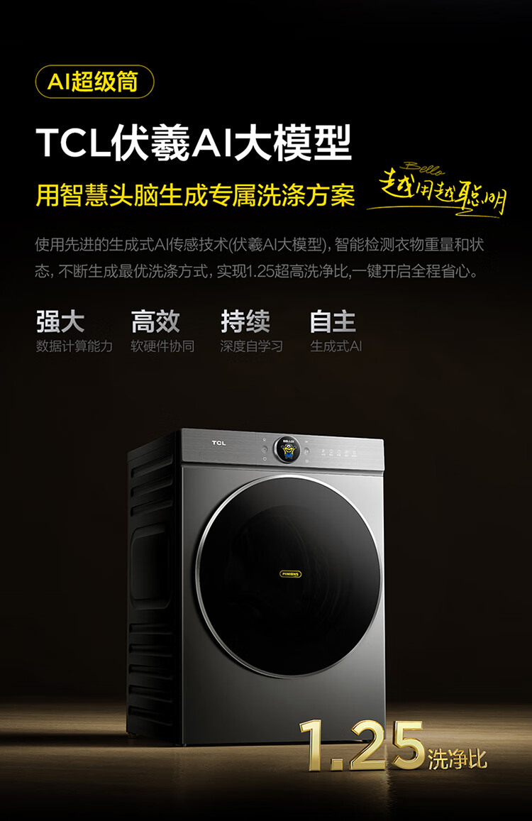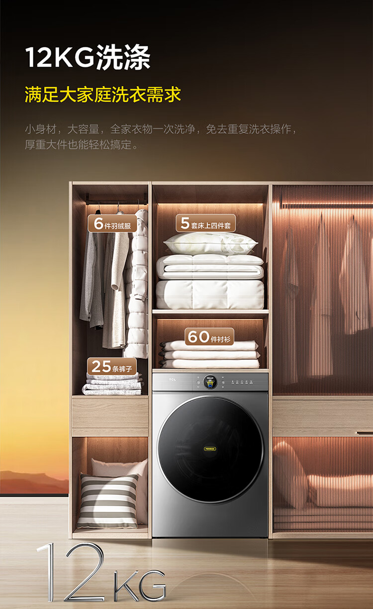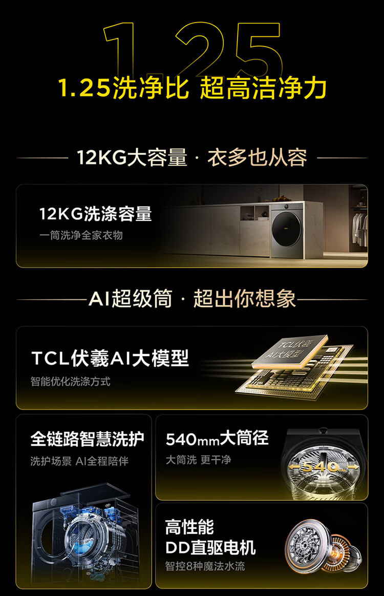 TCL 小黄人·大眼萌AI超级筒T7R MAX 12公斤DD直驱滚筒洗衣机全自动家用国家补贴以旧换新G120T7R-DIS