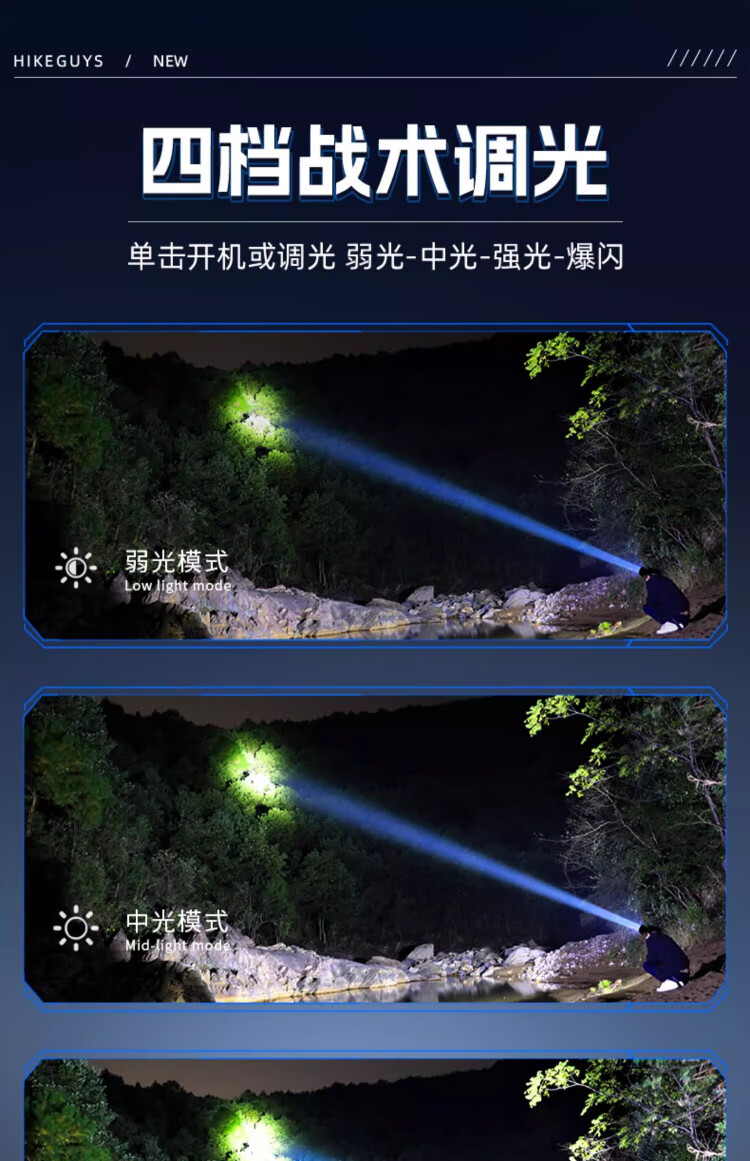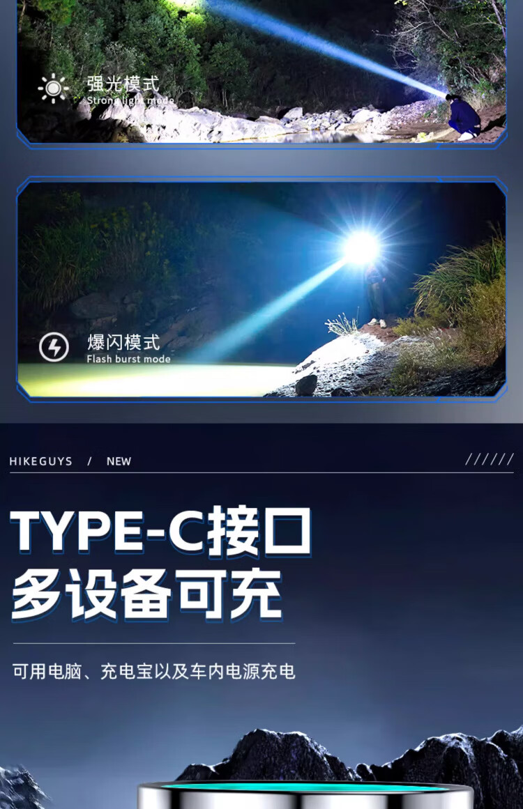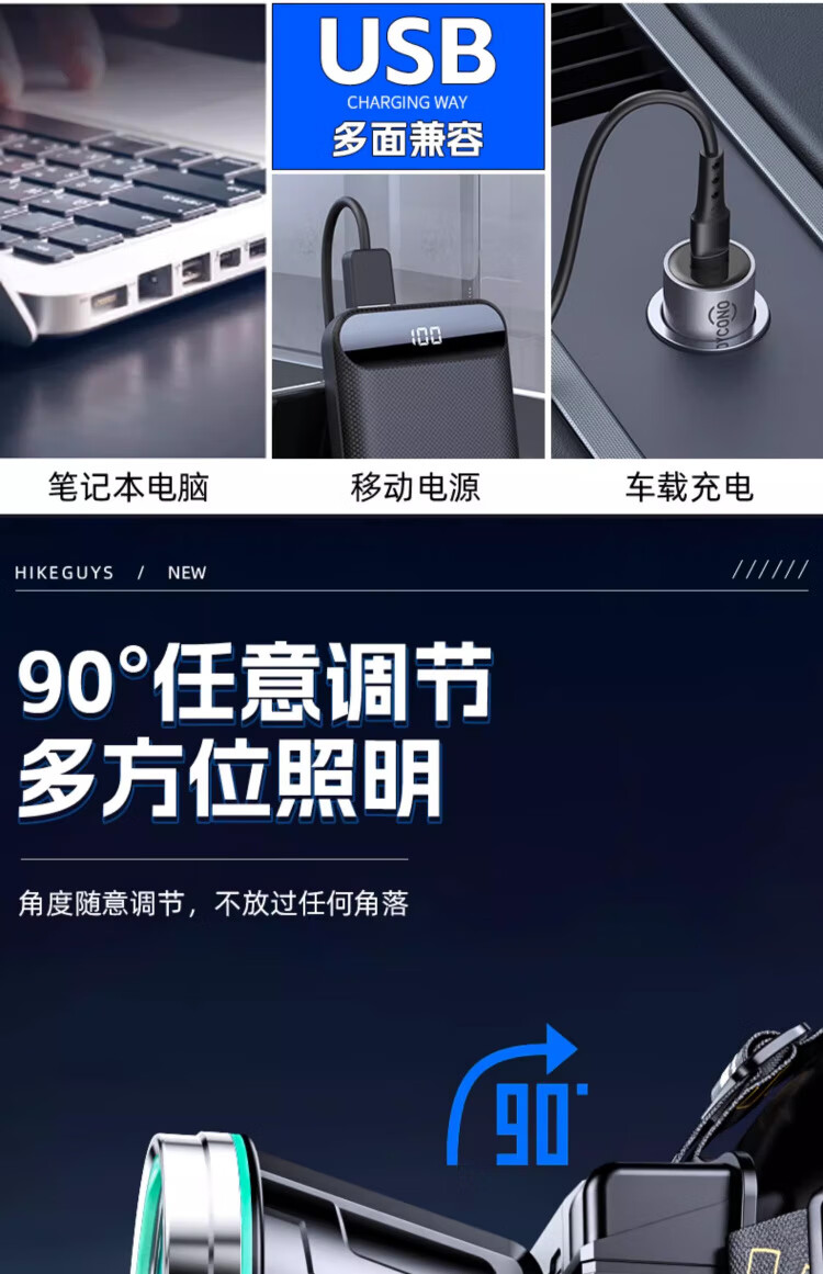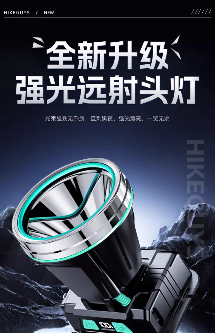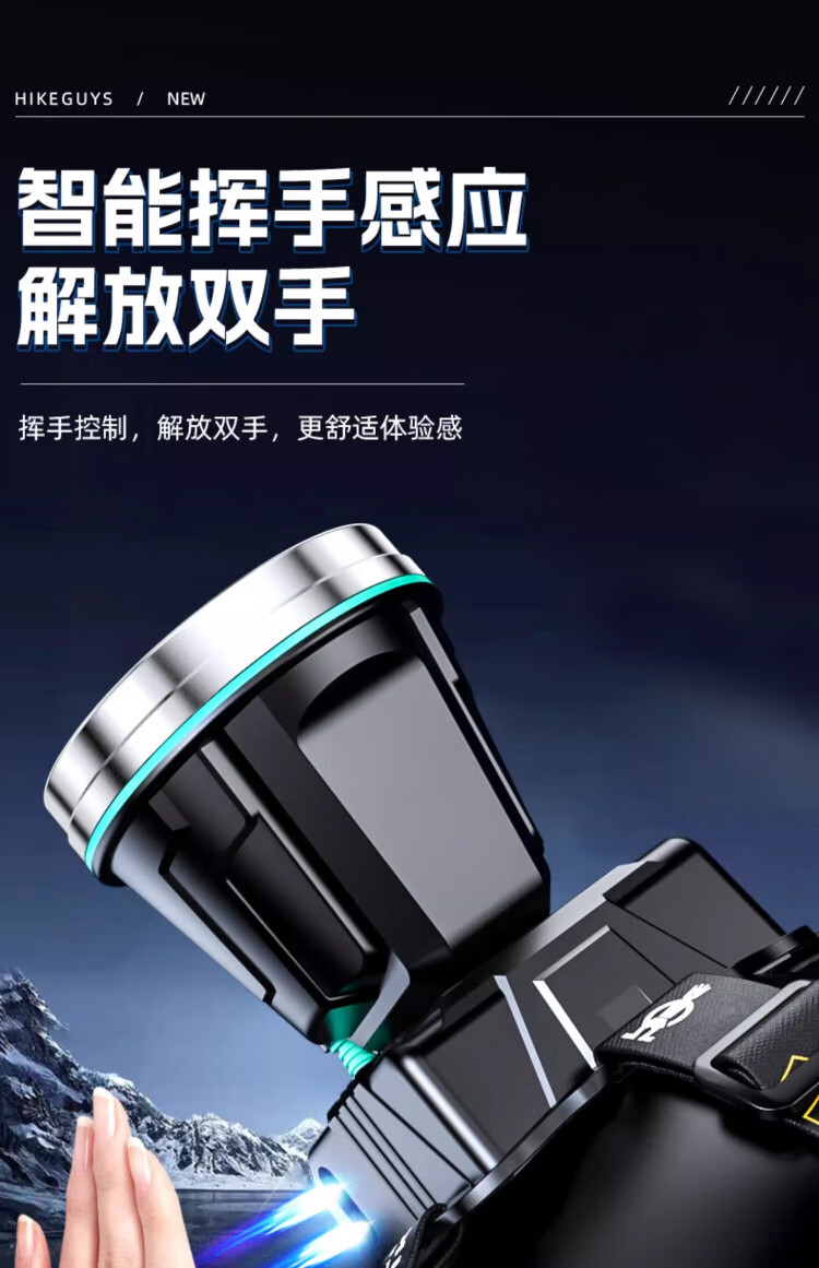 哲初德国头灯强光超长续航72小时50000w防水60小时户外头戴矿灯钓鱼军 1200W白光【80小时】 白光