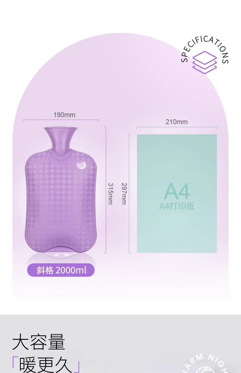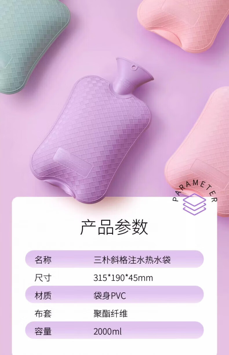 AILUKI日本高端热水袋注水热敷专用大号加厚防爆被窝脚手暖水袋暖肚子 斜格2L【樱花粉】送纯色布套 售后有保障「享购物无忧]