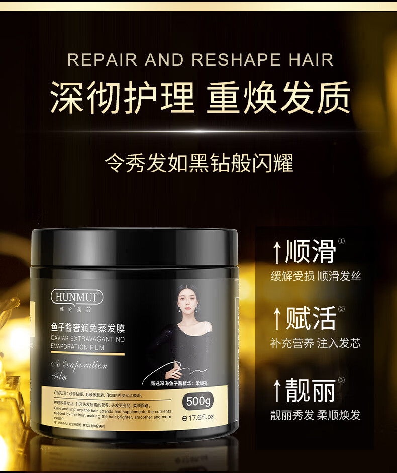 韩伦美羽氨基酸蛋白发膜烫染分叉修护改善毛躁干枯养护护发素女焗油膏精油 500g 润免蒸发膜 1瓶