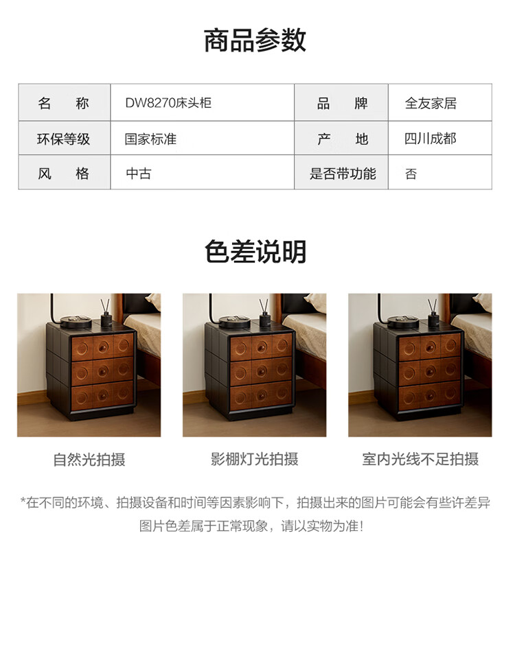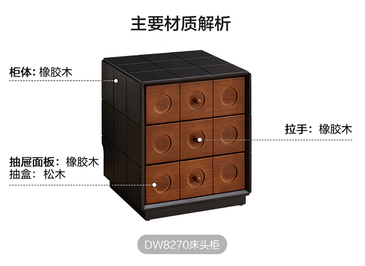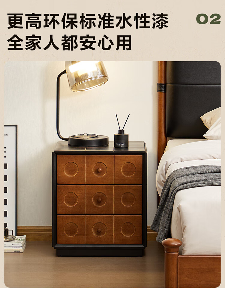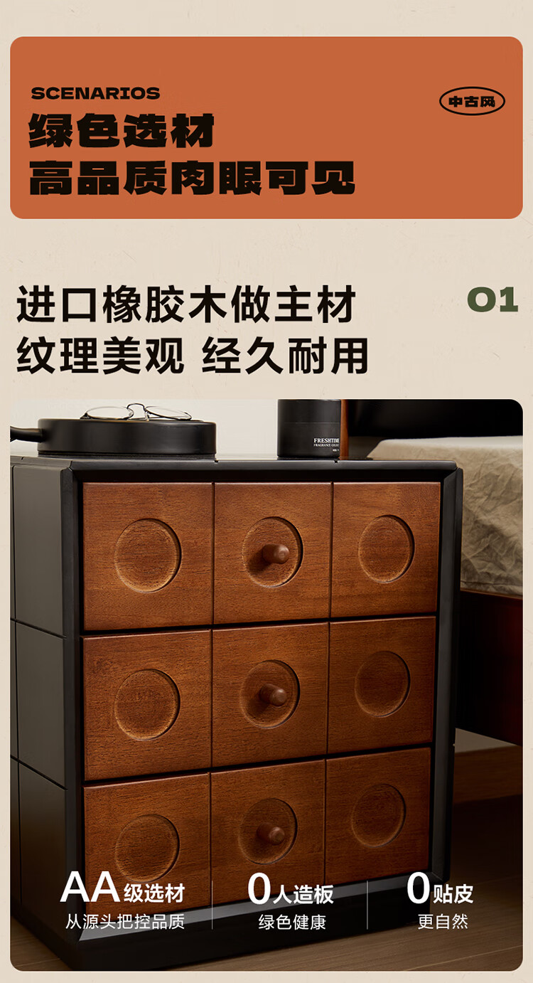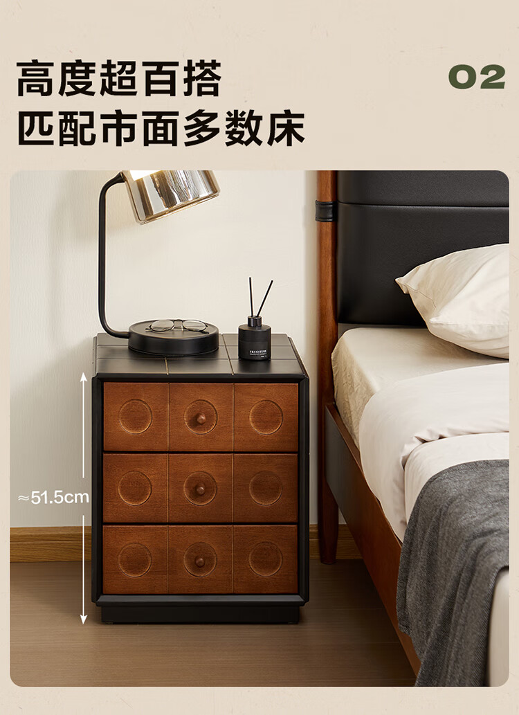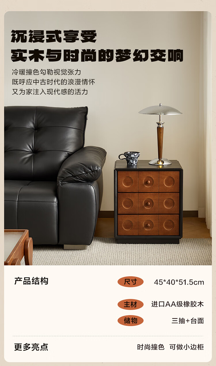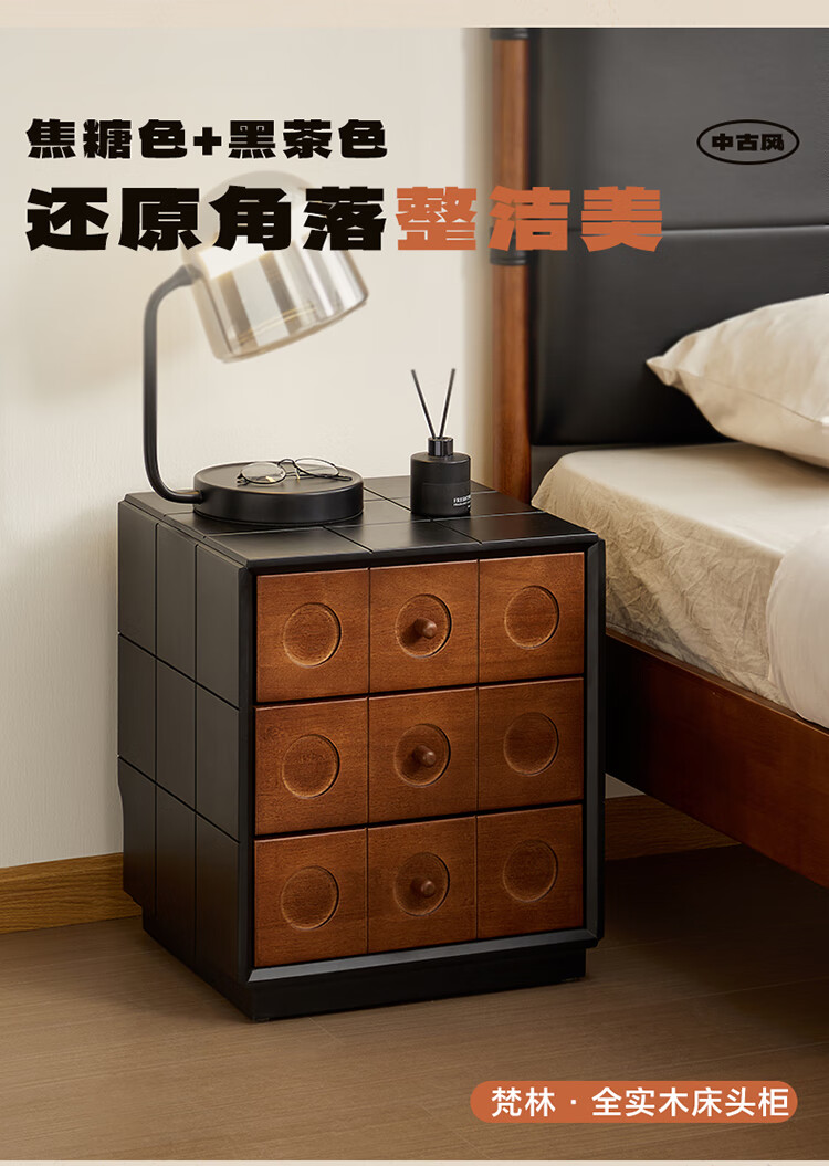 全友家居中古风全实木床头柜卧室2025新款收纳储物柜沙发边柜小桌子 【橡胶木】床头柜