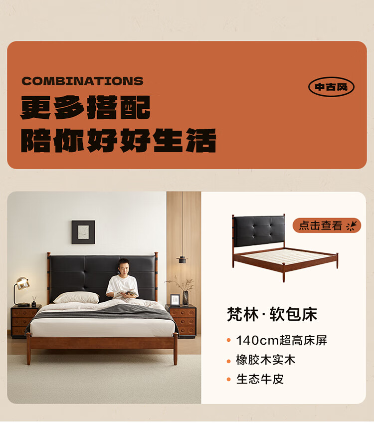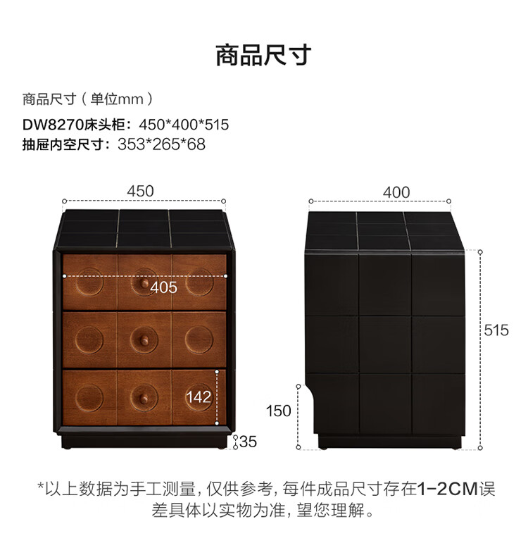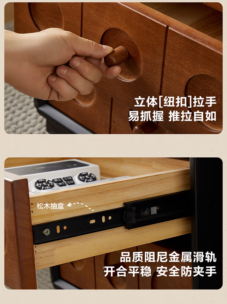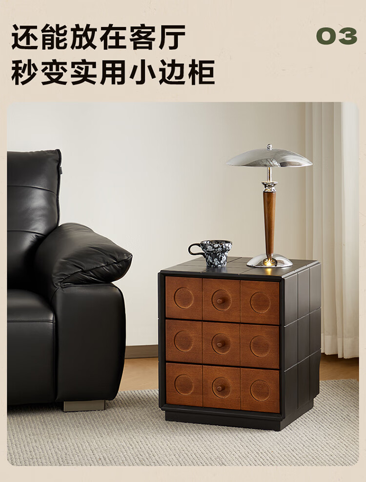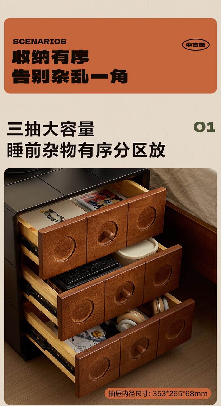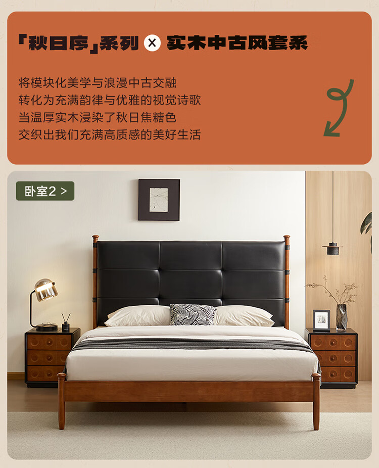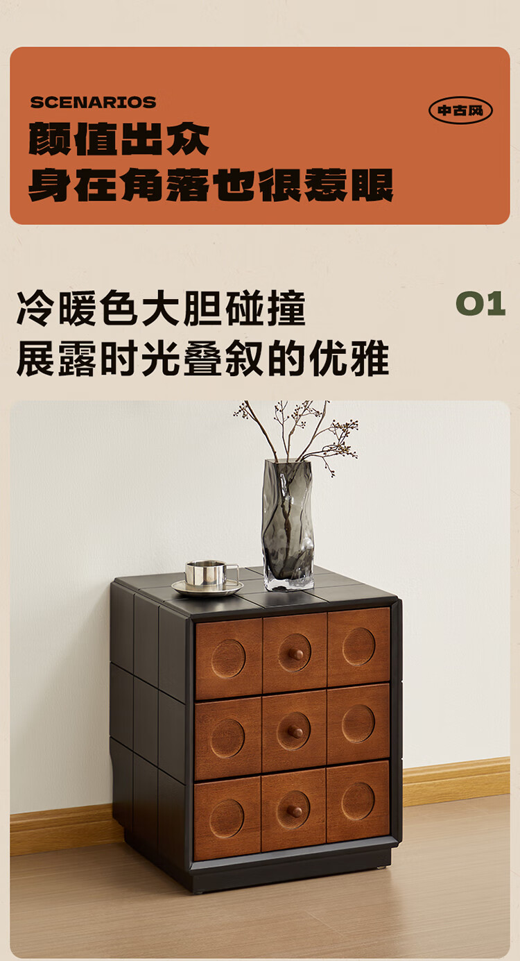 全友家居中古风全实木床头柜卧室2025新款收纳储物柜沙发边柜小桌子 【橡胶木】床头柜