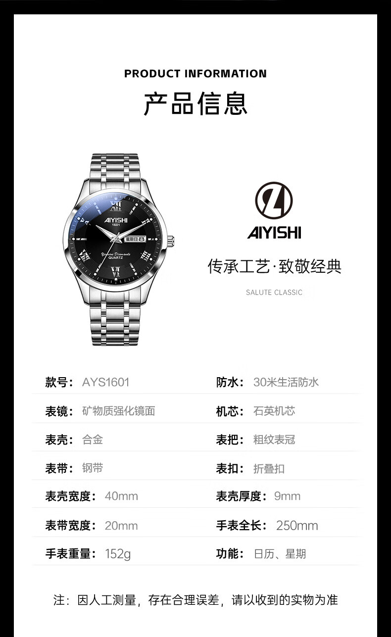 爱依士(AIYISHI)AIYISHI官网手表男士全自动机械表防水男士腕表