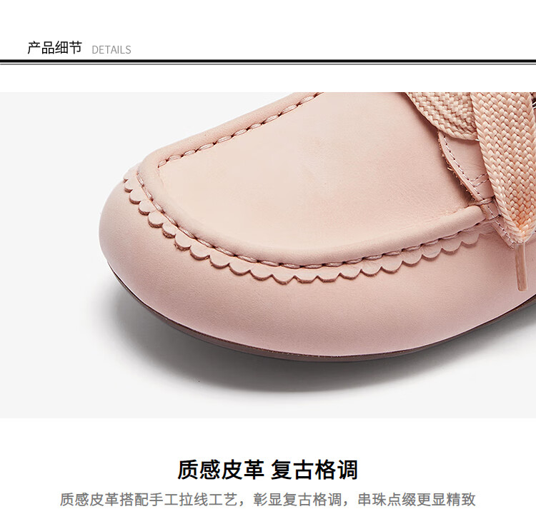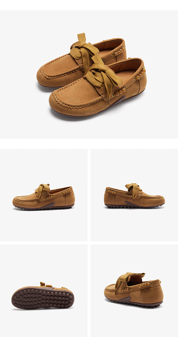 莱尔斯丹2025秋季新款复古软底豆豆鞋一脚蹬舒适平底乐福单鞋女6T21501 摩卡棕 TAN 37