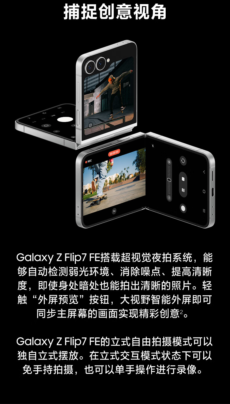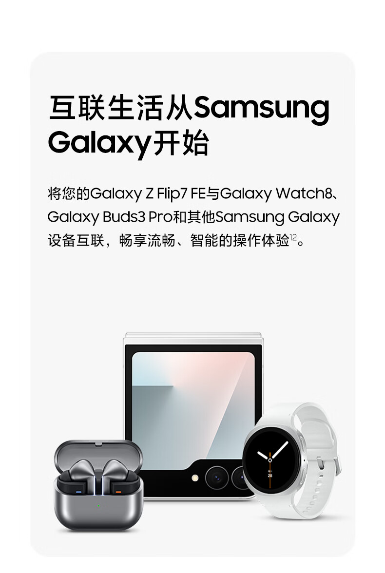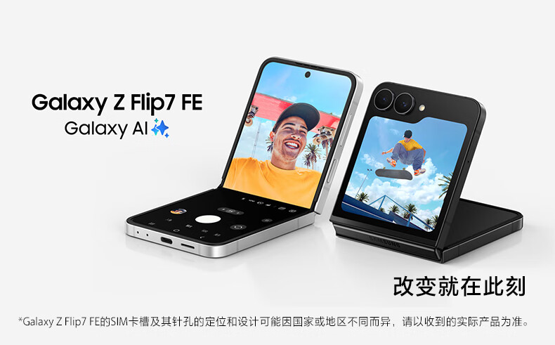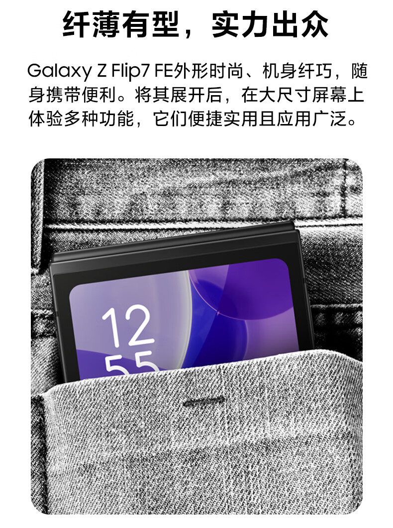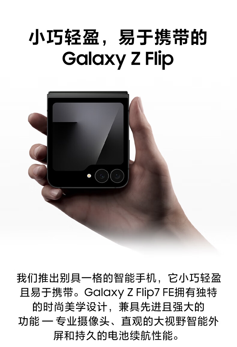 三星Samsung Galaxy Z Flip7 FE 折叠屏手机 大视野智能外屏 5000万像素 AI手机 8GB+256GB 炫熠黑