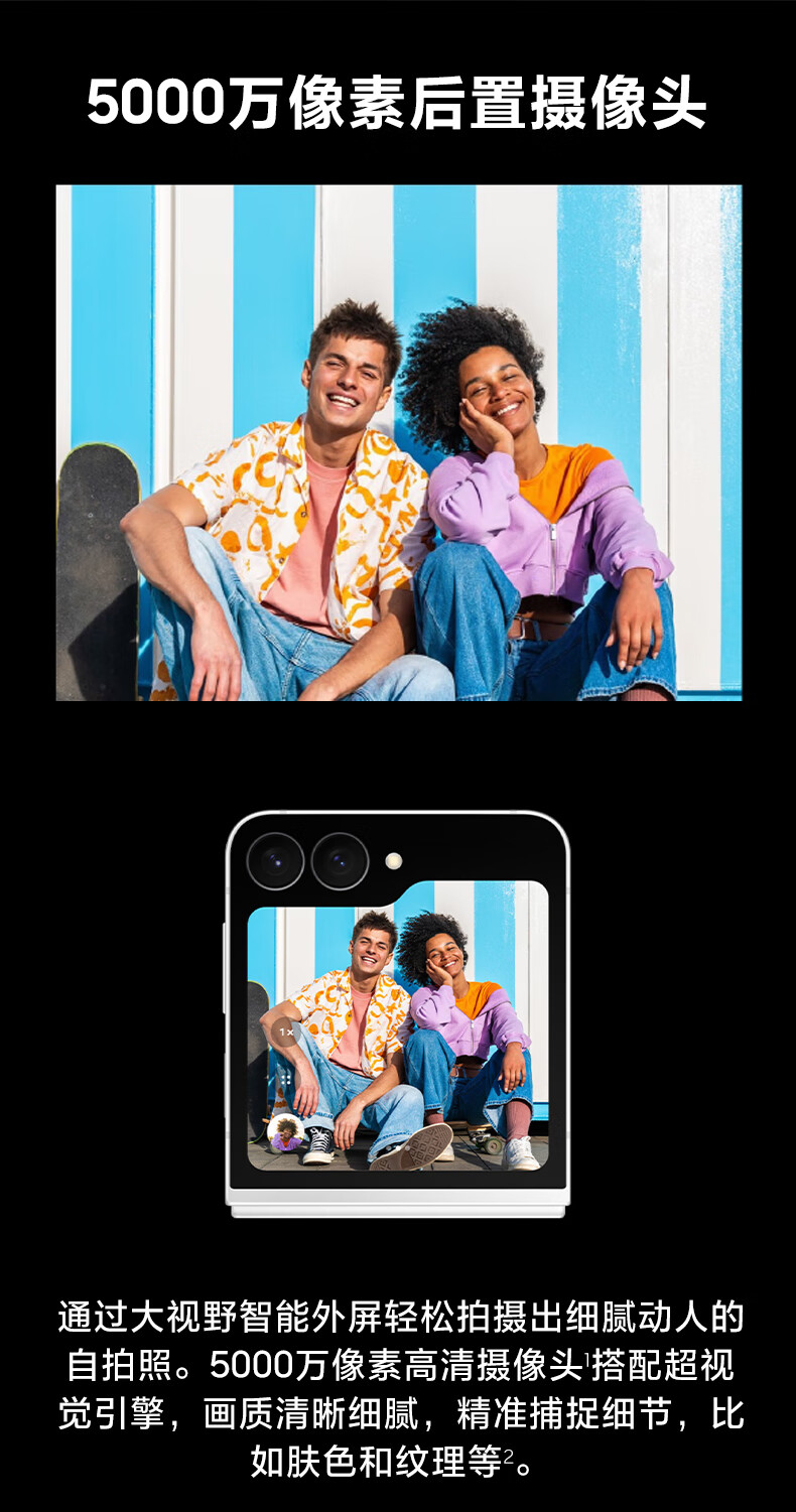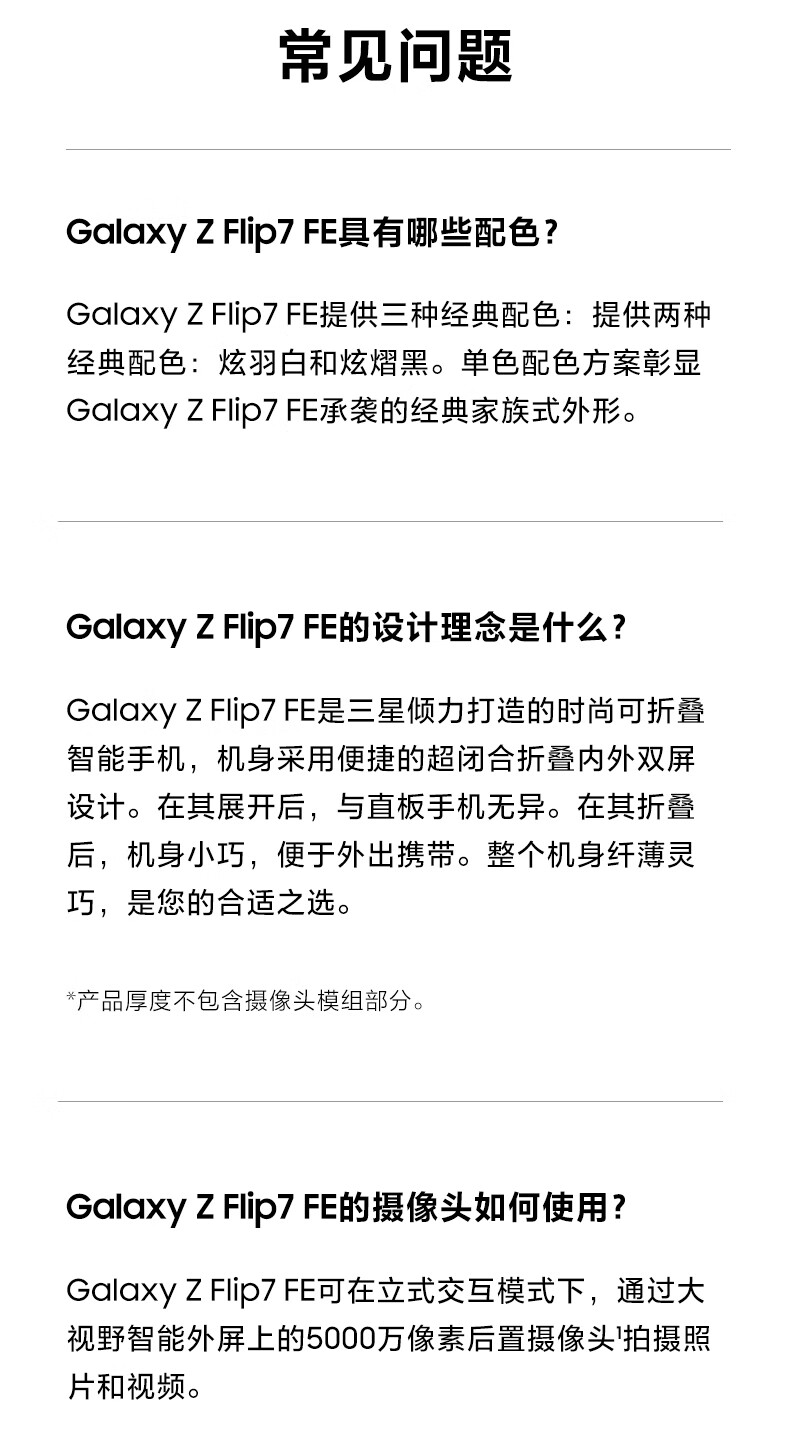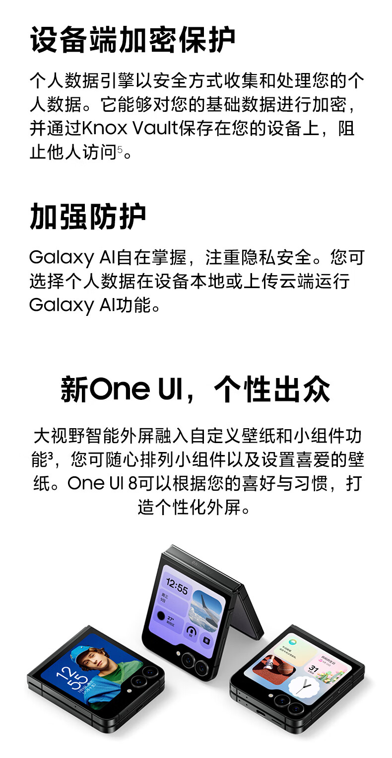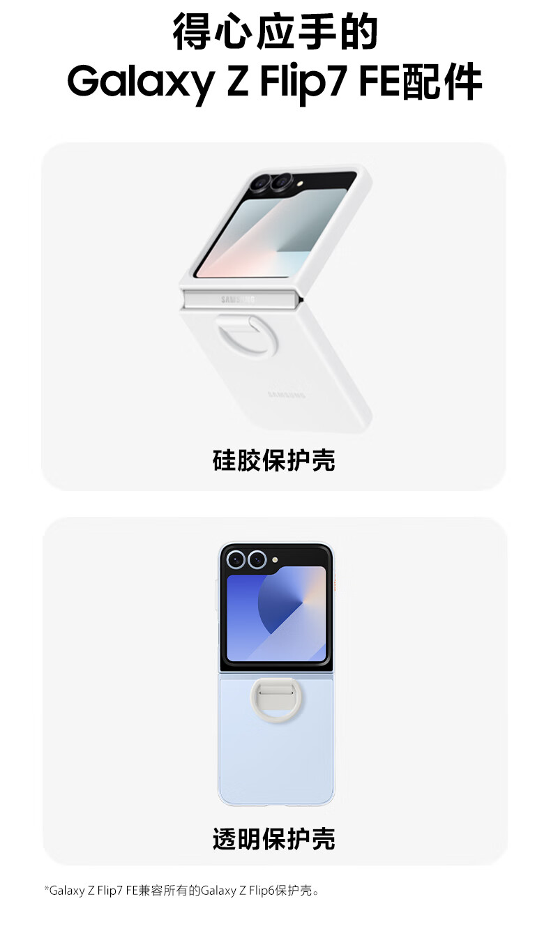 三星Samsung Galaxy Z Flip7 FE 折叠屏手机 大视野智能外屏 5000万像素 AI手机 8GB+256GB 炫熠黑