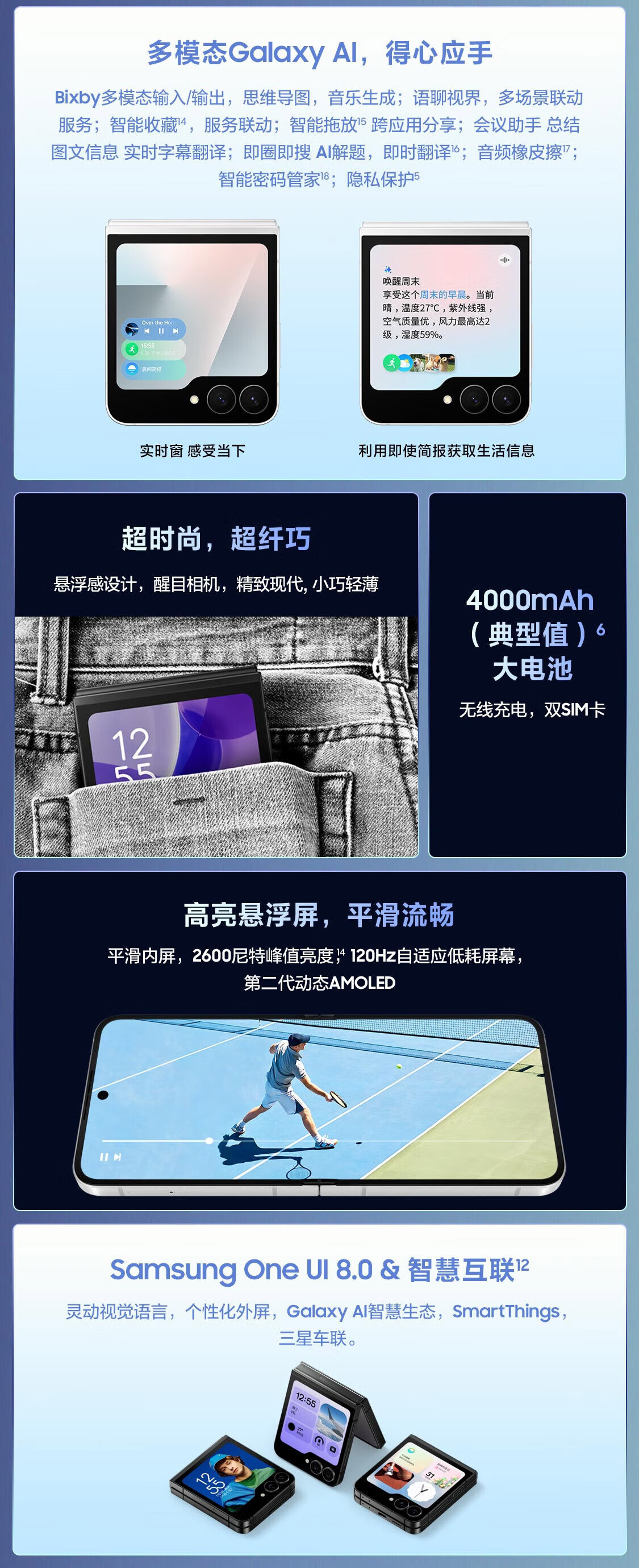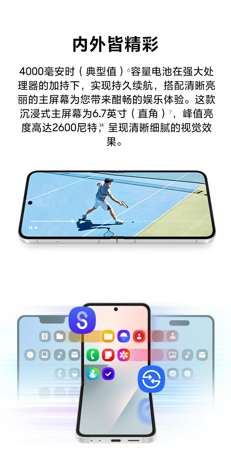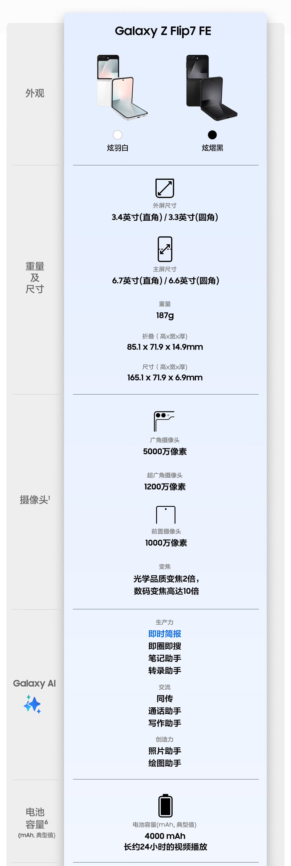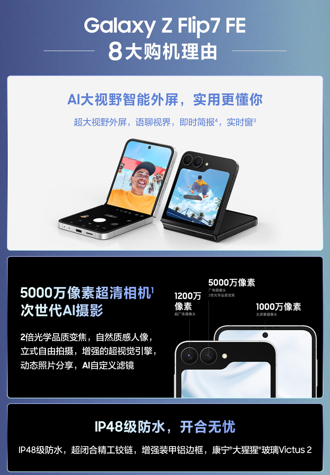 三星Samsung Galaxy Z Flip7 FE 折叠屏手机 大视野智能外屏 5000万像素 AI手机 8GB+256GB 炫熠黑