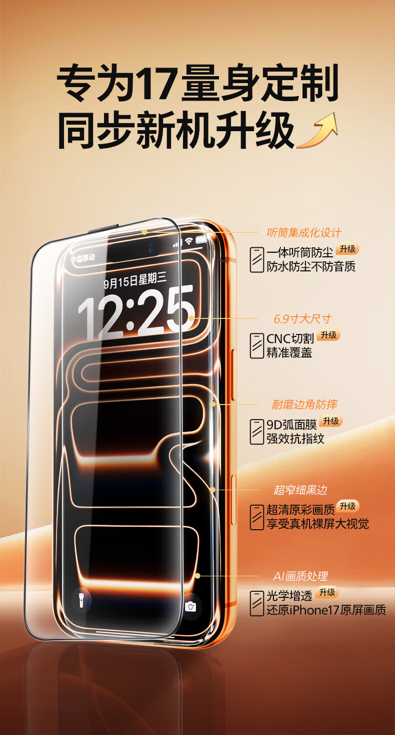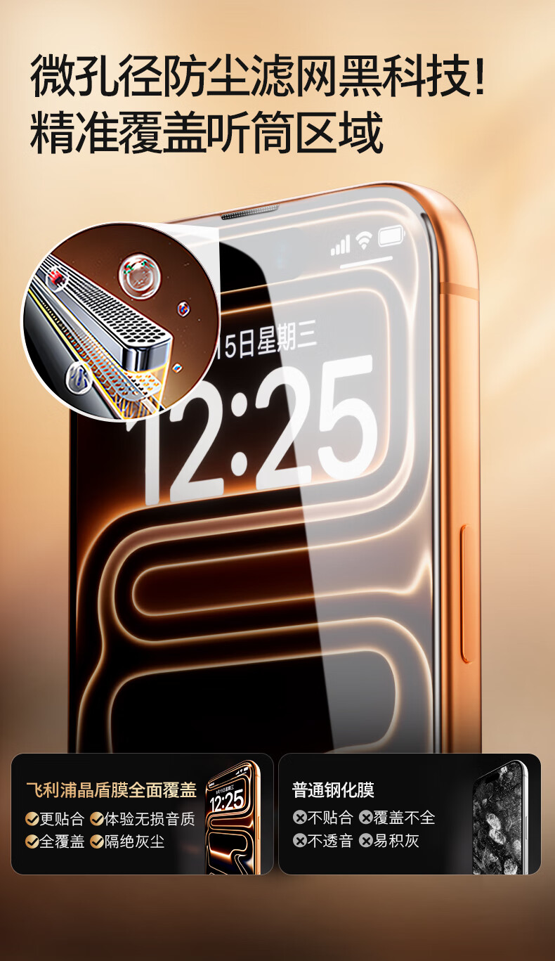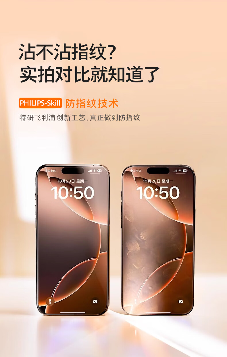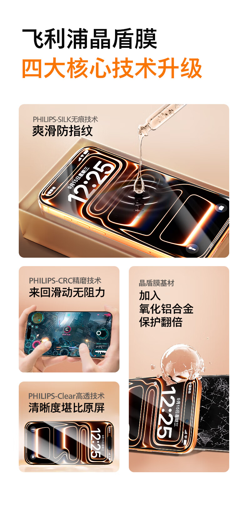 飞利浦【AR增透抗反光】适用苹果17promax钢化膜iphone17promax手机膜AR增透全屏防尘抗指纹无尘仓保护膜