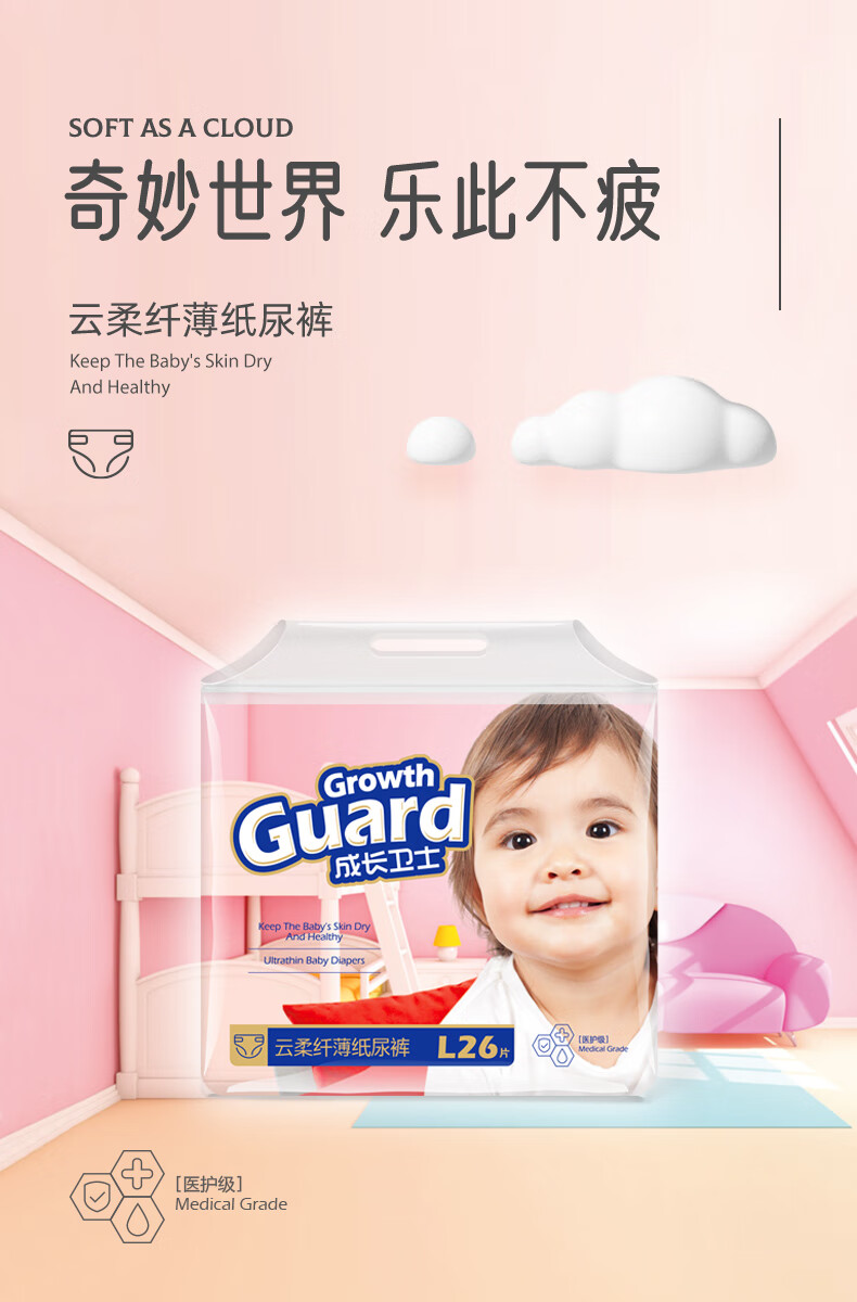 成长卫士 云柔纤薄纸尿裤 婴儿拉拉裤超薄透气纸尿裤男女宝宝新生儿尿不湿 XL码22片 *6包(16-24斤)拉拉裤