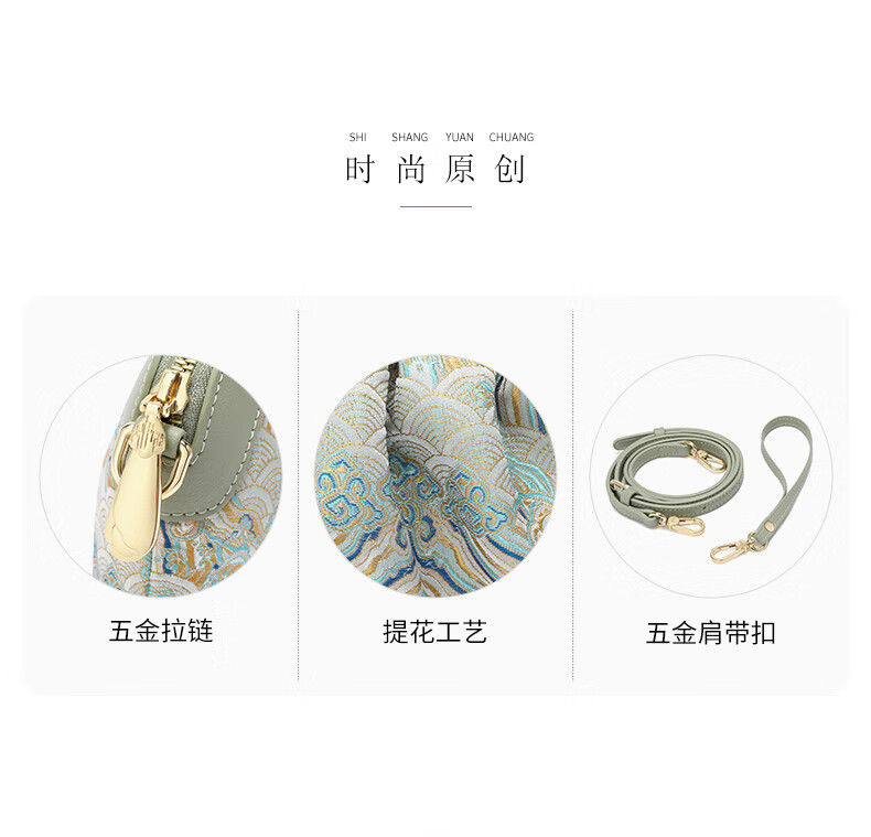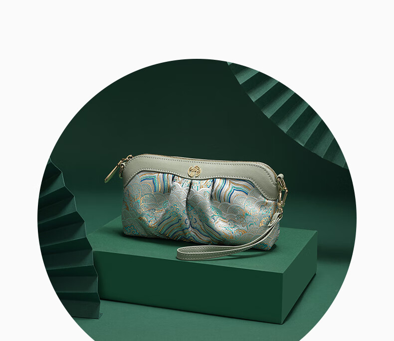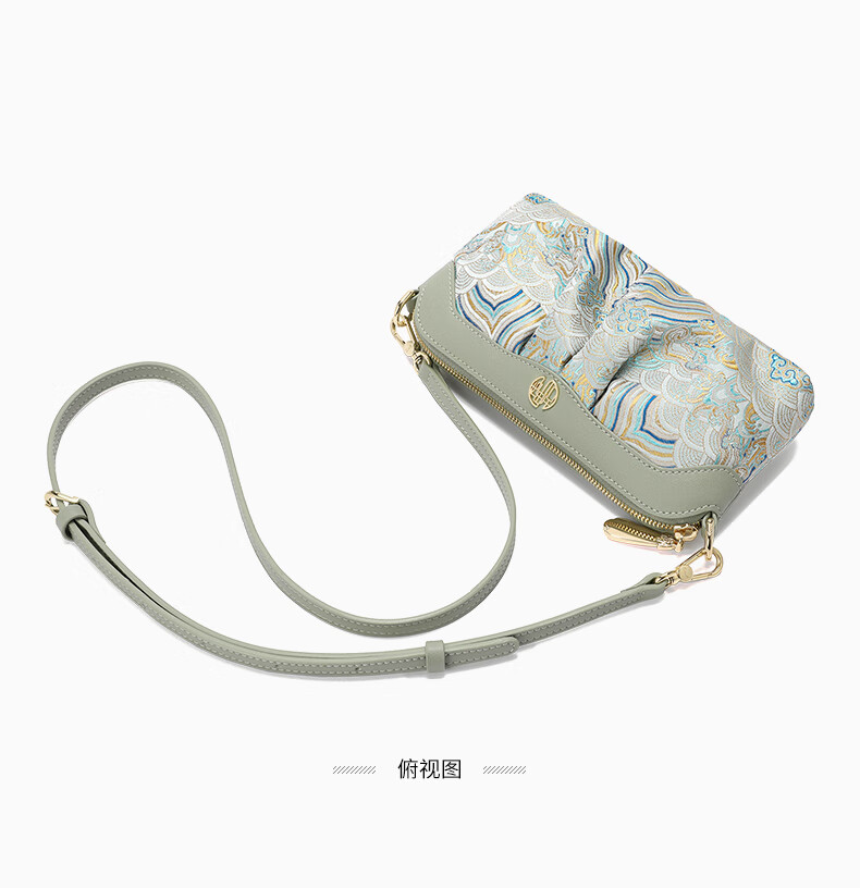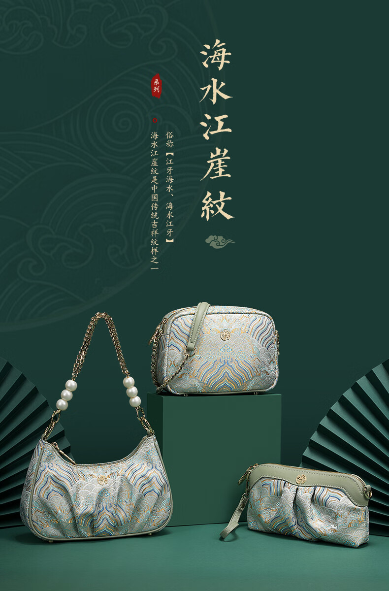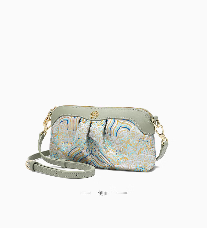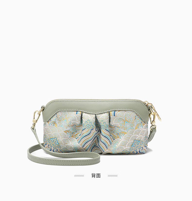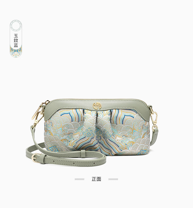 古伊西新中式非遗国风女包放手机包手拿包化妆包女士小包单肩斜挎包布包 玉鈫蓝-海水江崖纹-送礼品袋