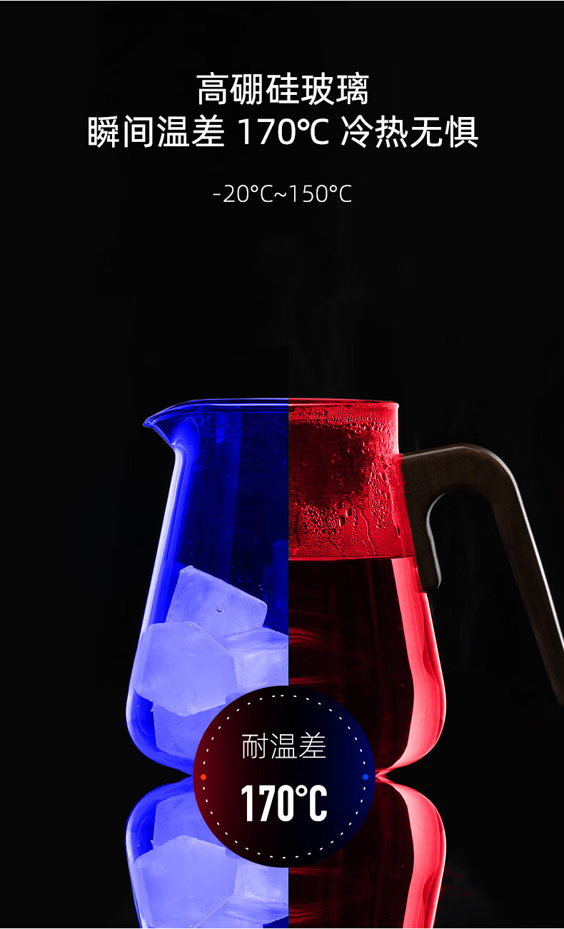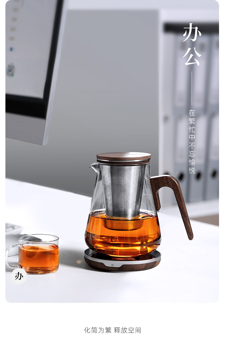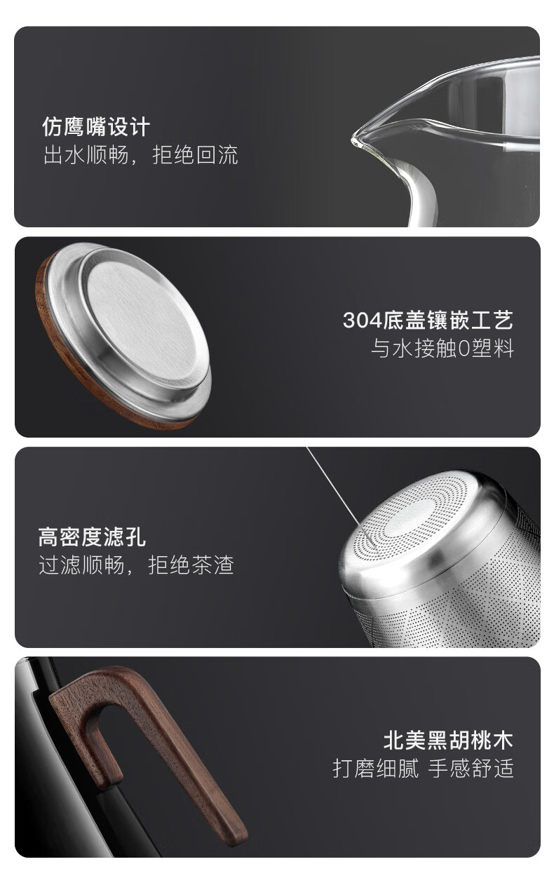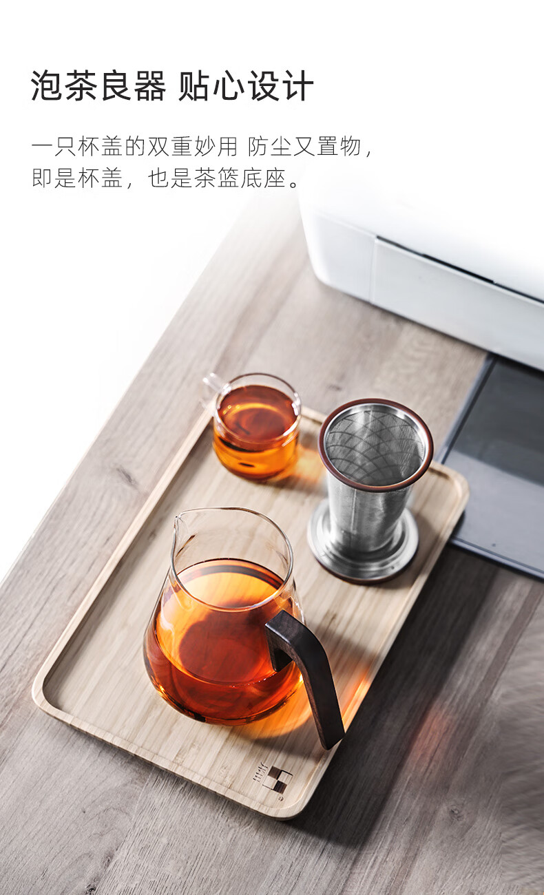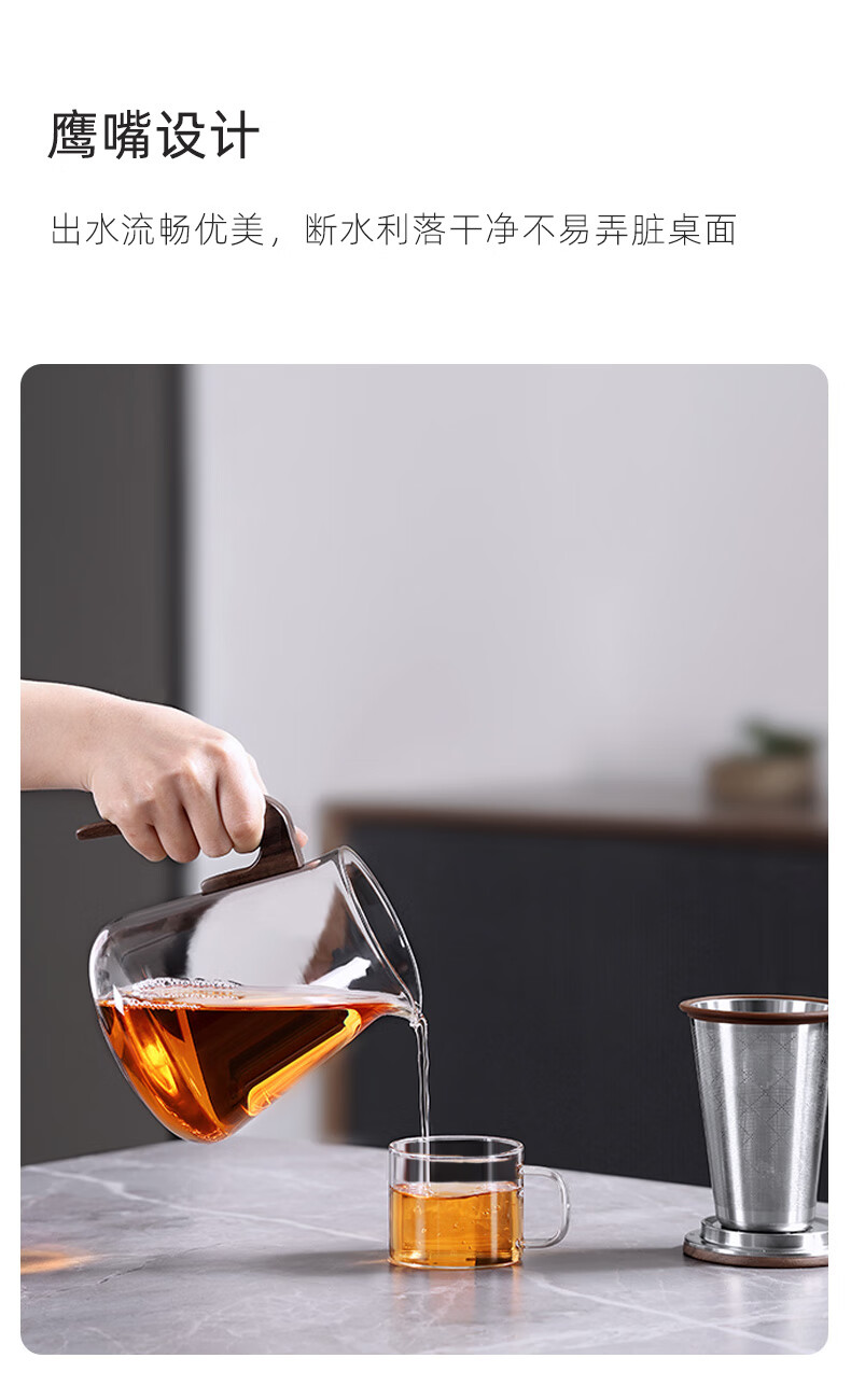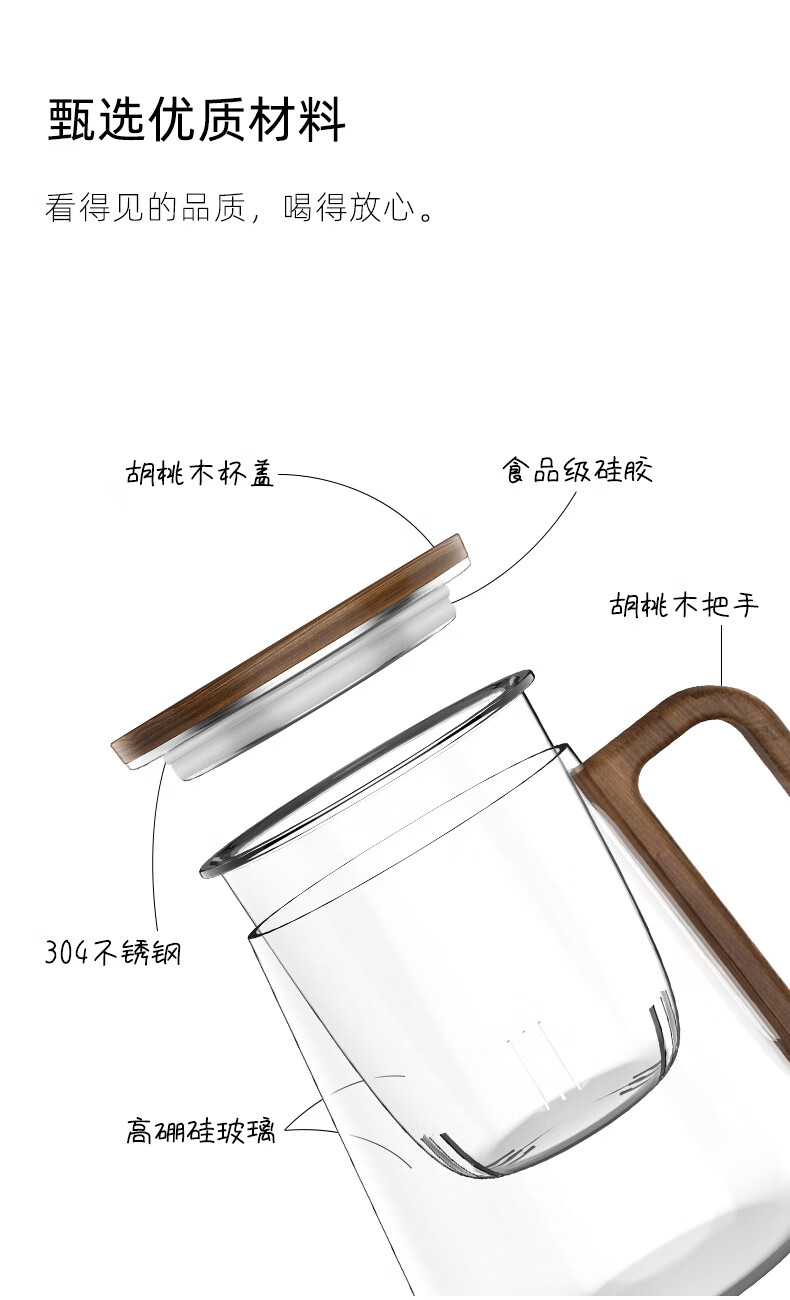 邦田(Bonston)办公室懒人泡茶壶胡桃木把大容量玻璃茶壶不锈钢内胆茶水分离茶具 800ML单壶