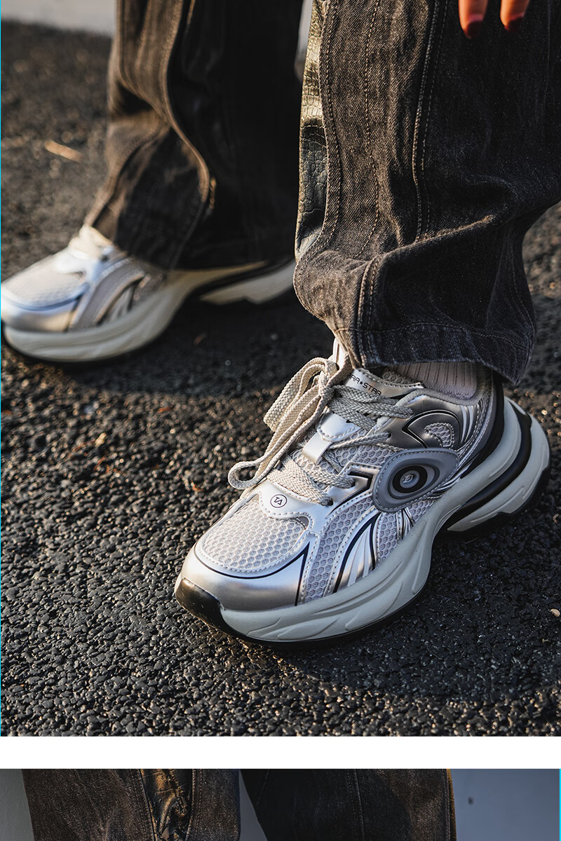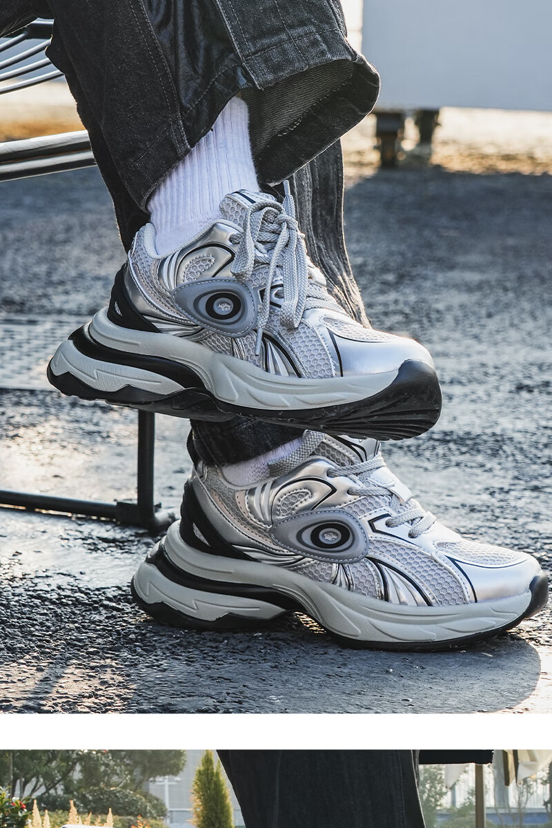 劳拉之星1029银色涡轮鞋老爹鞋复古国潮情侣厚底内增高休闲鞋 白色 37