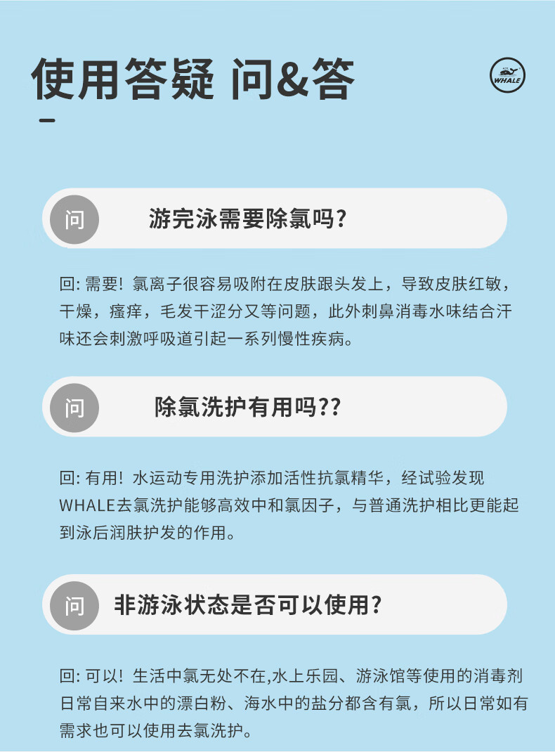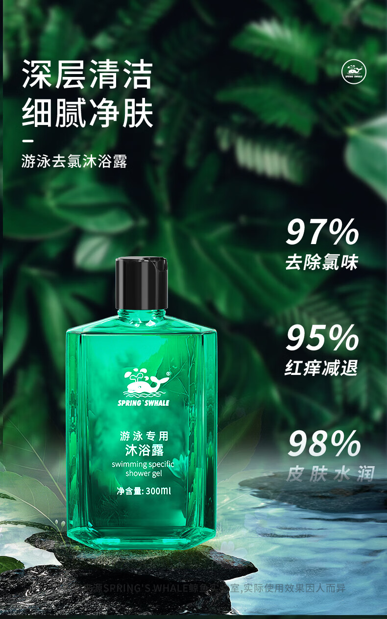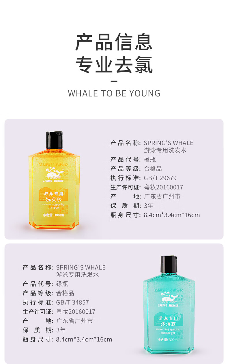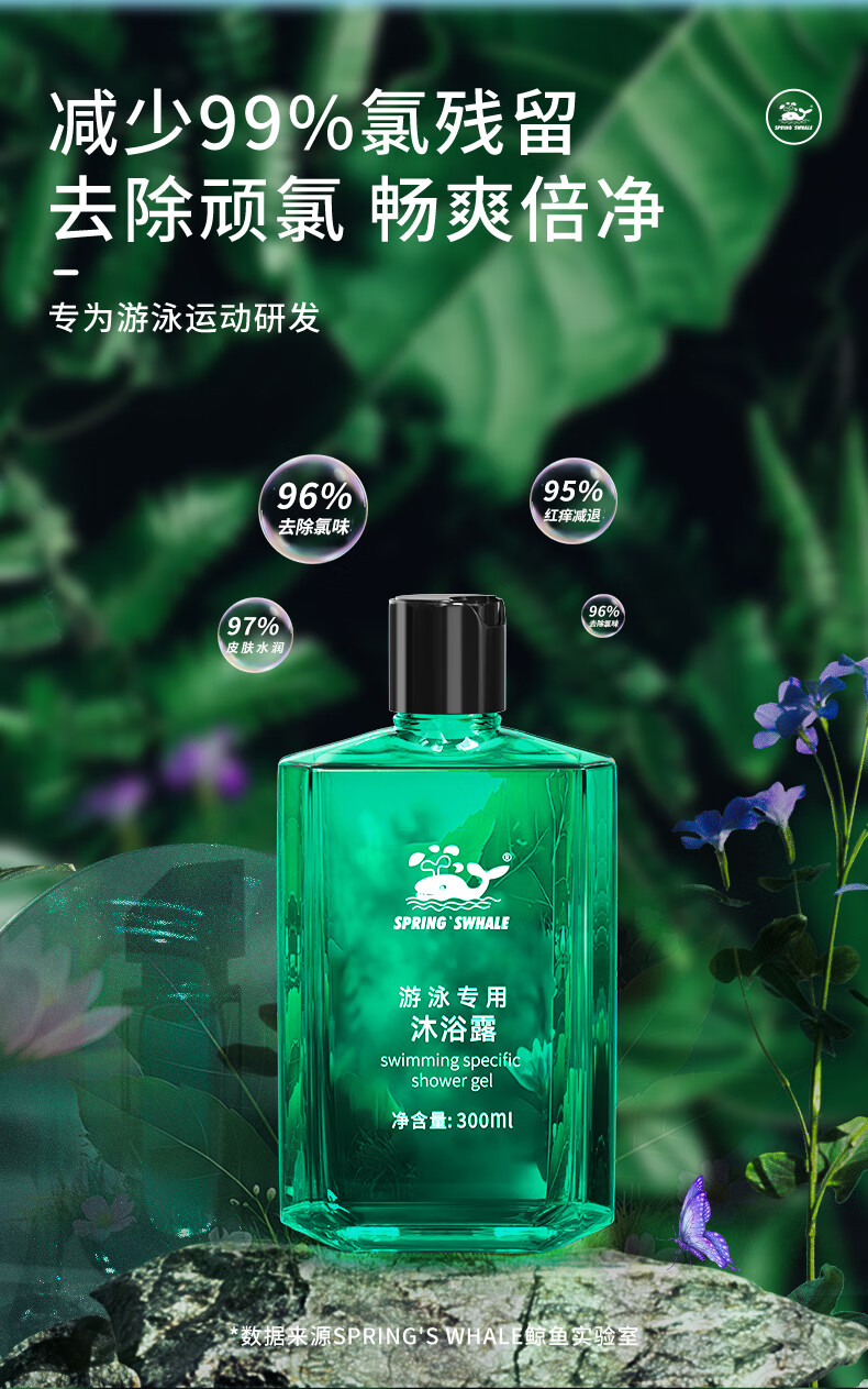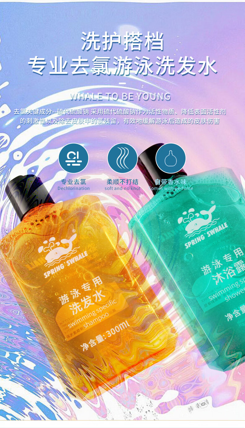 鲸鱼鲸鱼游泳专用去氯抗氯洗发水沐浴露持久留香温和深层清洁 去氯洗发水*1瓶+沐浴露 300ml*1瓶
